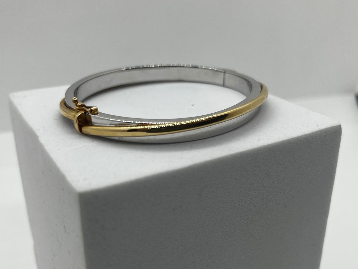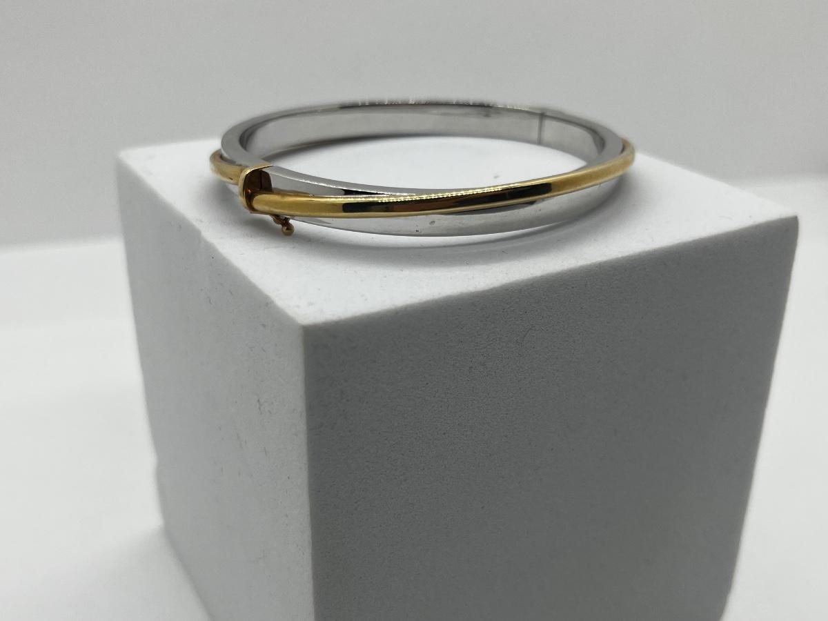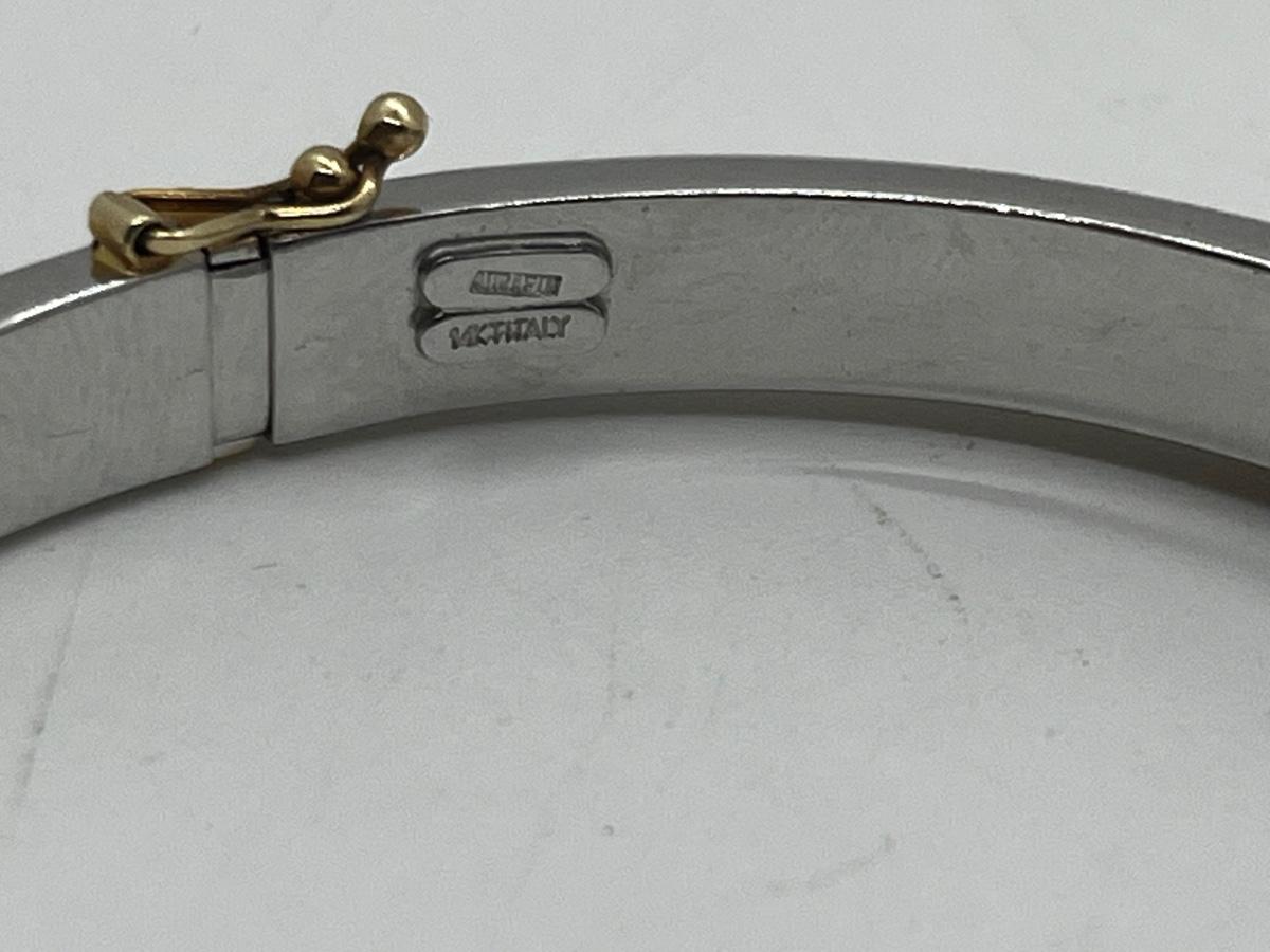 LOT 198J: 14K White and Yellow Gold Aurafin Bangle Bracelet-16.25 Grams