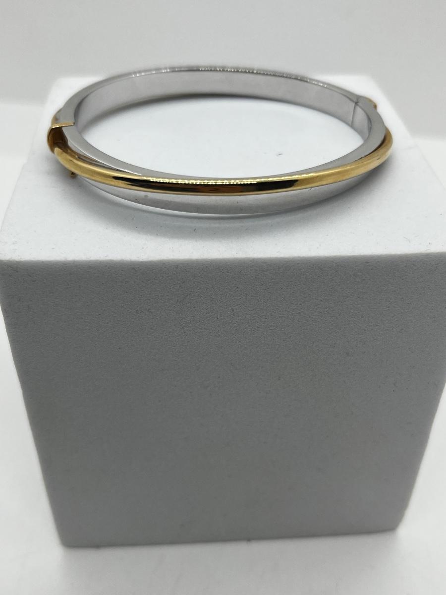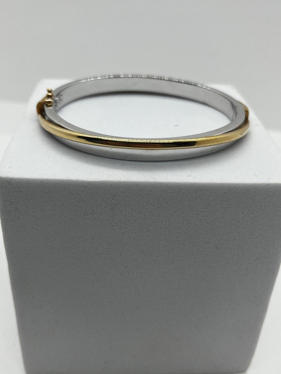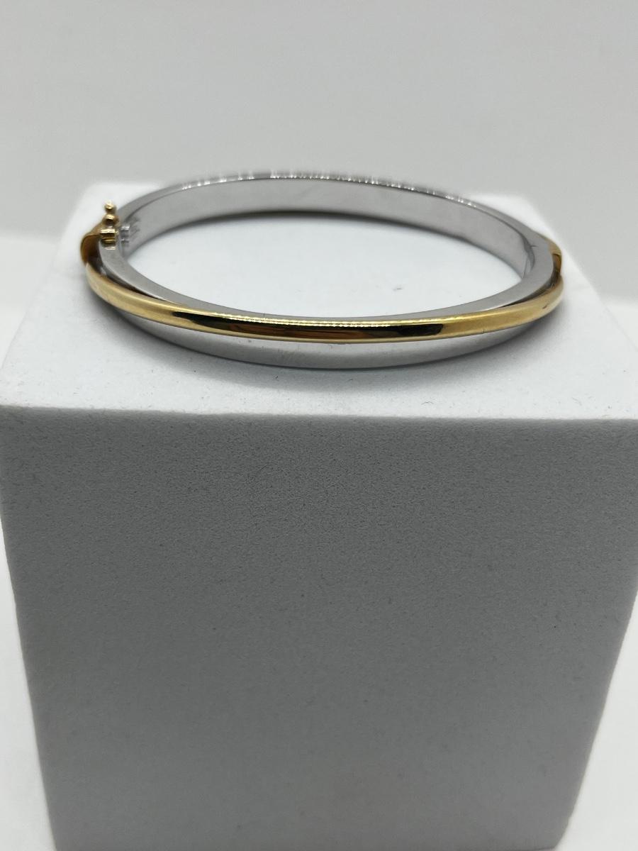 LOT 198J: 14K White and Yellow Gold Aurafin Bangle Bracelet-16.25 Grams