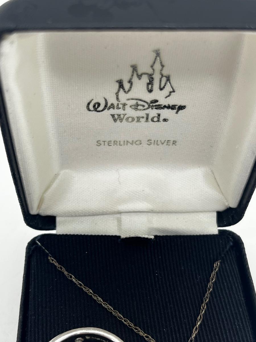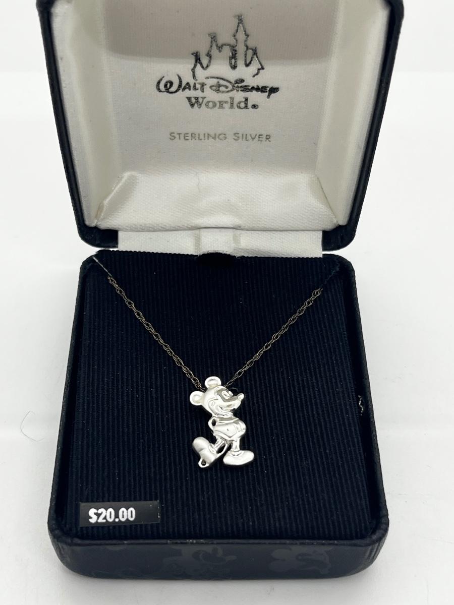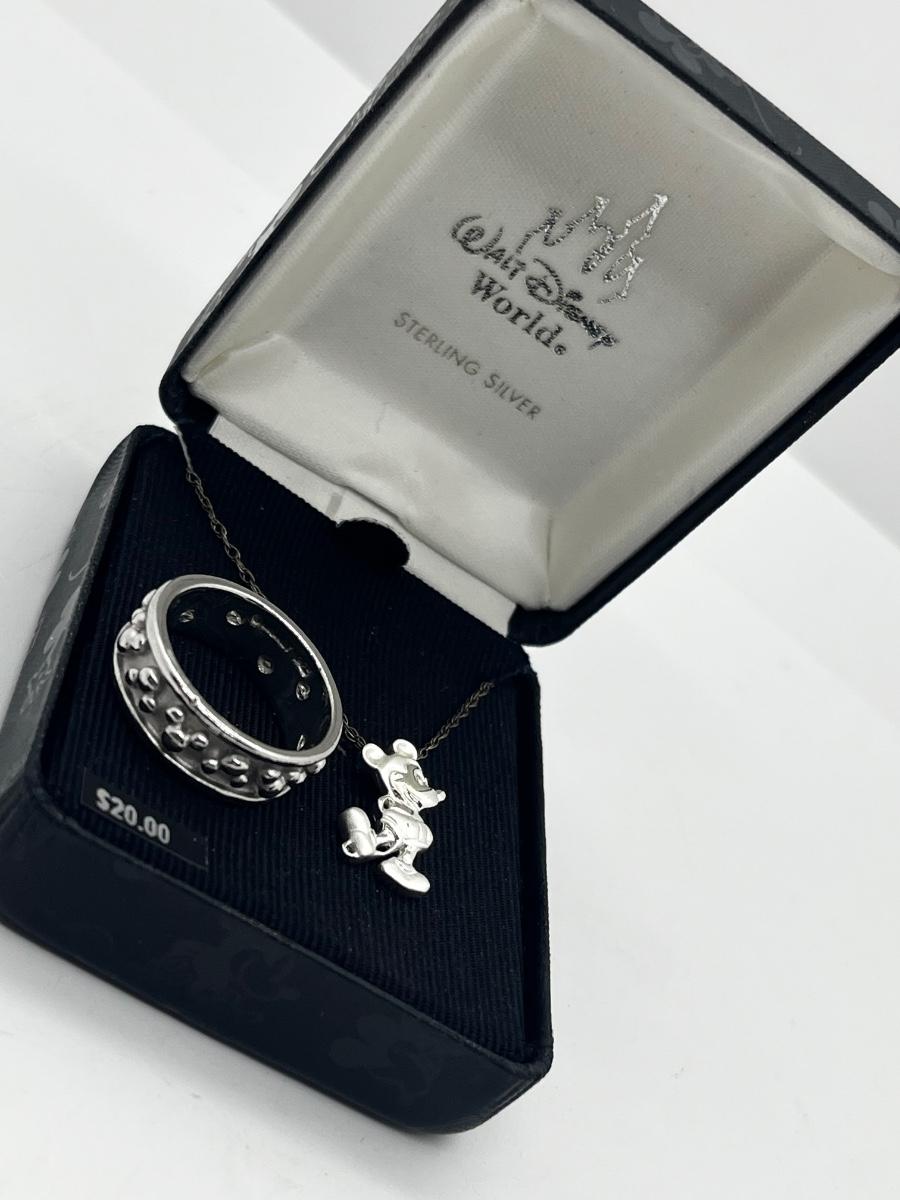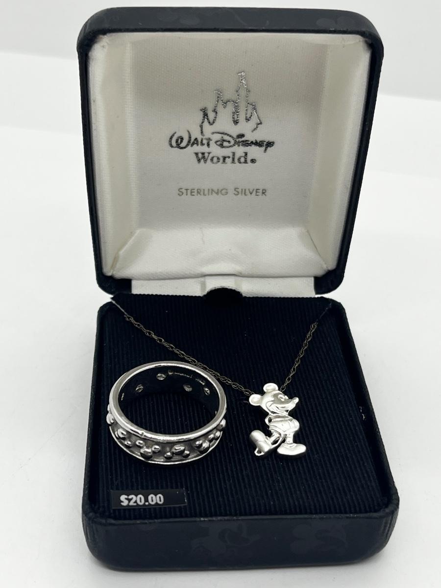 LOT 209J: Sterling Mickey Mouse Size 8.5 Ring and Sterling 18" Chain with Mickey Mouse Charm-7.93 Grams