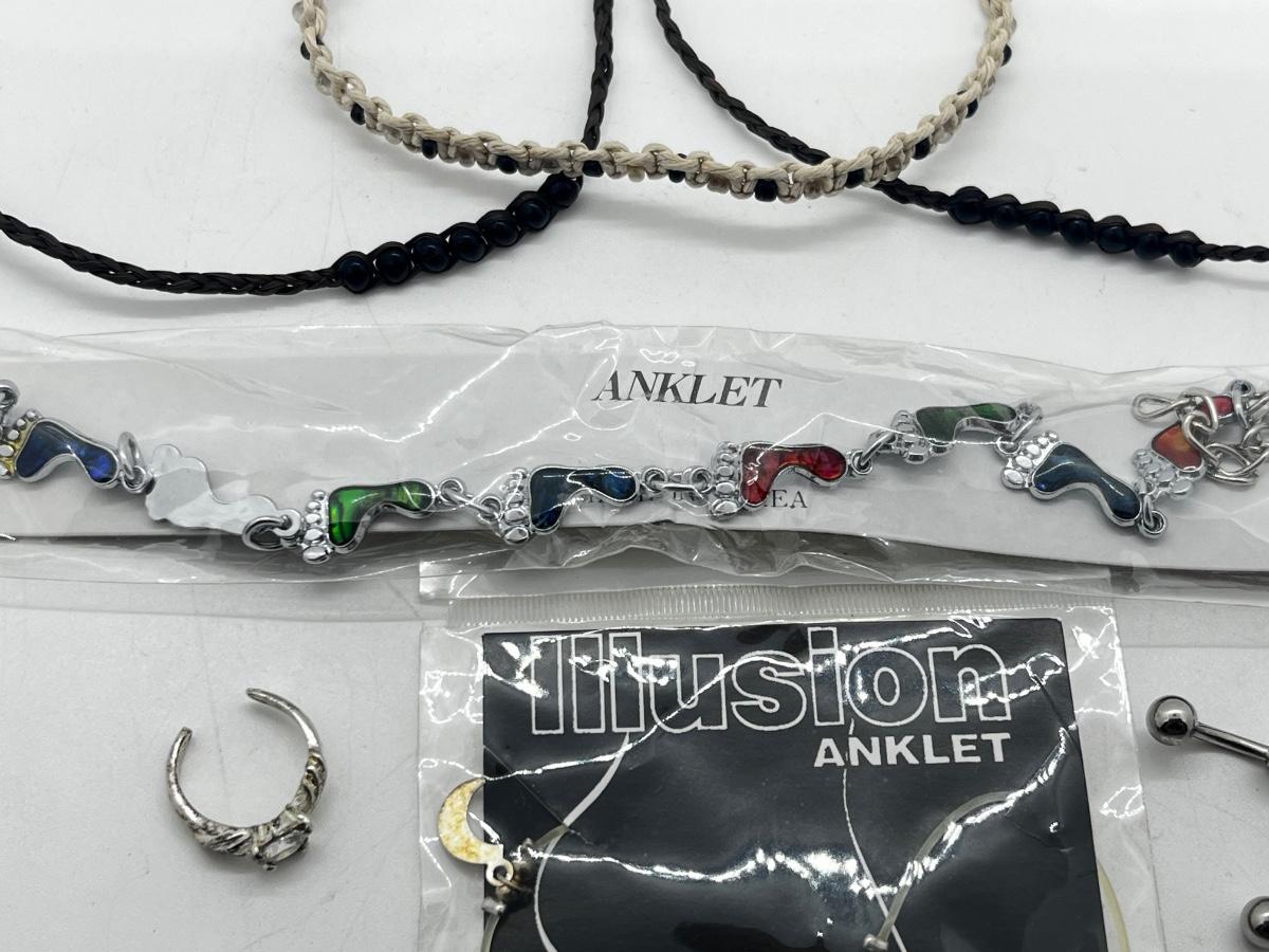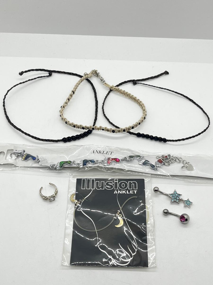 LOT 210J: Body Jewelry Collection: Ankle Bracelets, Toe Ring and Belly Button Jewelry