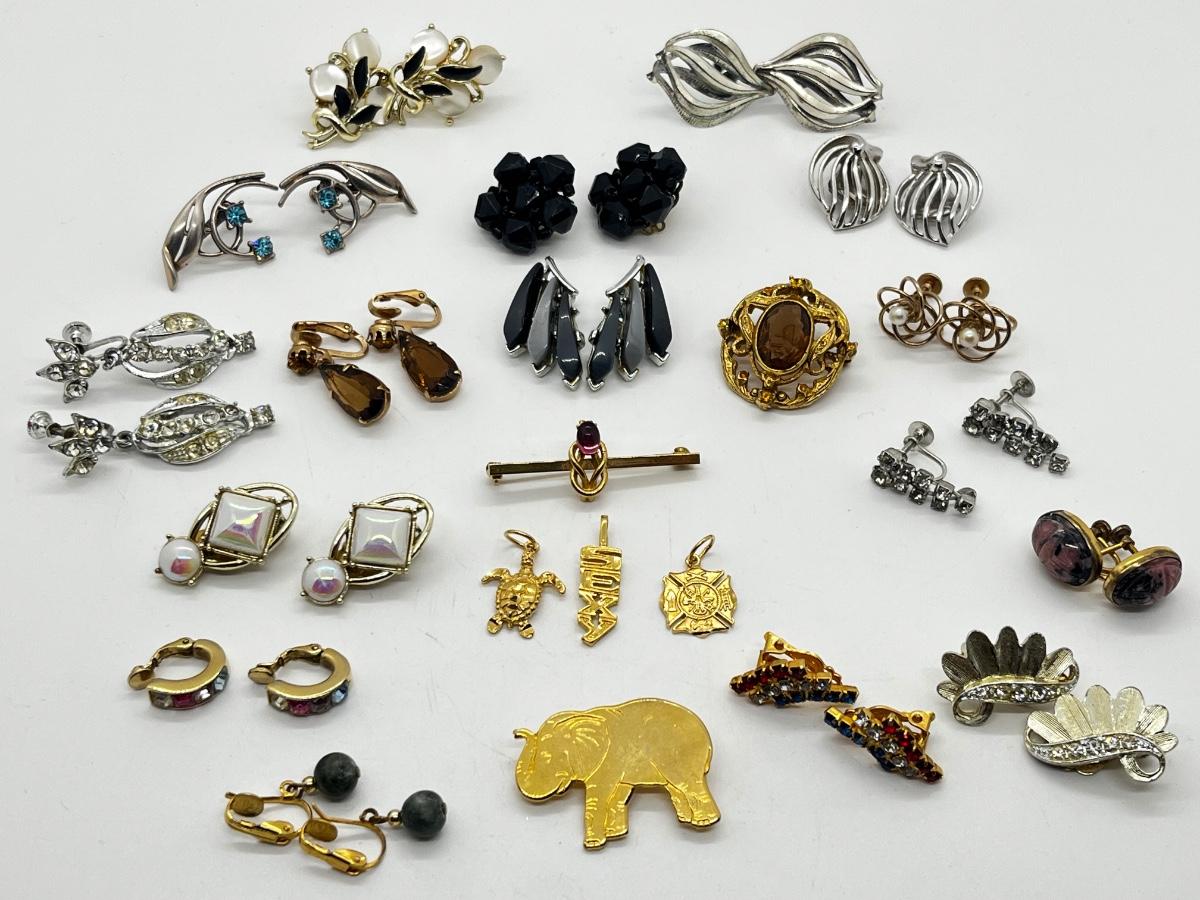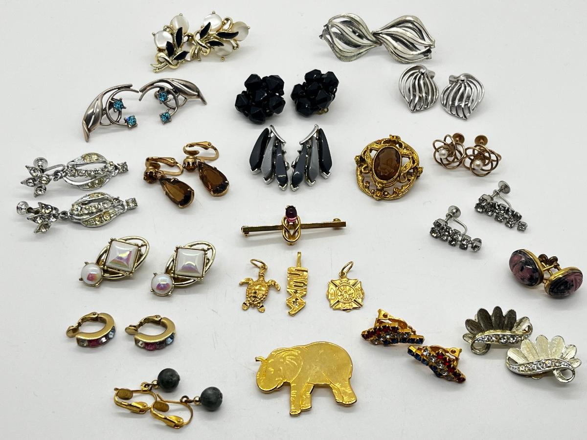 LOT 231J: Collection of Screw Back Earrings, Pendants and Pins