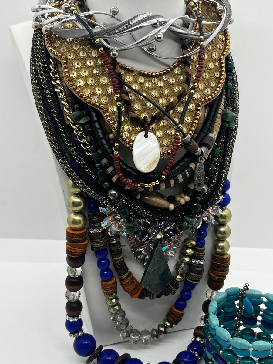 LOT 237J: Unique Funky Necklace Collection + Turquoise Beaded Bracelet