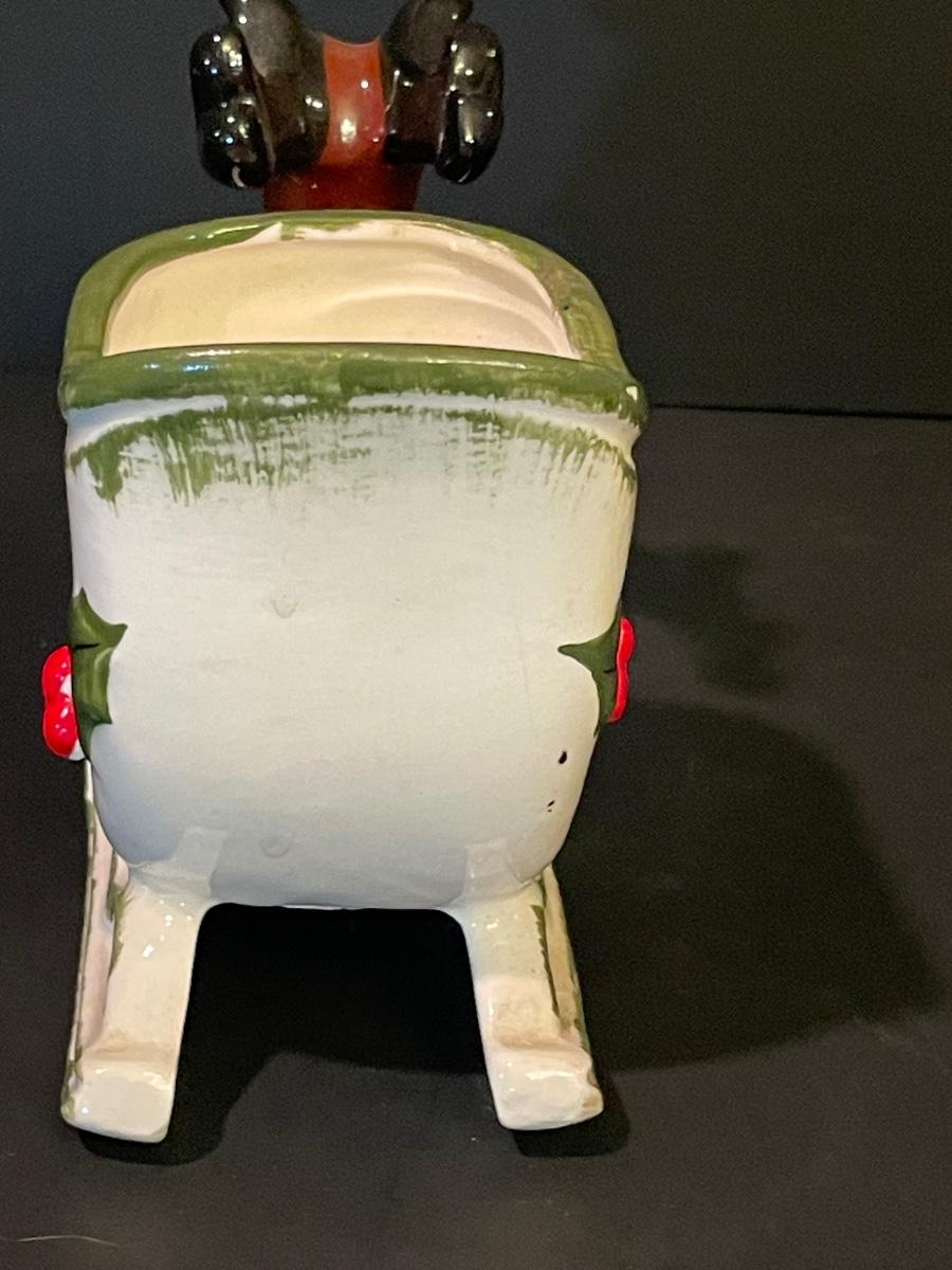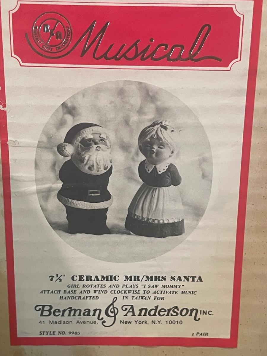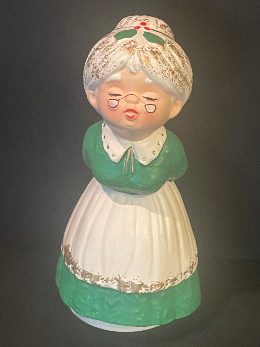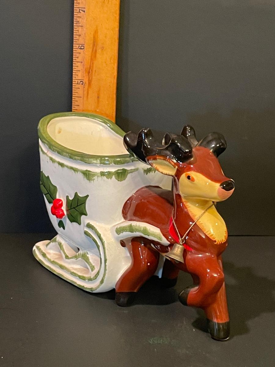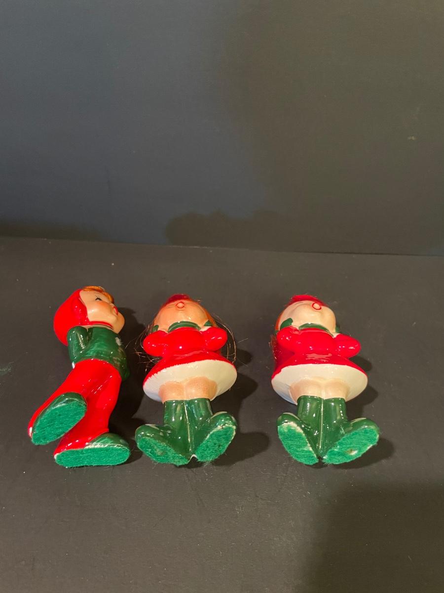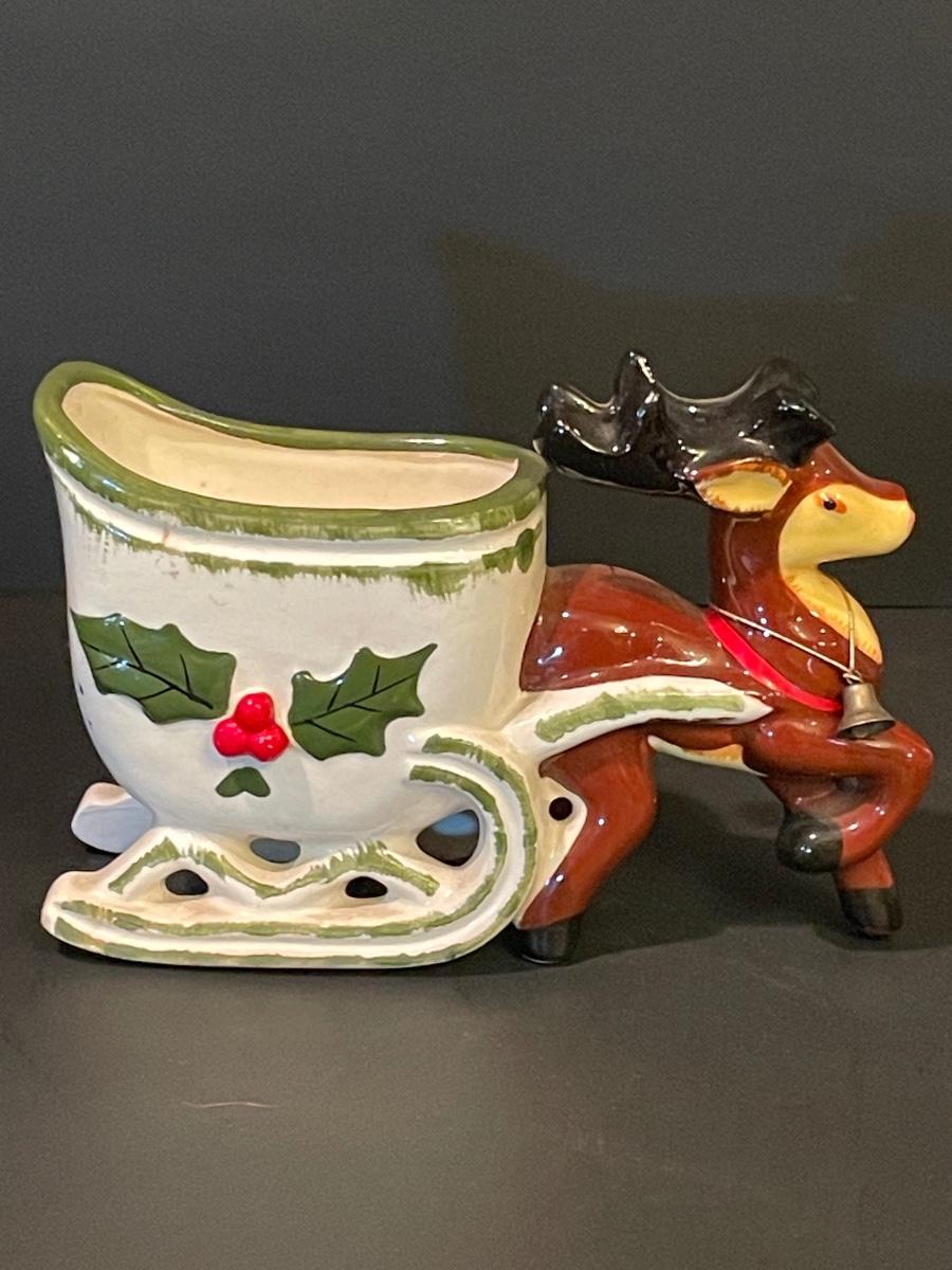LOT::3 Christmas Figurines Santa and Mrs. Claus, Napco Ceramic Reindeer and Sleigh, Christmas Baby Figurines by Napcoware, Salt & Pepper Shakers, and Christmas Caroler fig