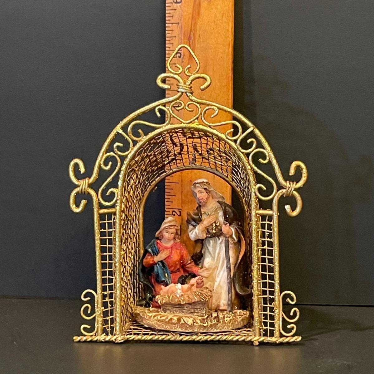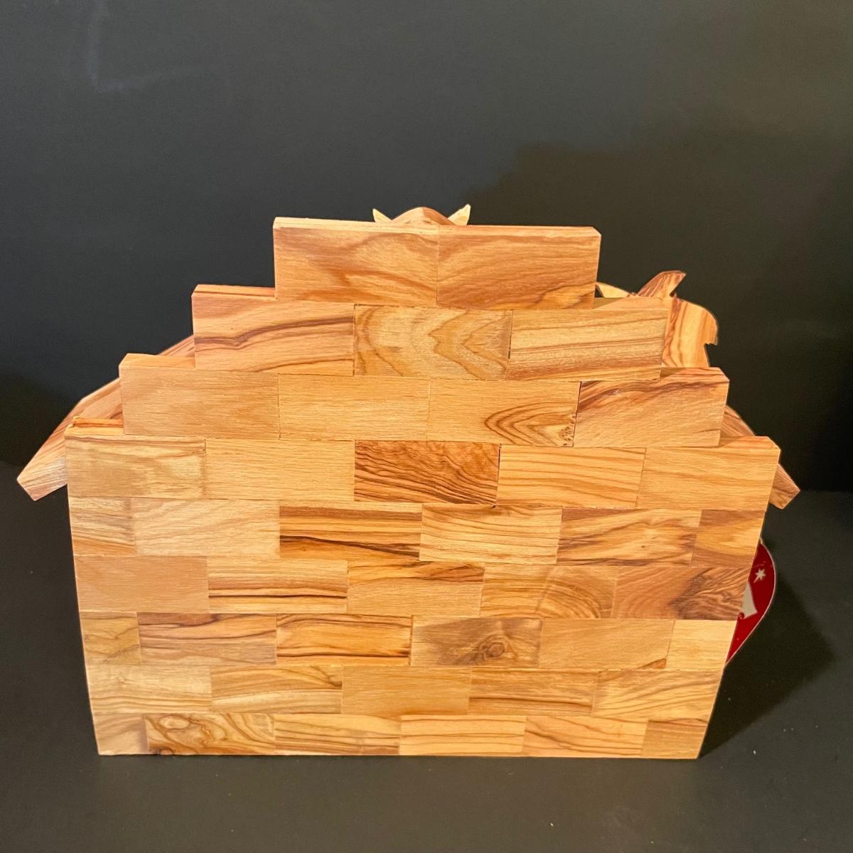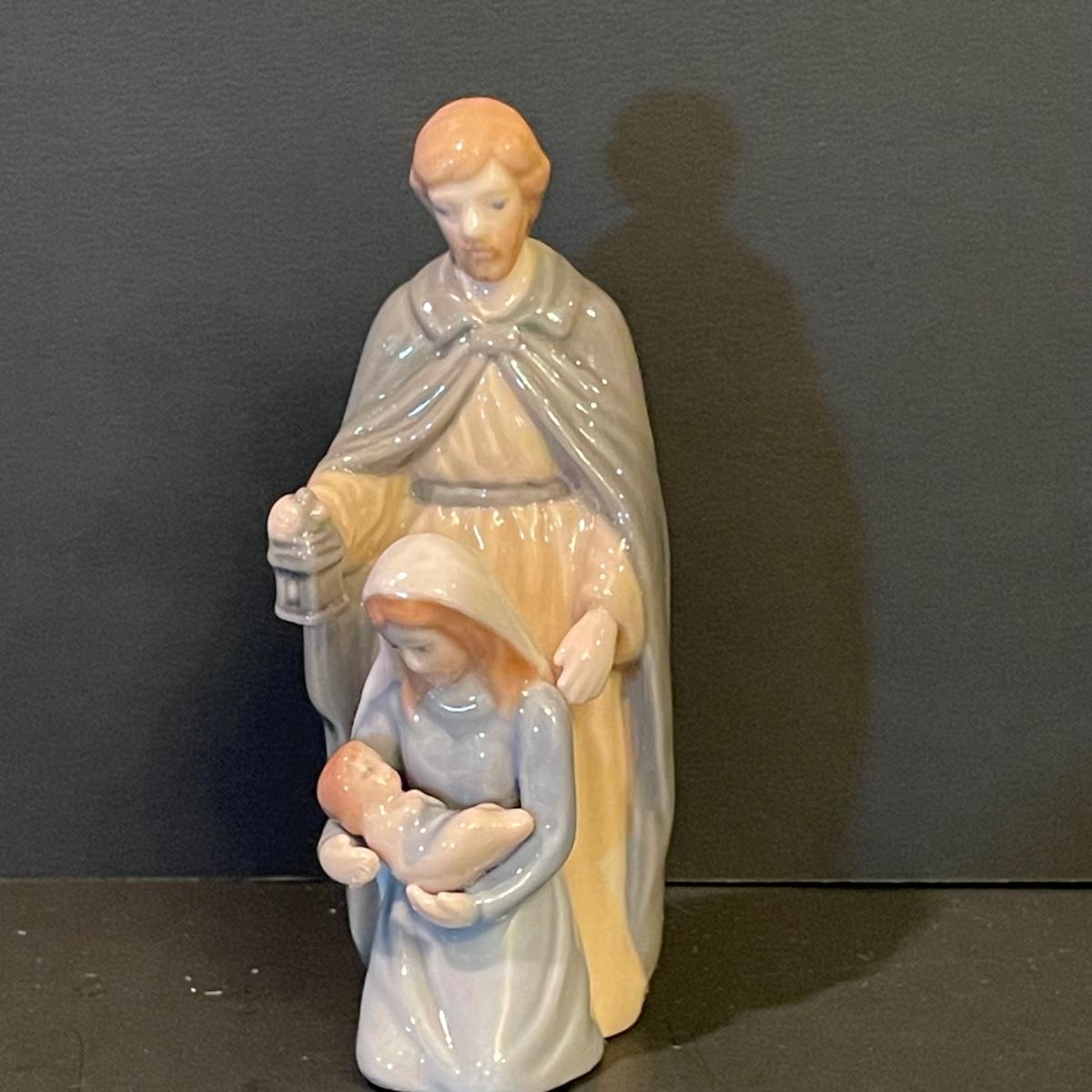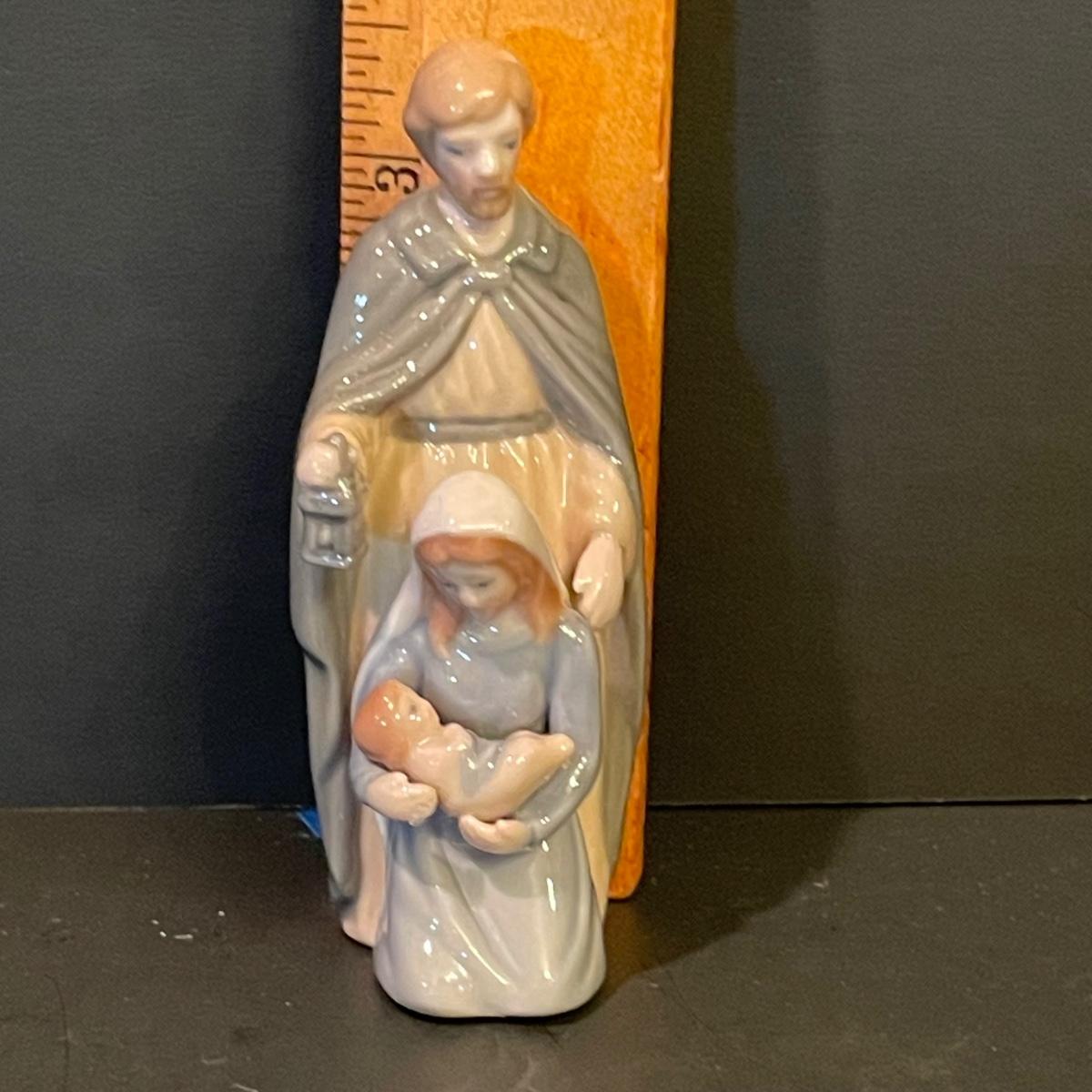 LOT::4 Carved Olive Wood Nativity Set, Nativity Scene Creche, Porcelain Holy Family Figurine and Santa holding a child by Josef