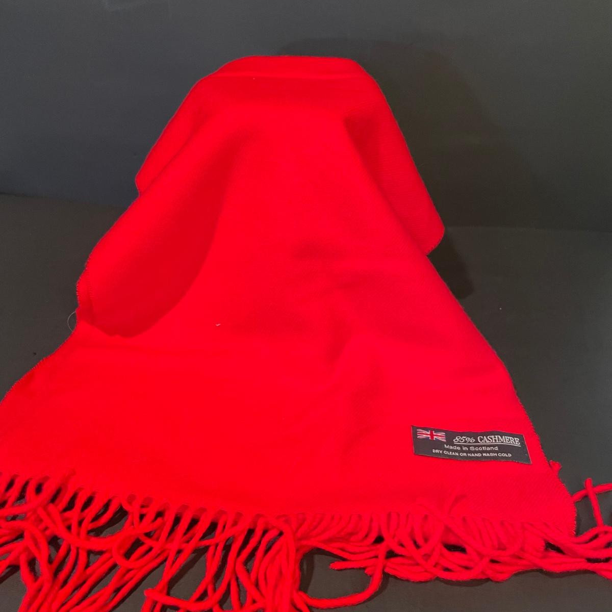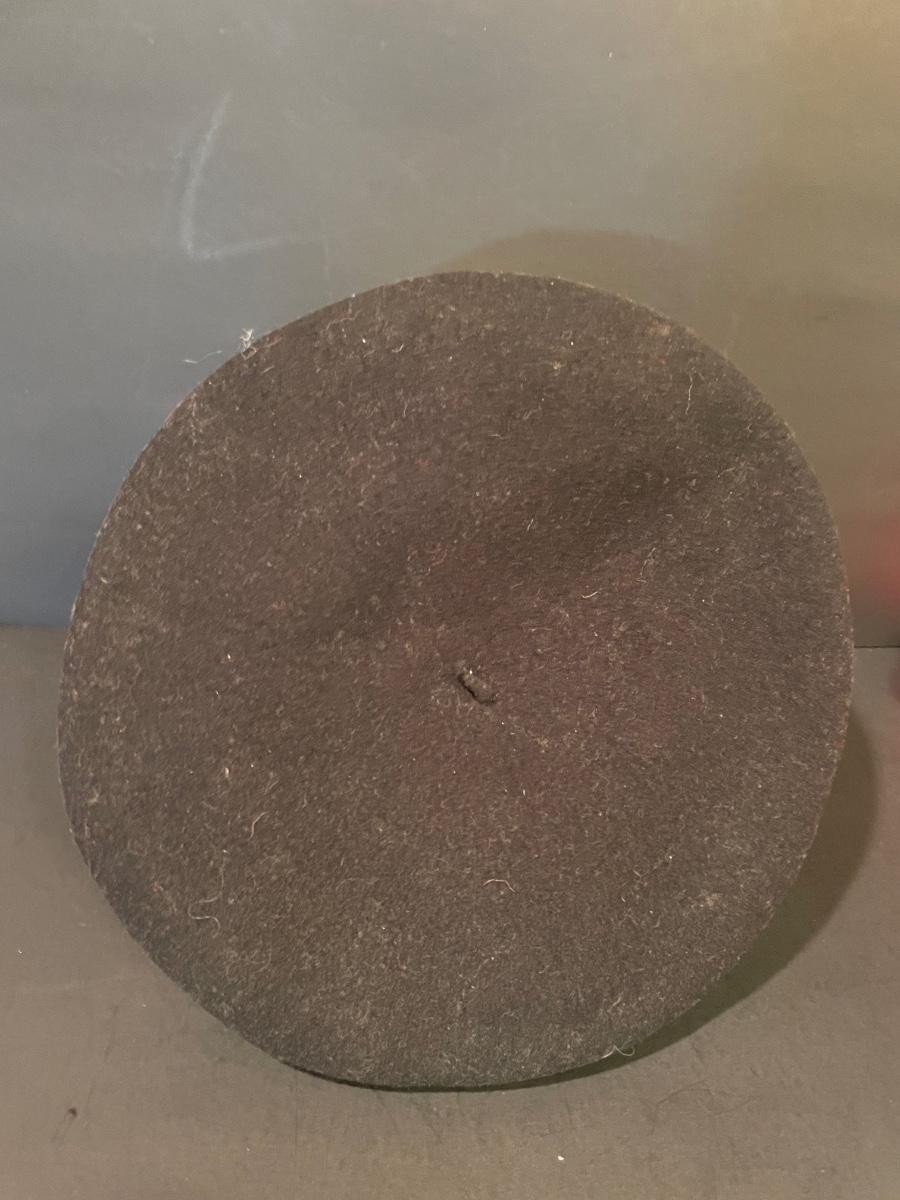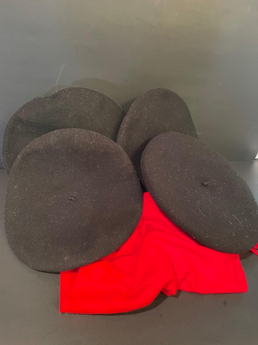 LOT::13 . Black Wool Berets by Mariquina and Elosequi with Red Cashmere Blend Scarf (Made in Scotland)