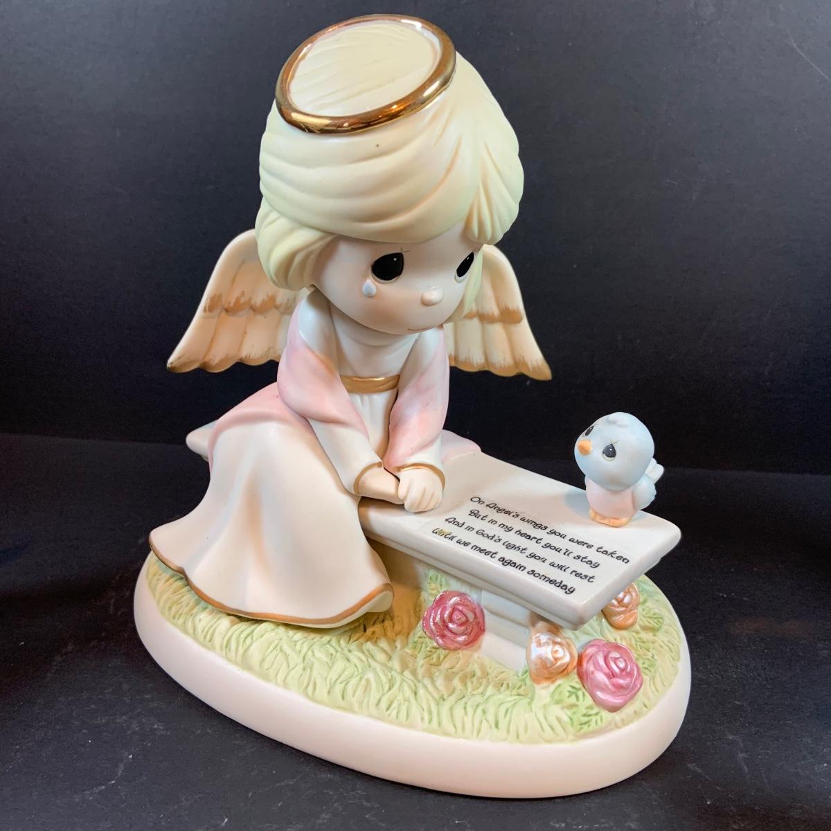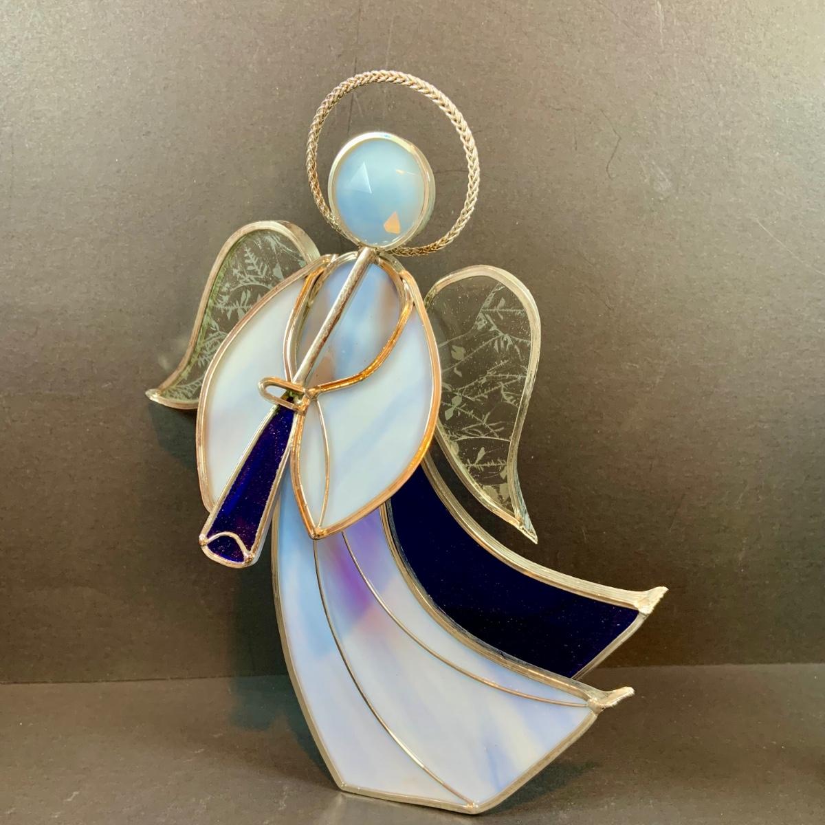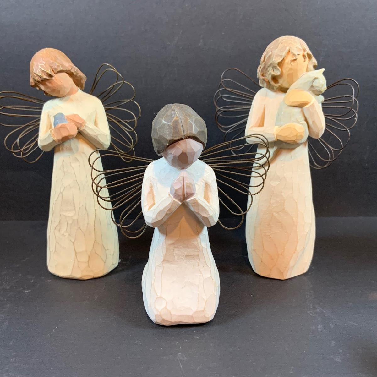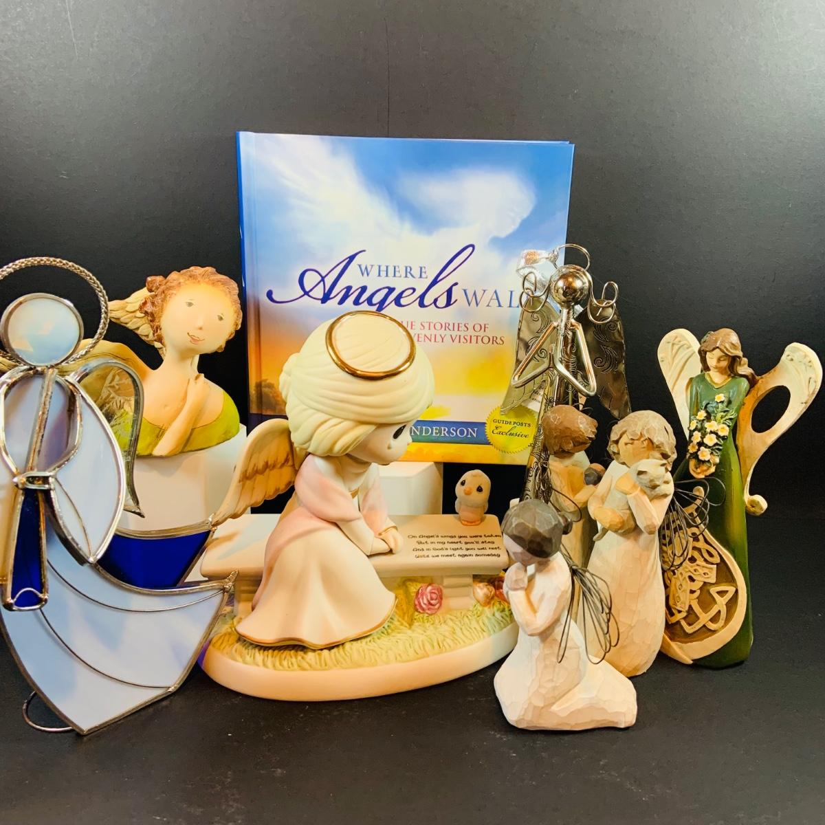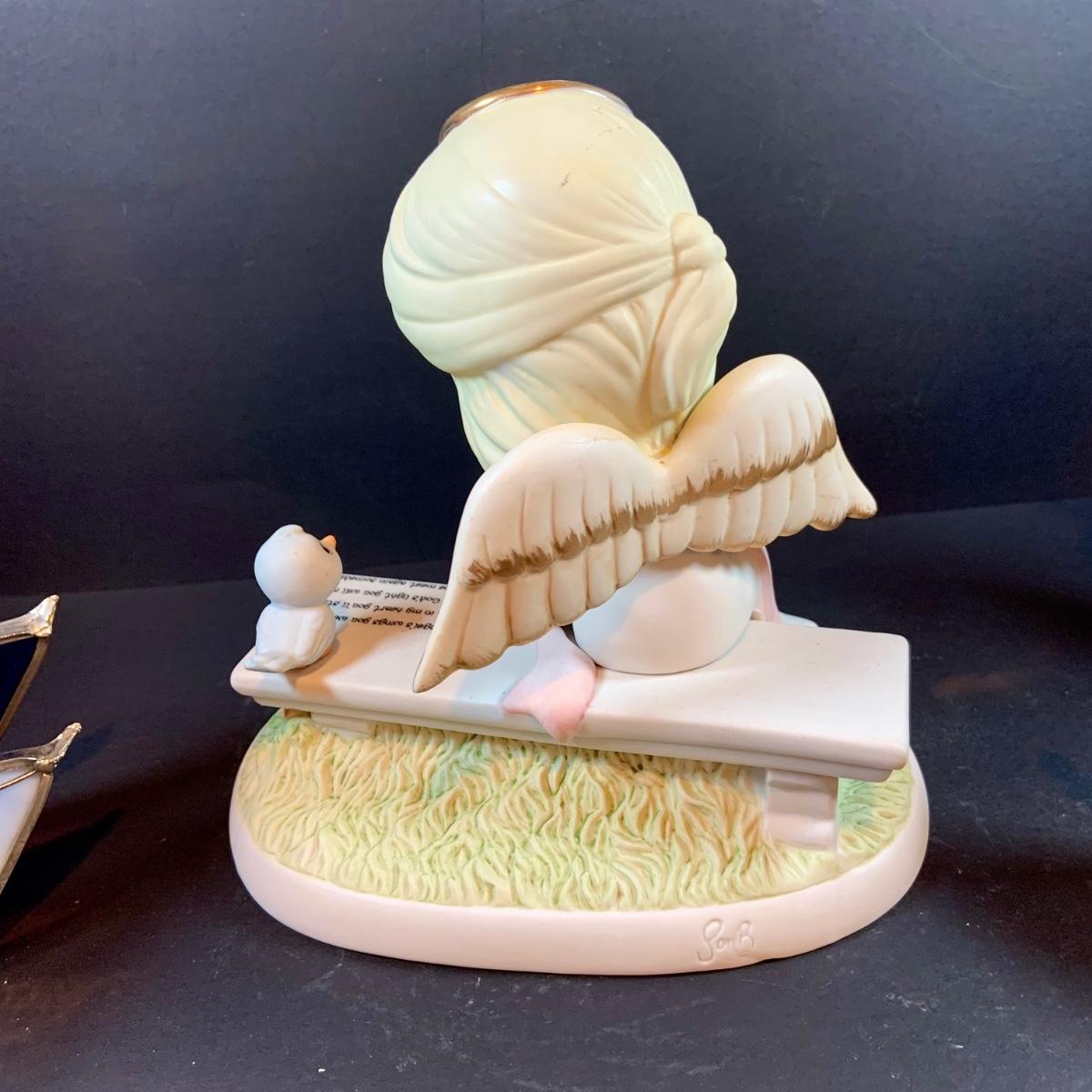 LOT 29: Angelic Collection of Figurines & Stain Glass Book- 2003 Demdaco Nancy Carter Angel, Precious Moments & more