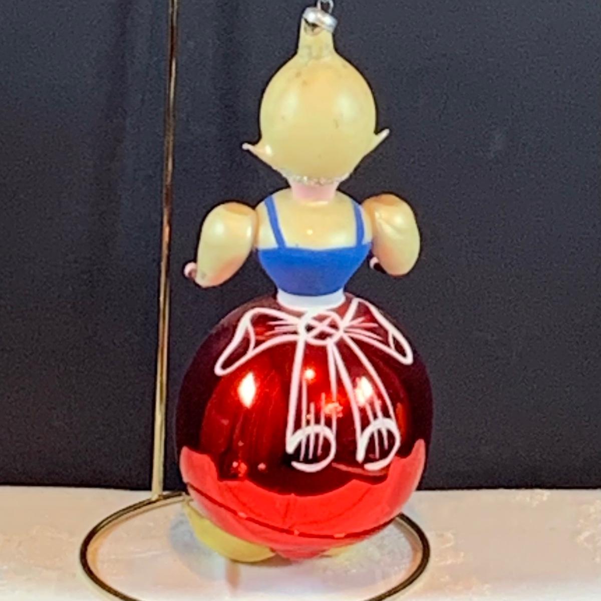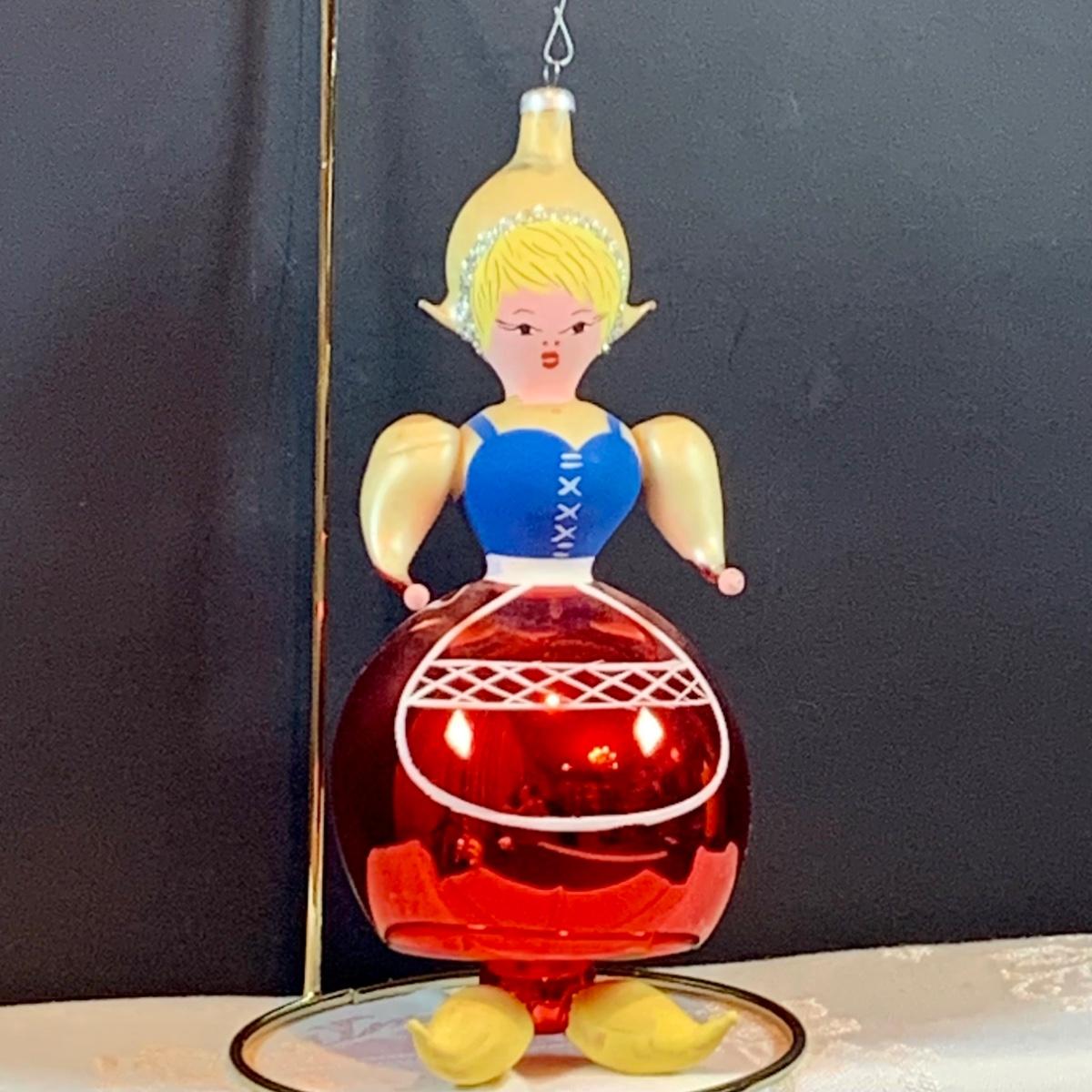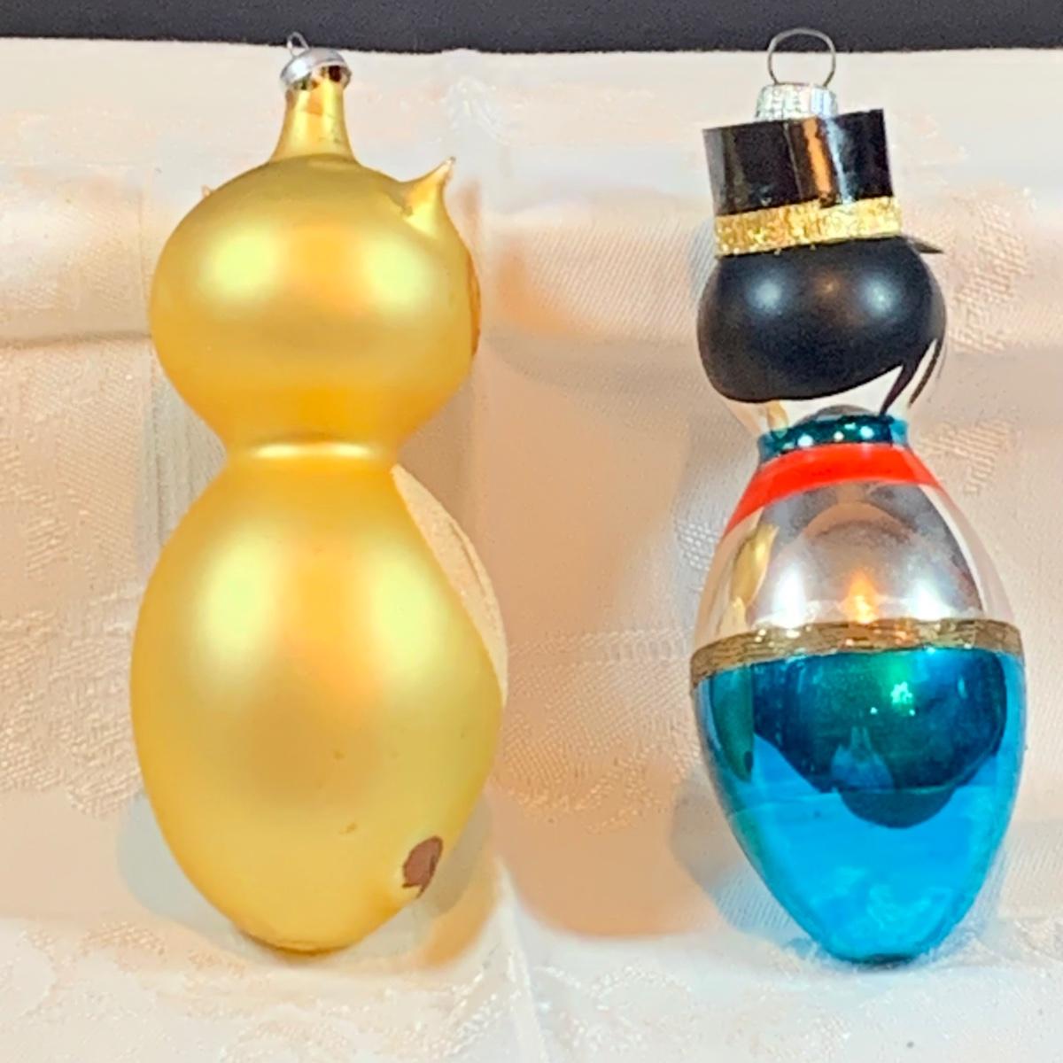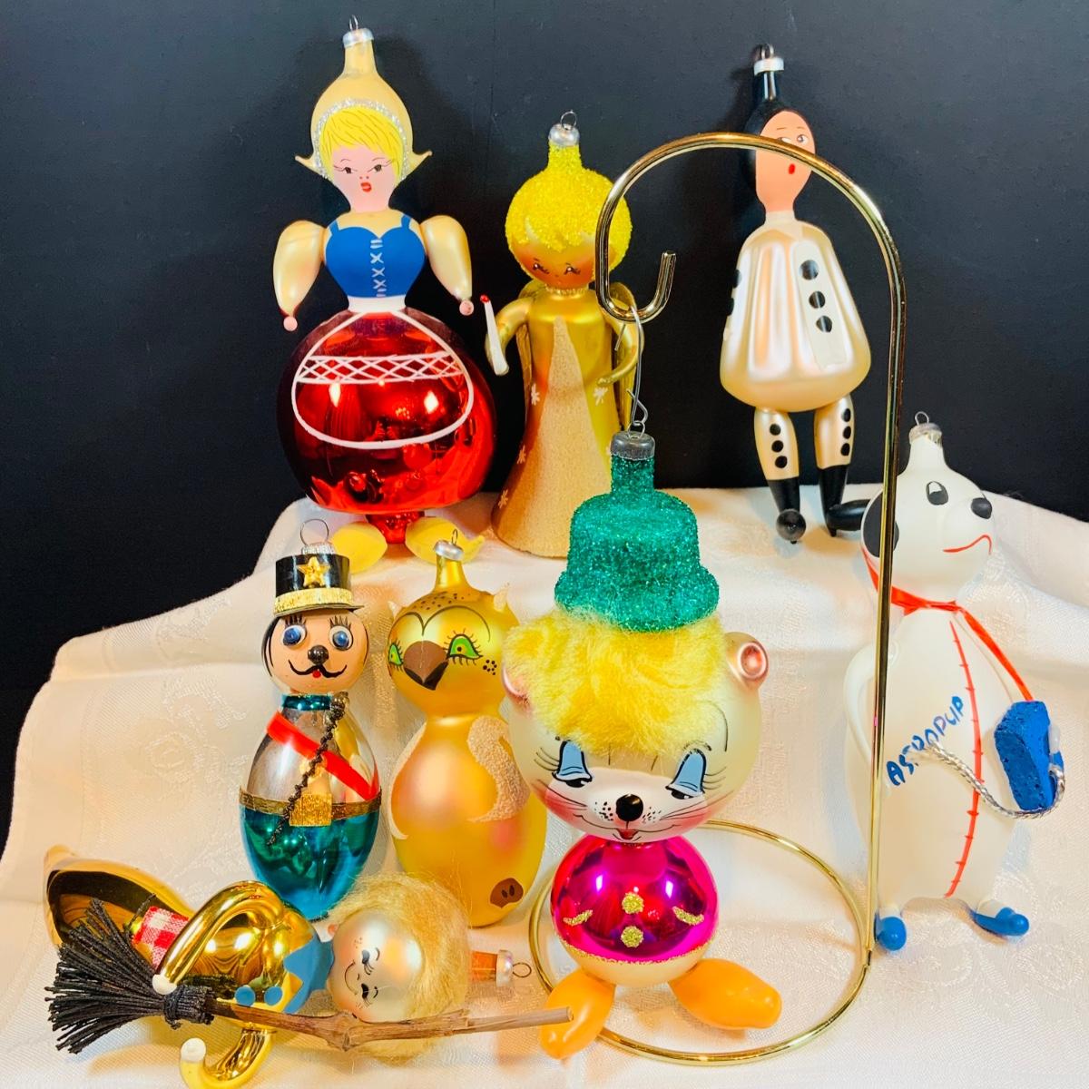 LOT:37: Collection of DeCarlini Blown Glass Ornaments Including Le Befana, Astropup, Mouse, Dutch Girl, soldier, Bird Angel, and Pierrot