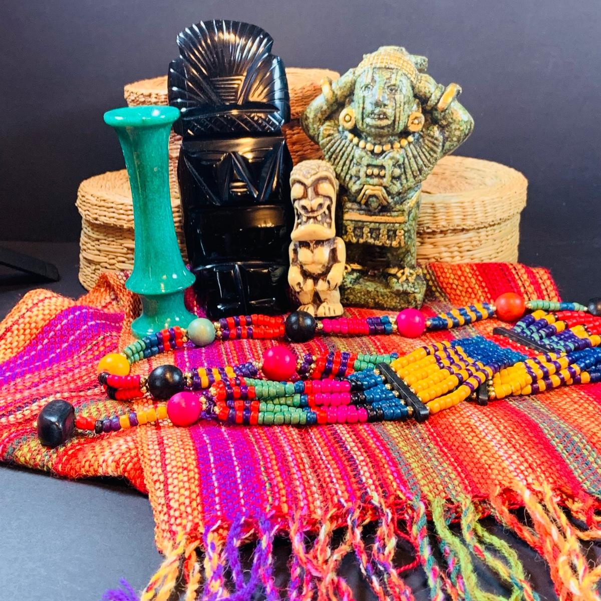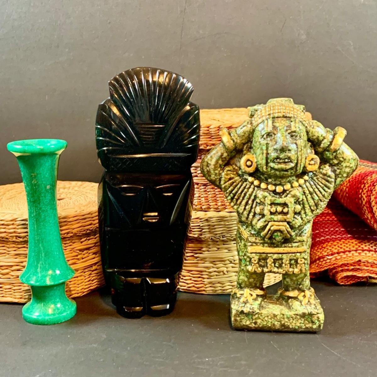 LOT 46: South of the Boarder Collection of Figurines, Baskets with Lids, Blanket and Belt