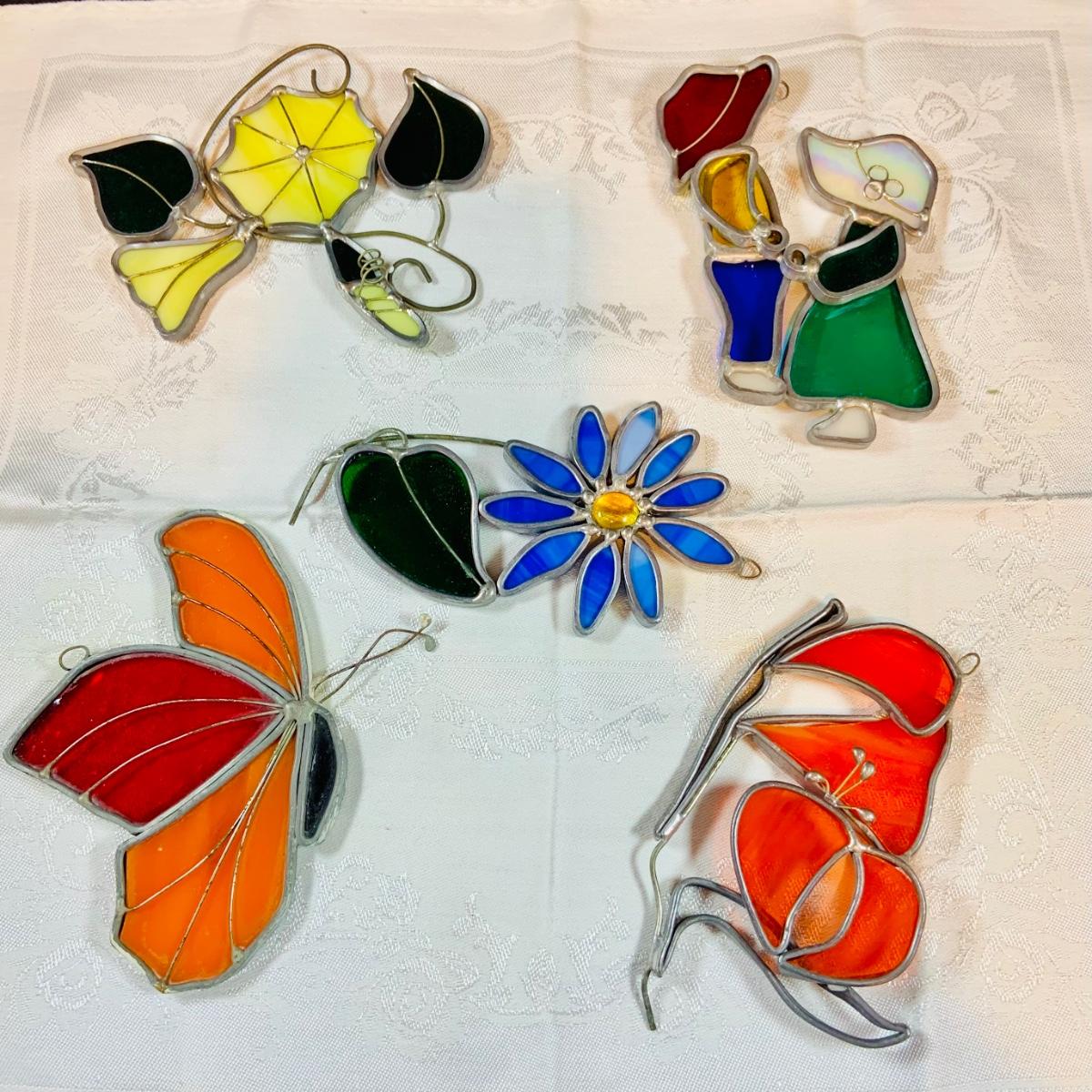 LOT 47: Set of 5 Beautiful Stained Glass Sun-catchers by Tiffany and More