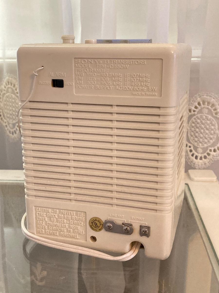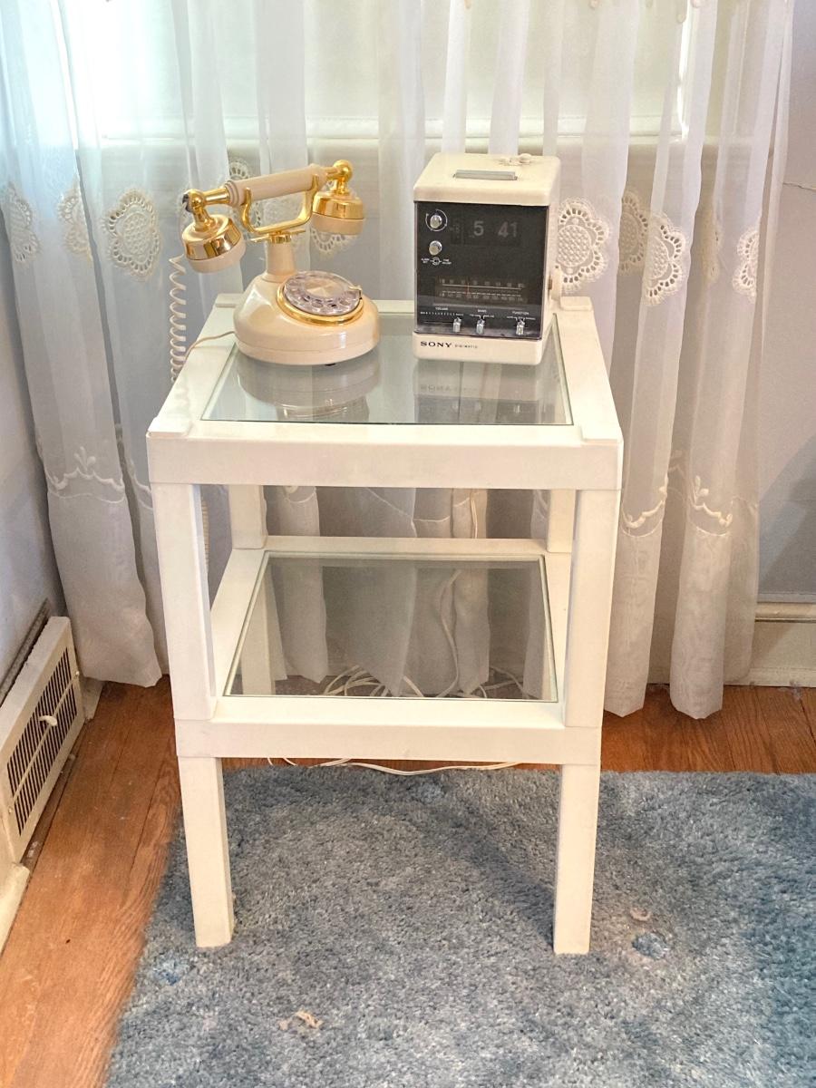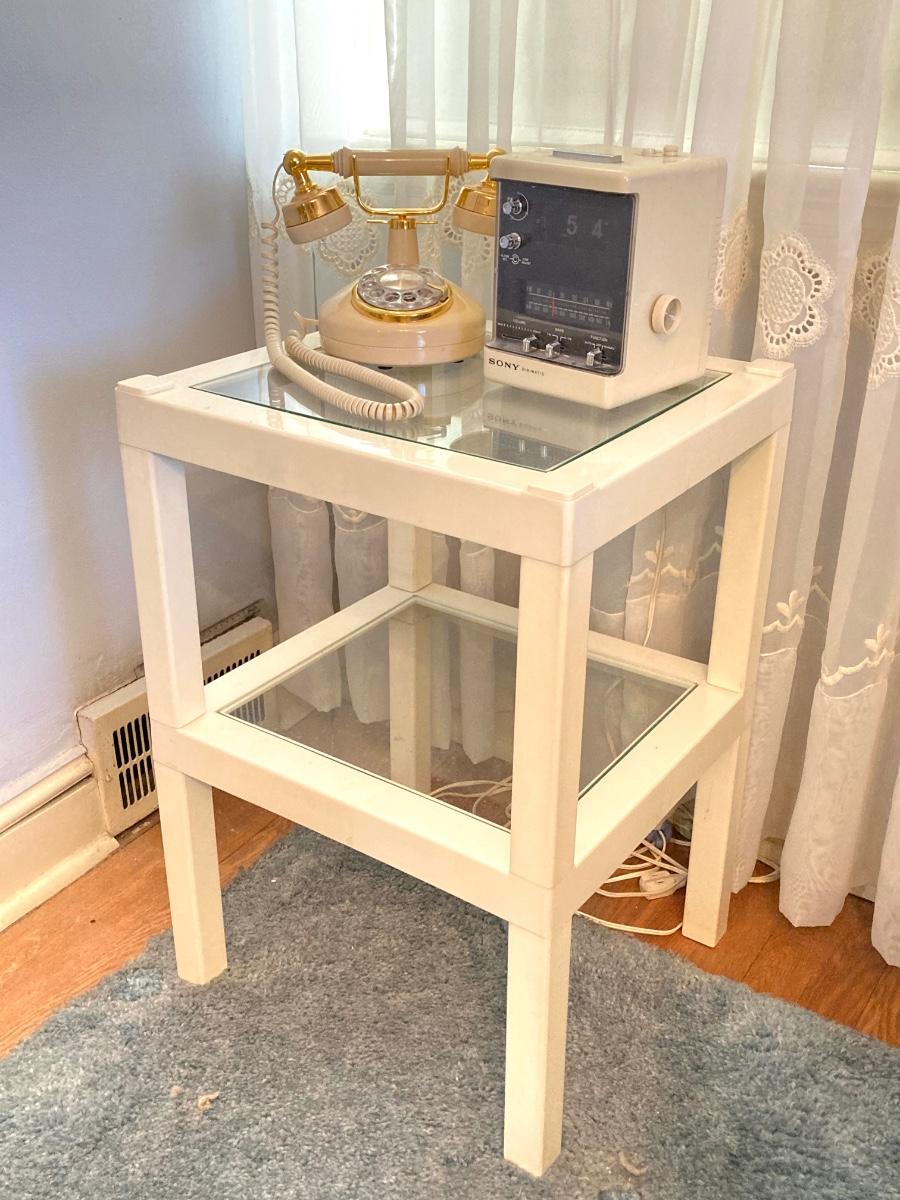 LOT 56: Vintage Sony Clock Radio Model TFM-C550W, French Style Princess Telephone and End Table