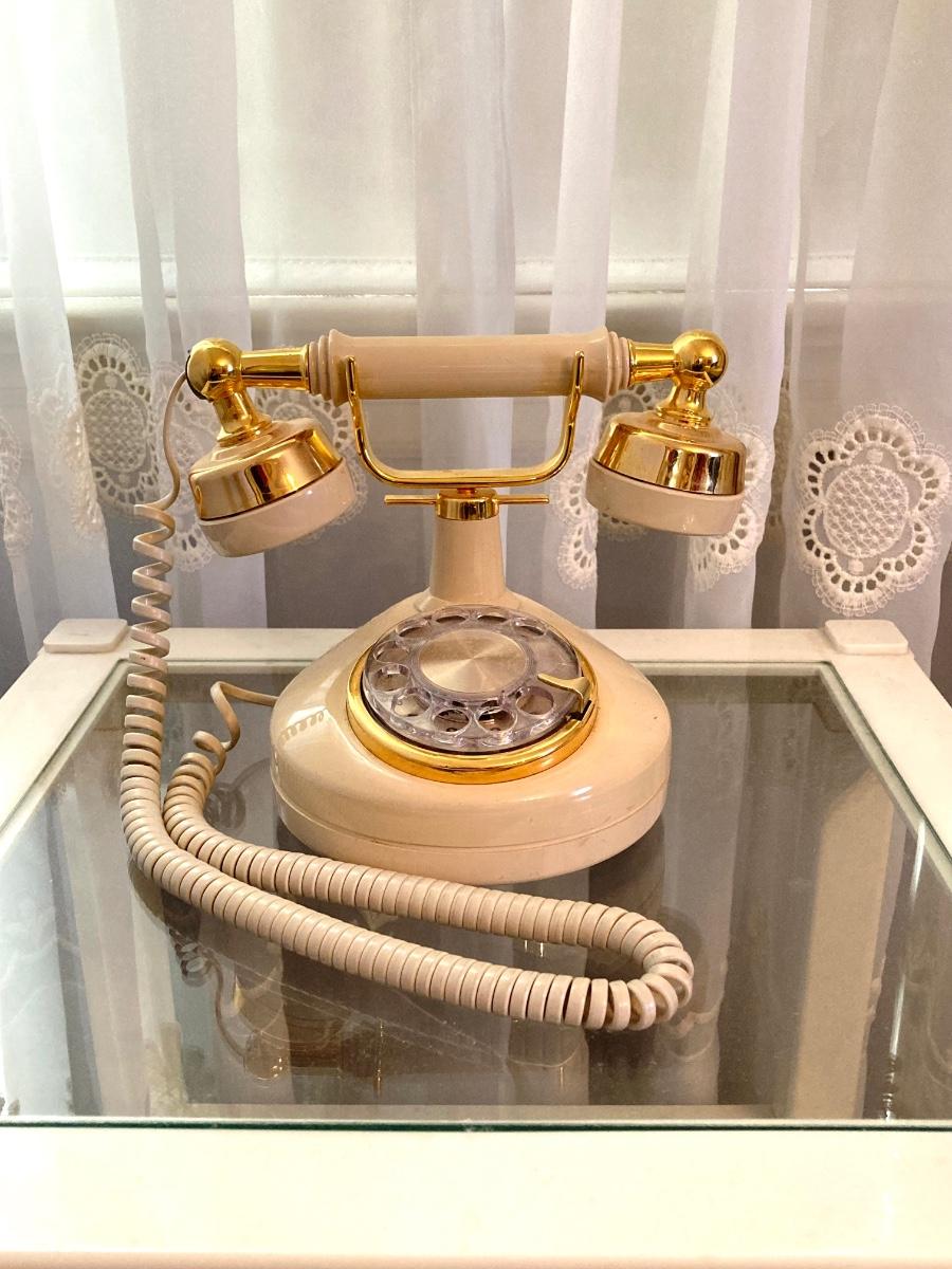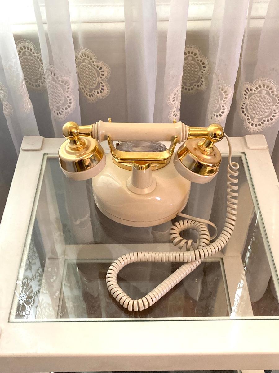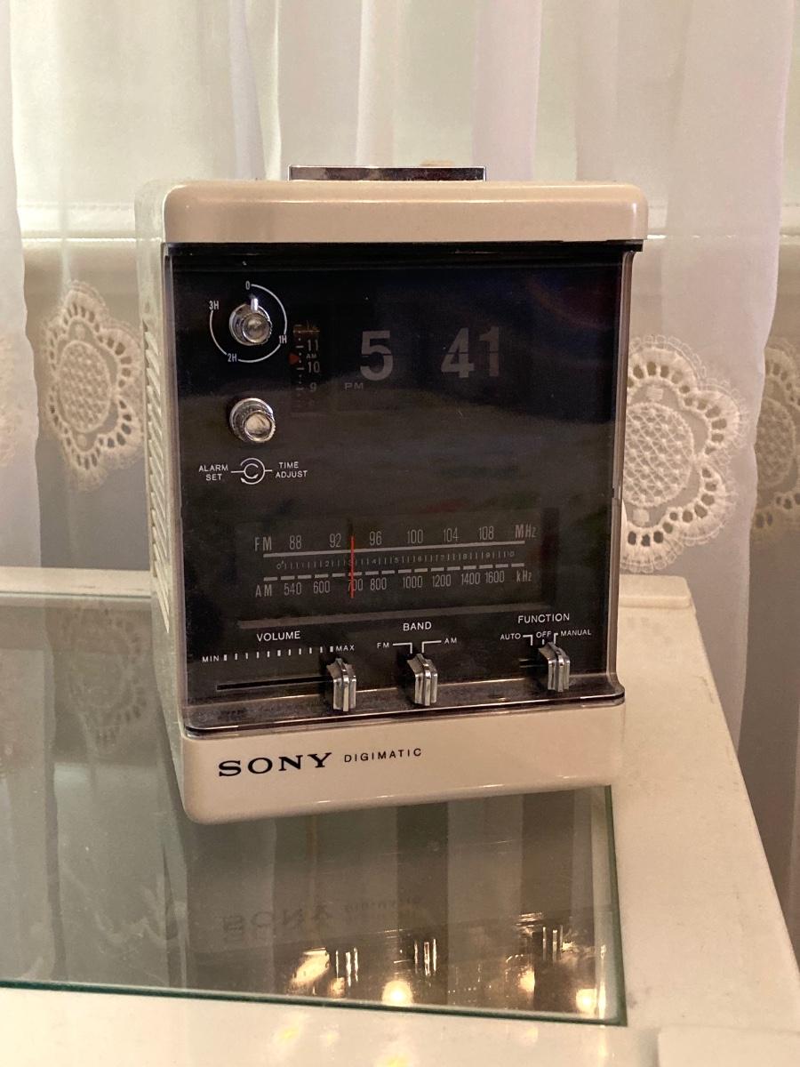LOT 56: Vintage Sony Clock Radio Model TFM-C550W, French Style Princess Telephone and End Table