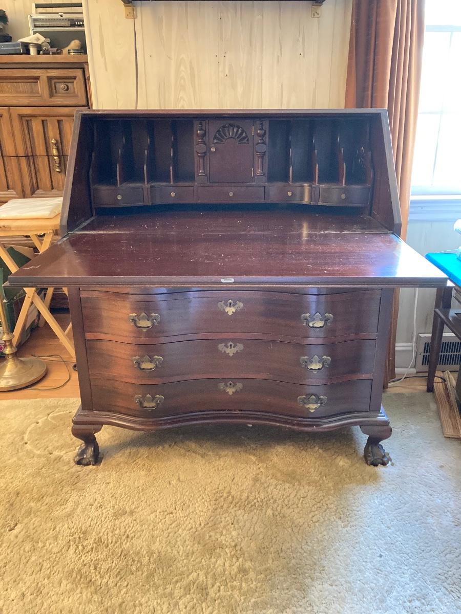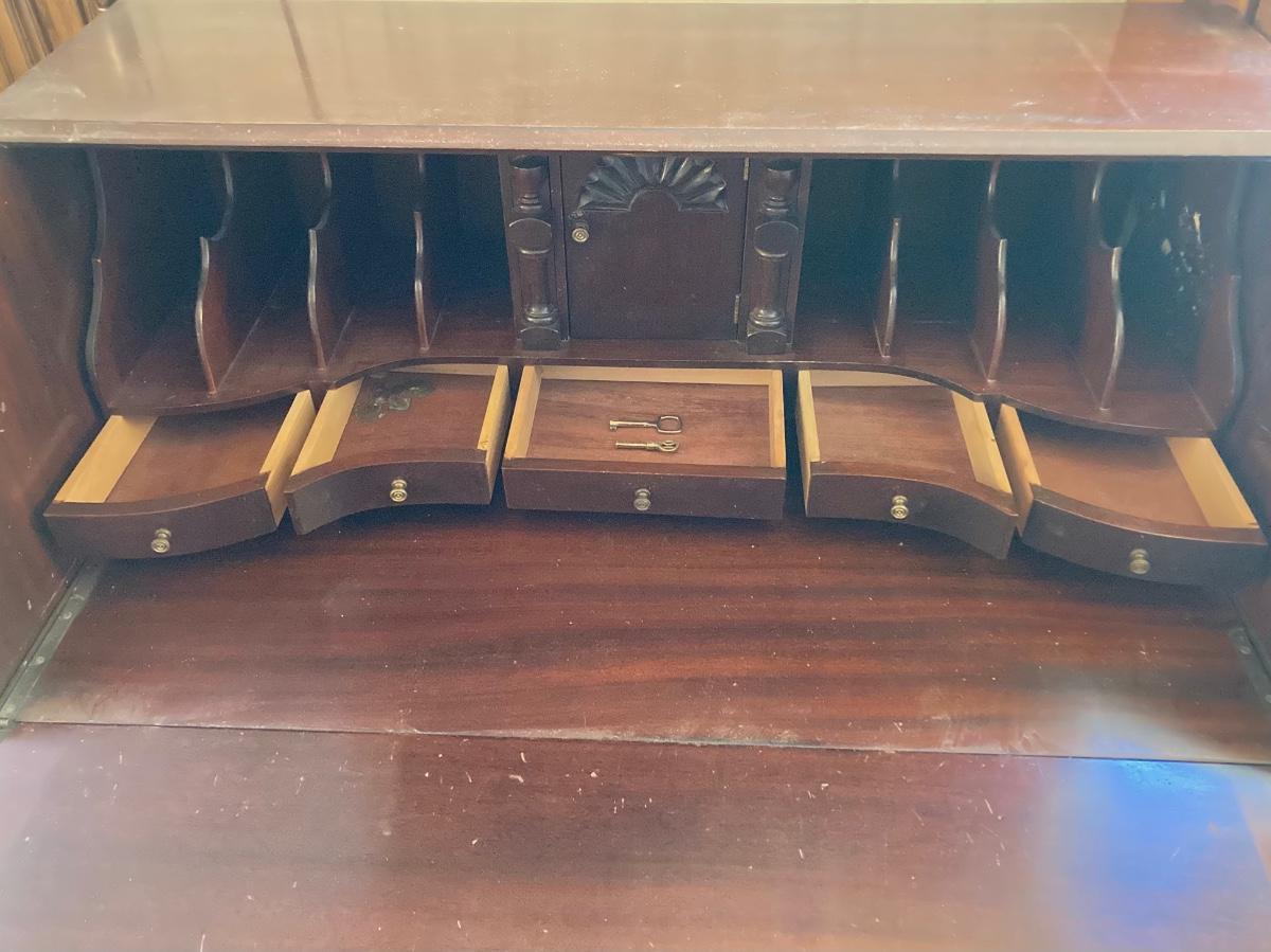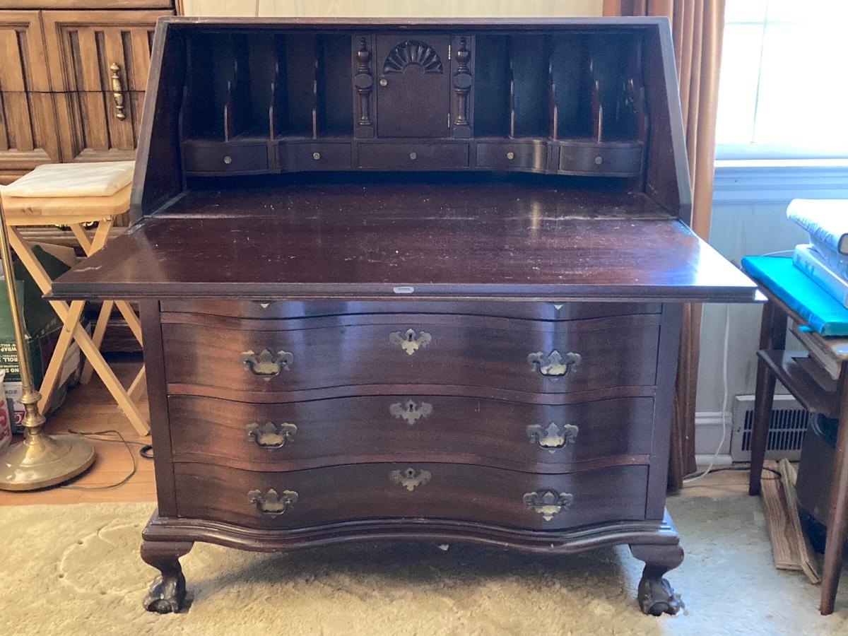 LOT 57: Vintage / Antique Mahogany Association, Inc. Maddox Tables "Mad-Ox" Secretary Desk