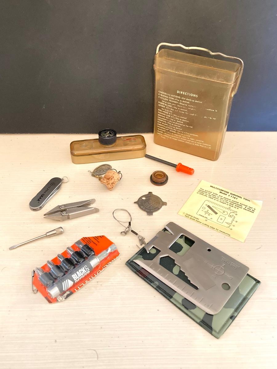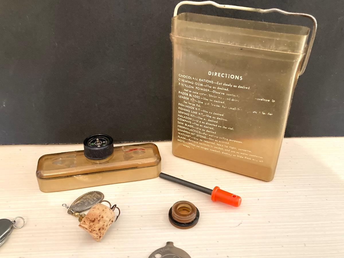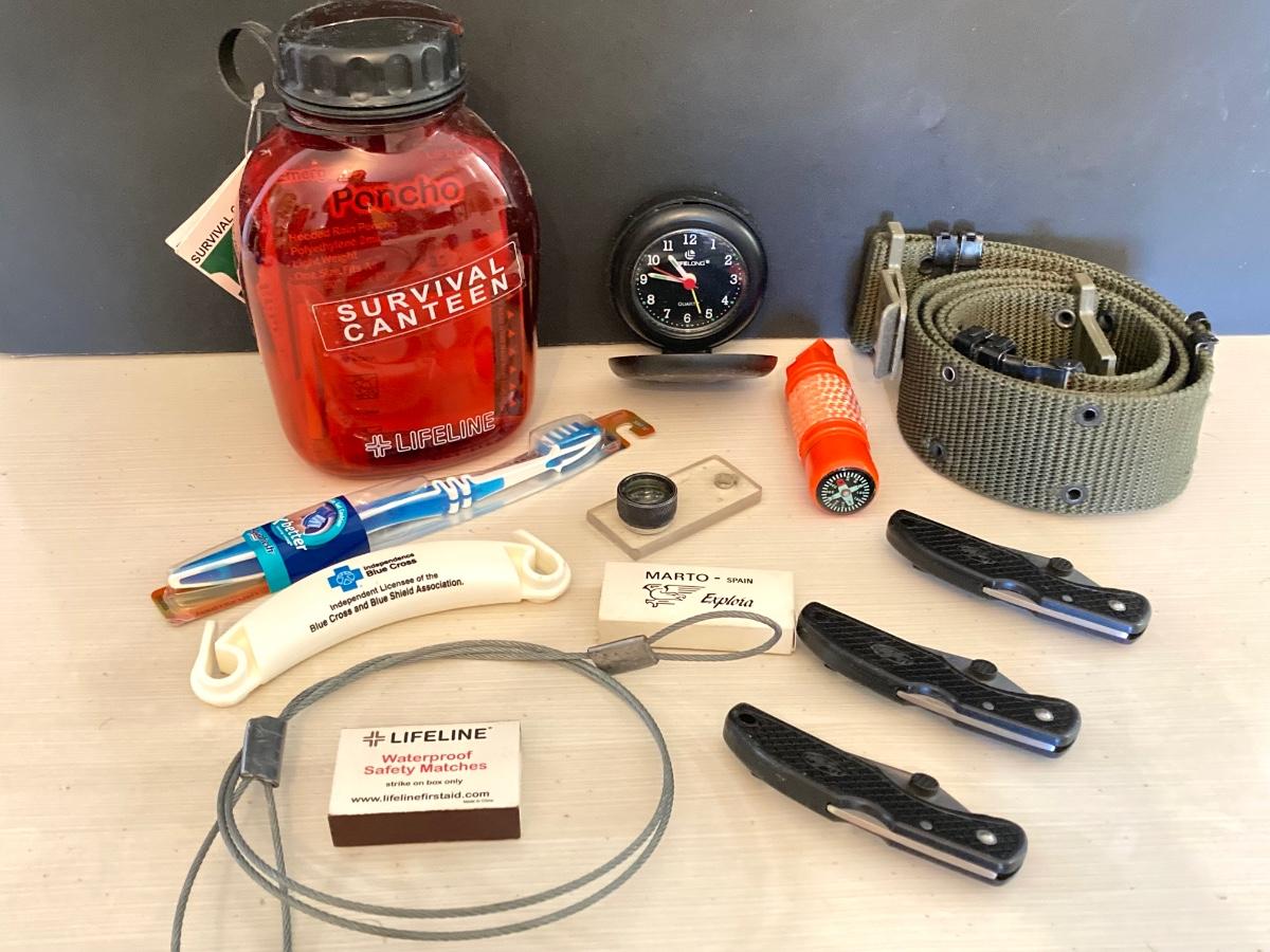 LOT 60: Jeep Backpack, Vintage Military Flasks, Survival Tools and Essentials