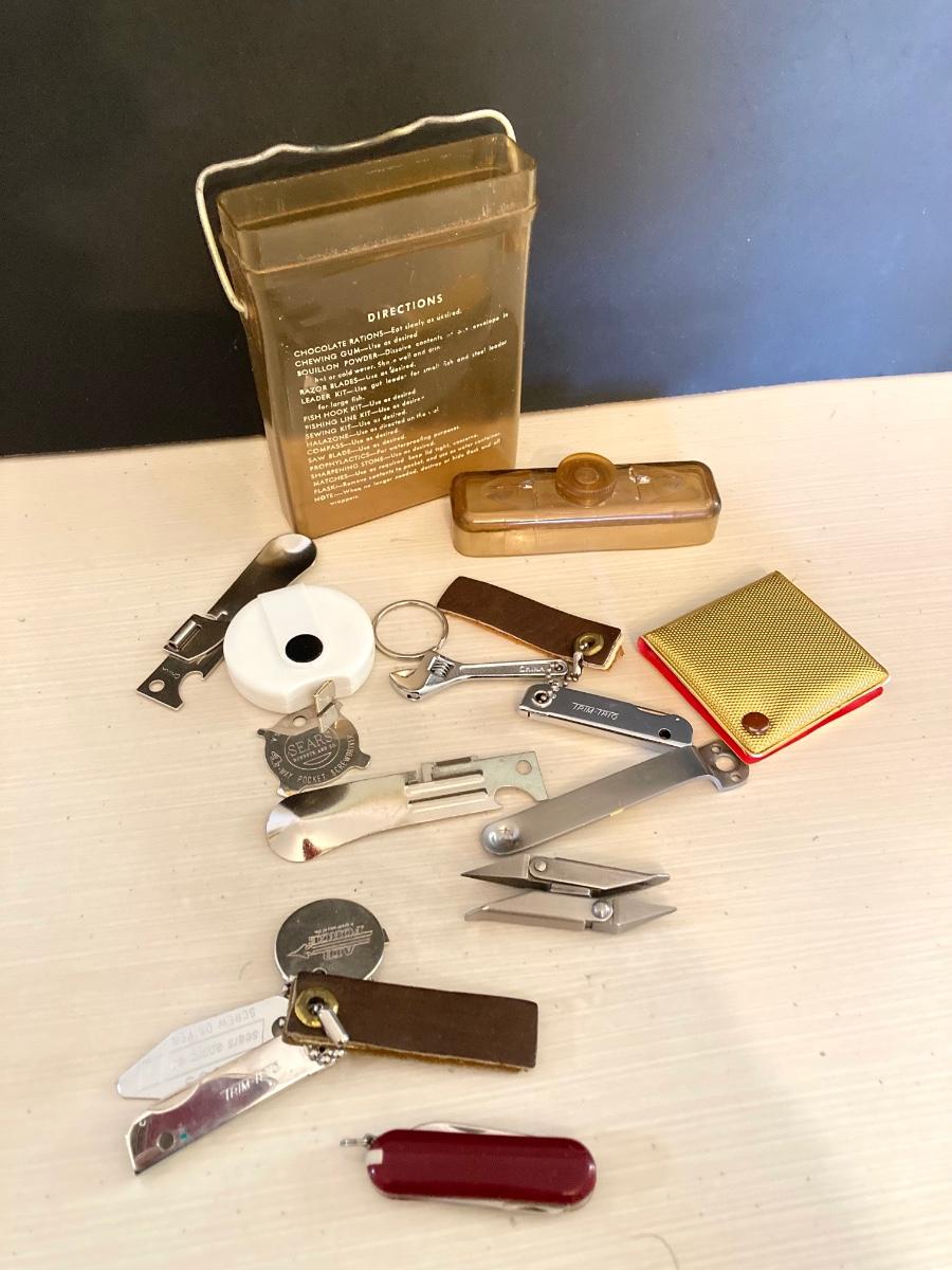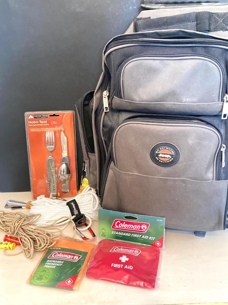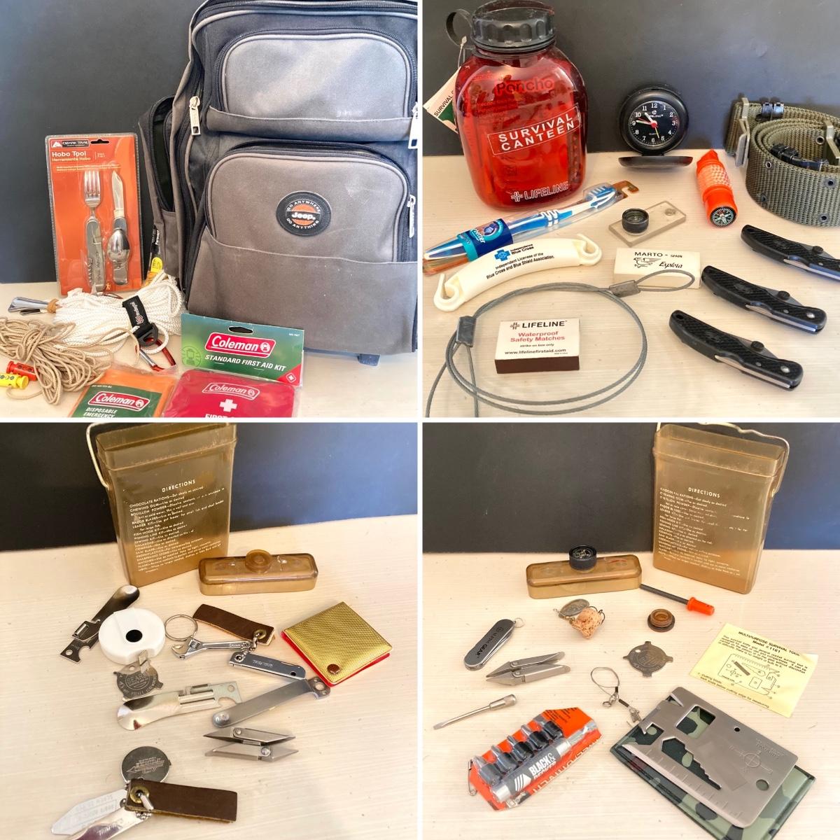 LOT 60: Jeep Backpack, Vintage Military Flasks, Survival Tools and Essentials