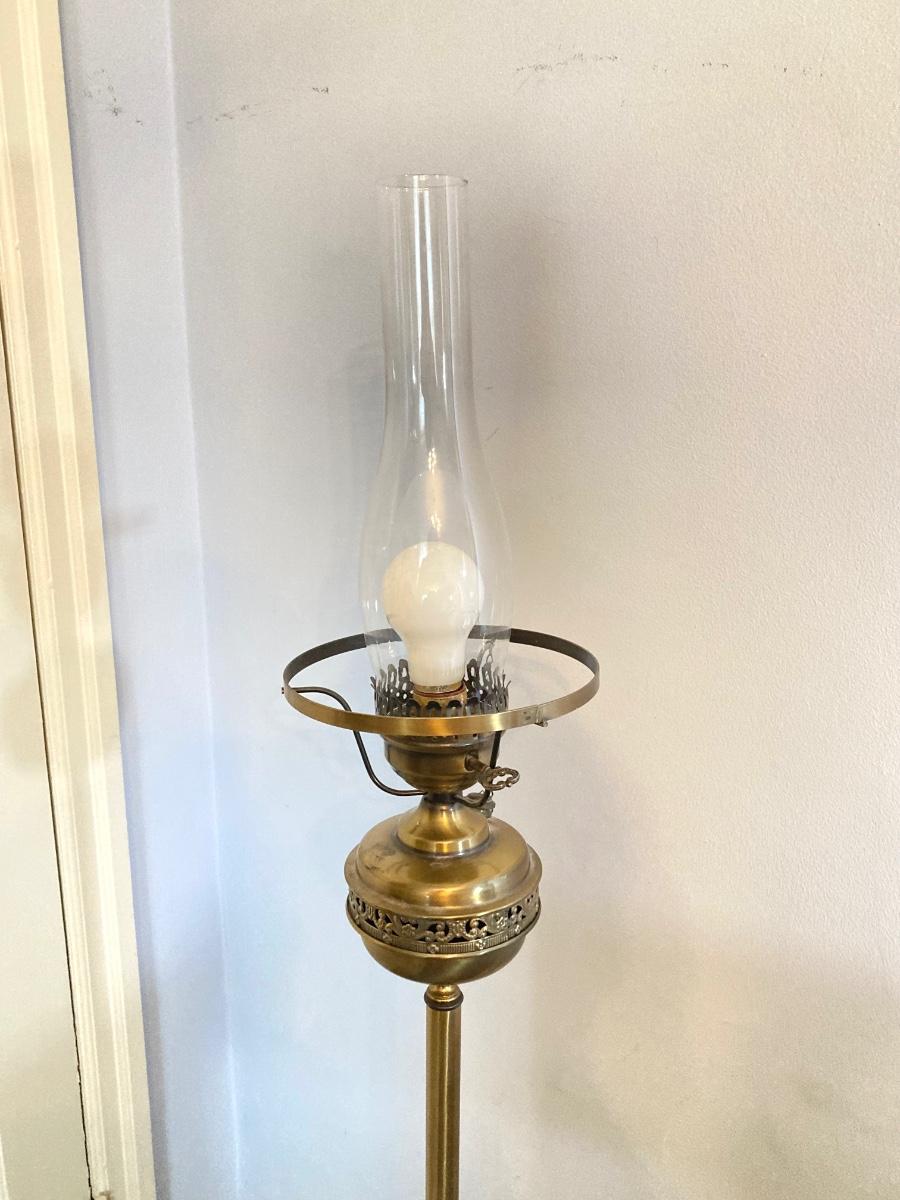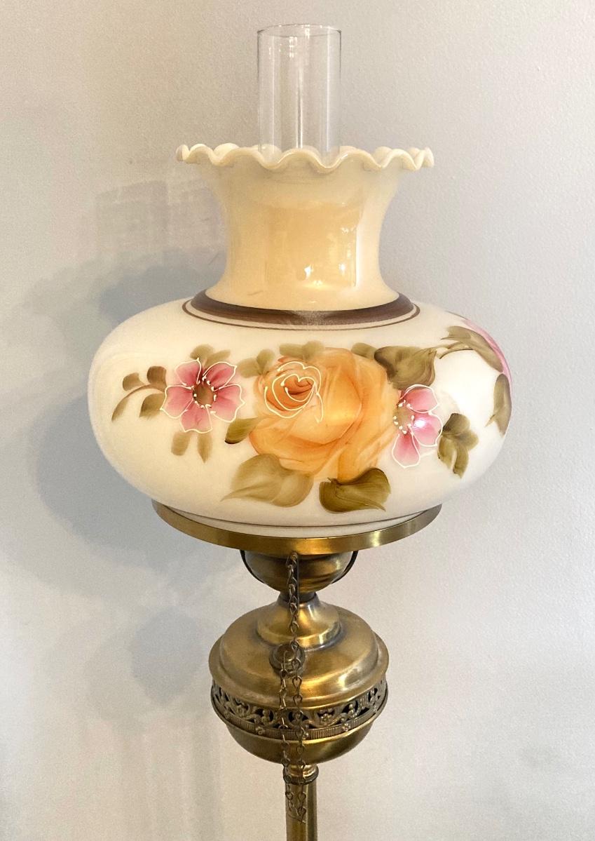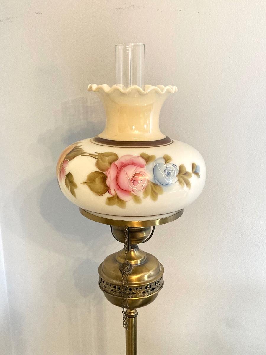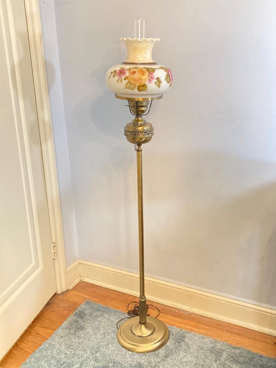 LOT 65: Vintage Hurricane Style Hand Painted Lantern Brass Floor Lamp
