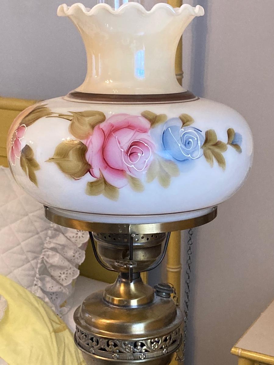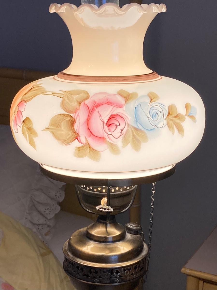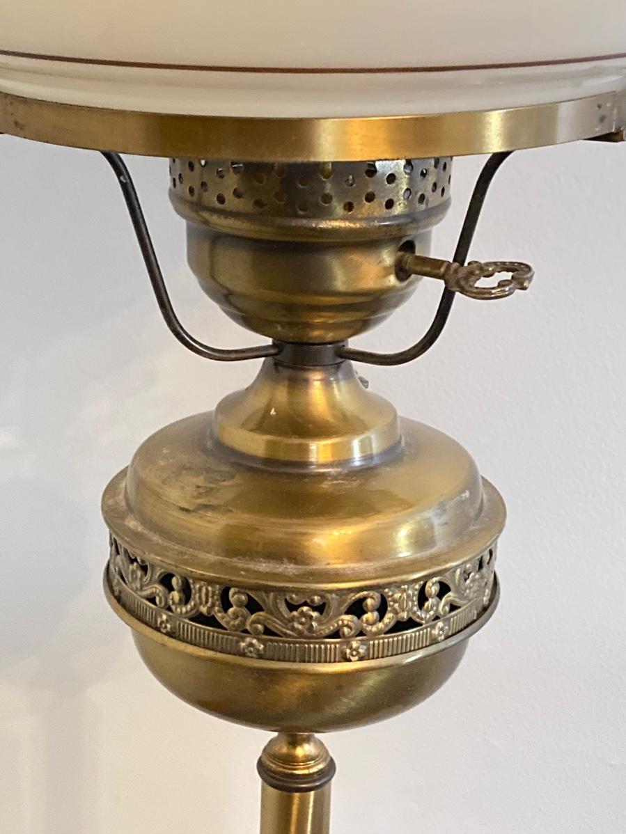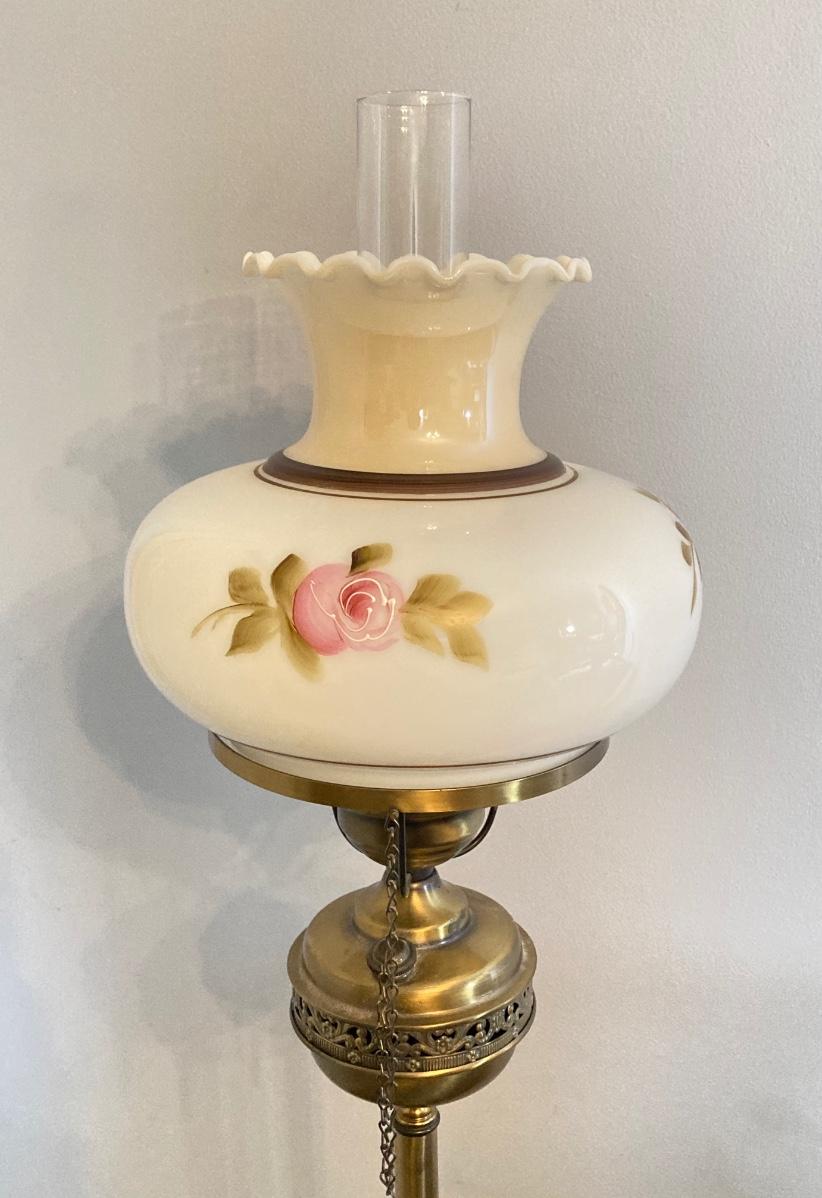 LOT 65: Vintage Hurricane Style Hand Painted Lantern Brass Floor Lamp