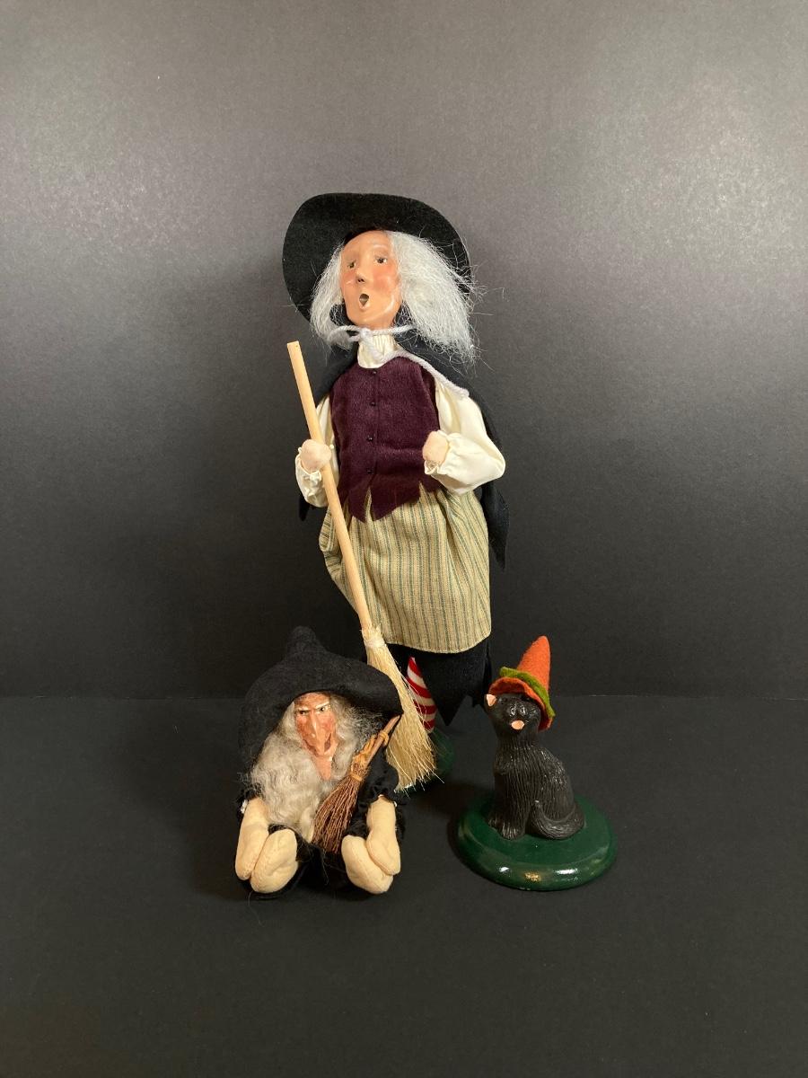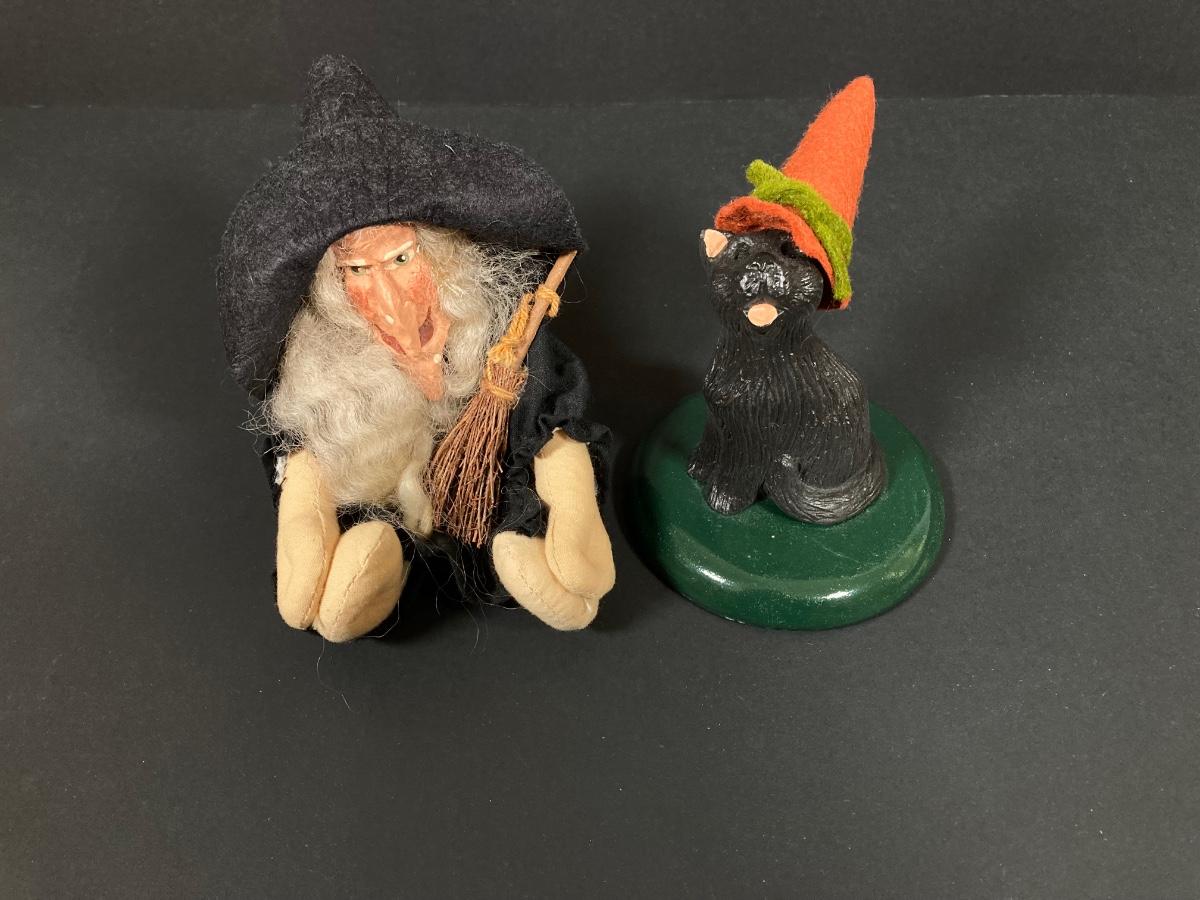 LOT 72: Byers' Choice Ltd Halloween Witch, Halloween Black Cat and Hand Made Witch