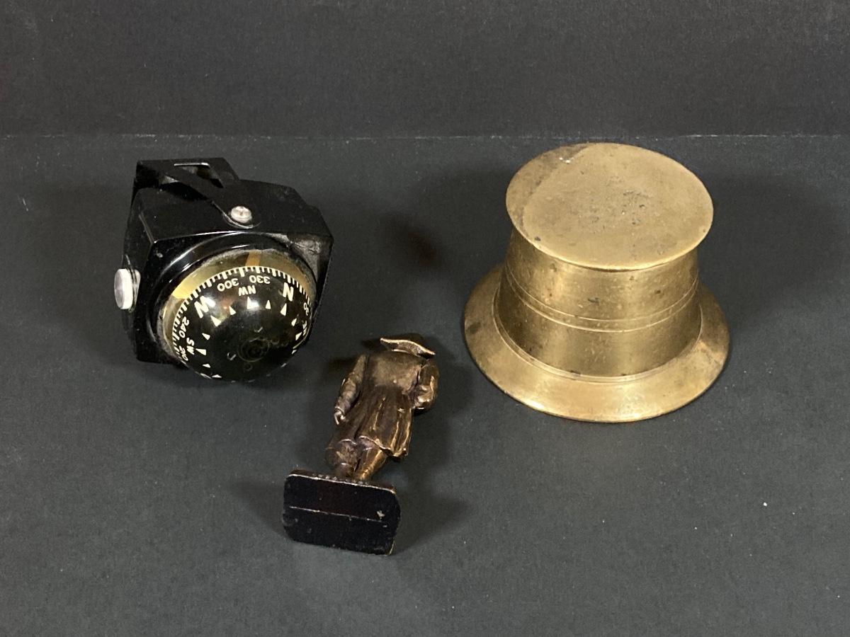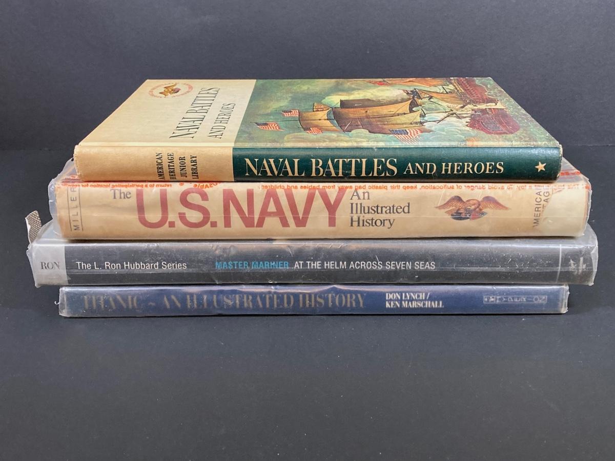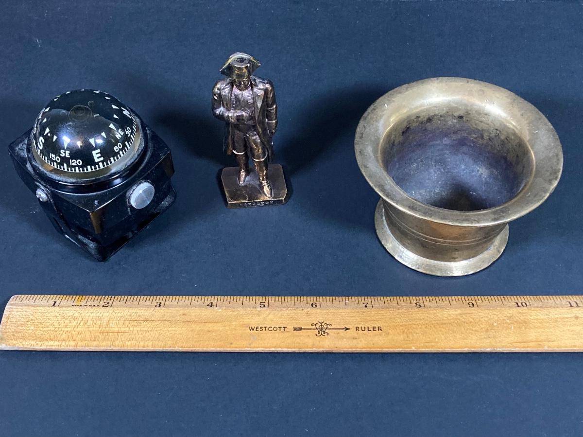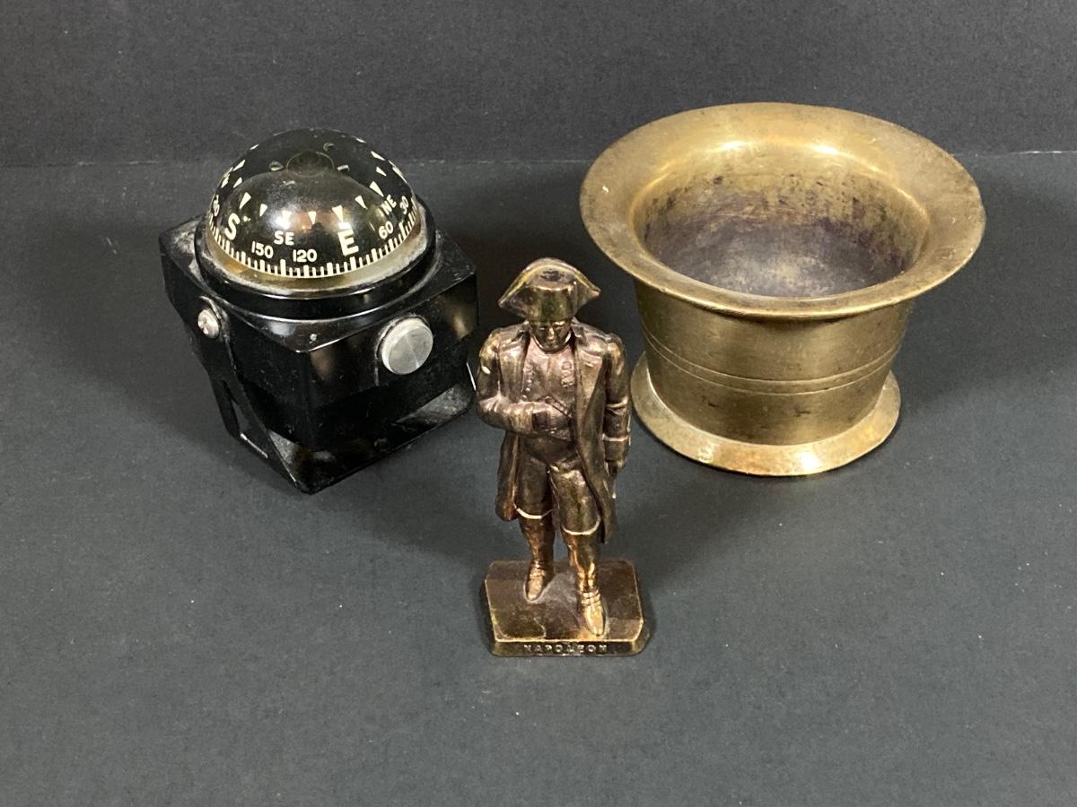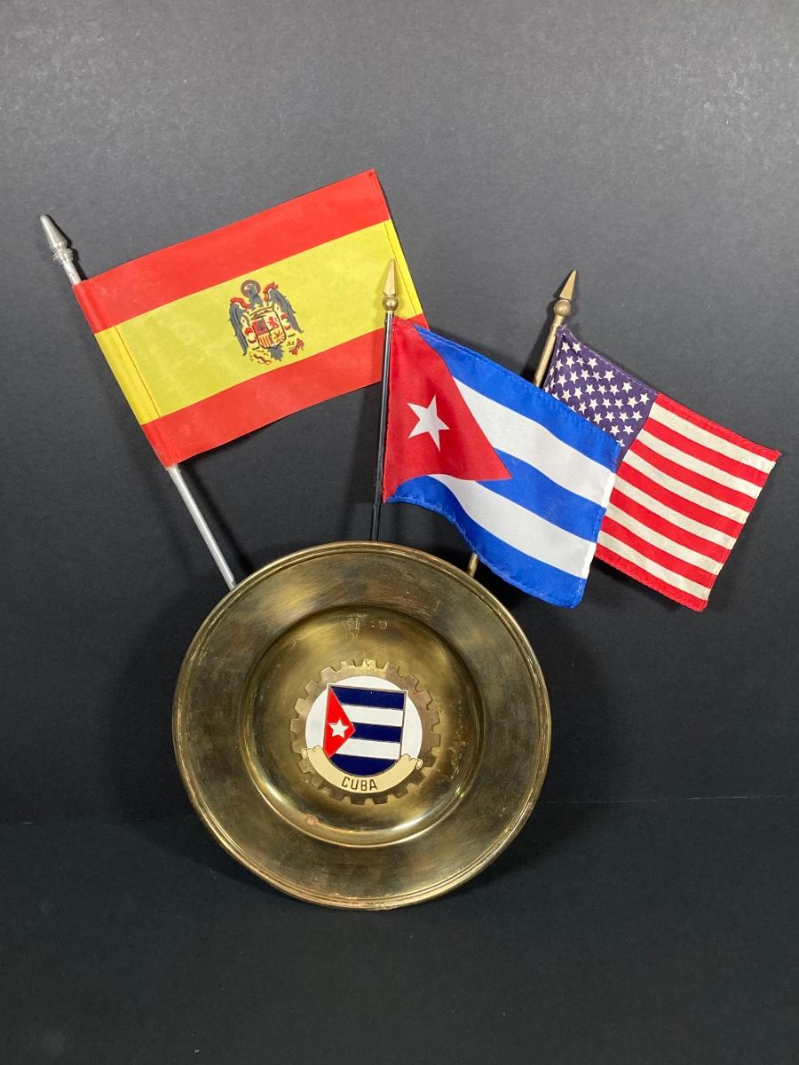 LOT 75: Nautical Books, Flags (Spain, Cuba and USA), Brass Plate and Mini Spittoon, Napolean Figurine and More