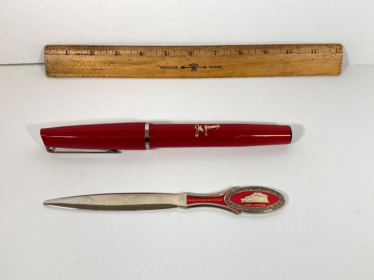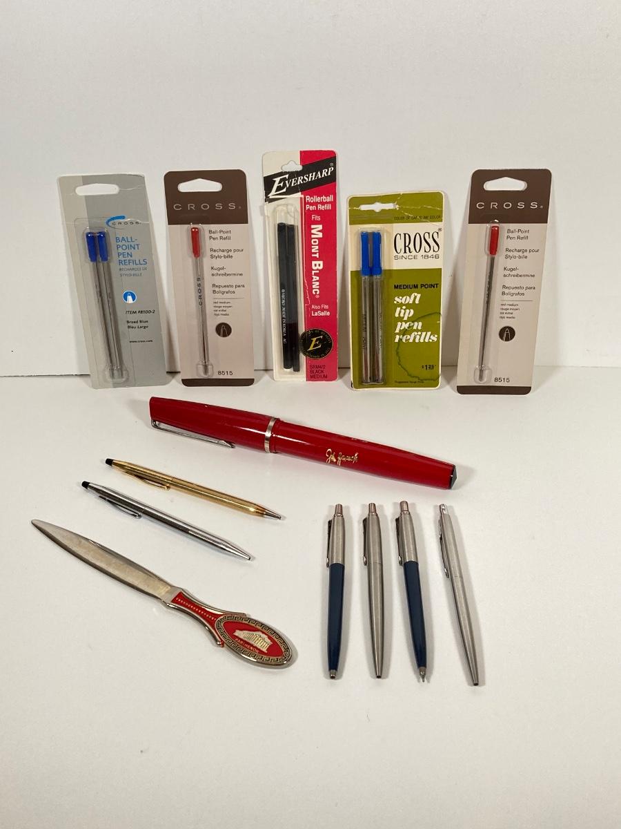 LOT 79: Pen Collection - Cross, Parker, John Wanamaker, Refills and Greek Letter Opener