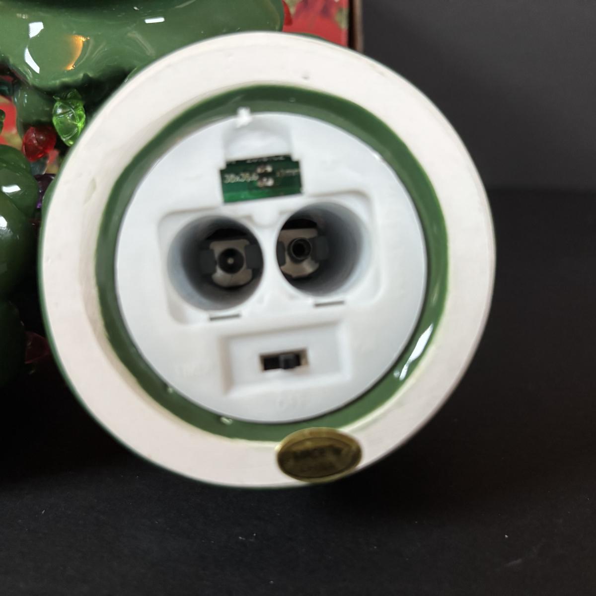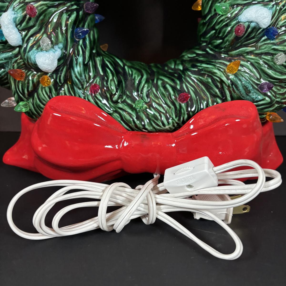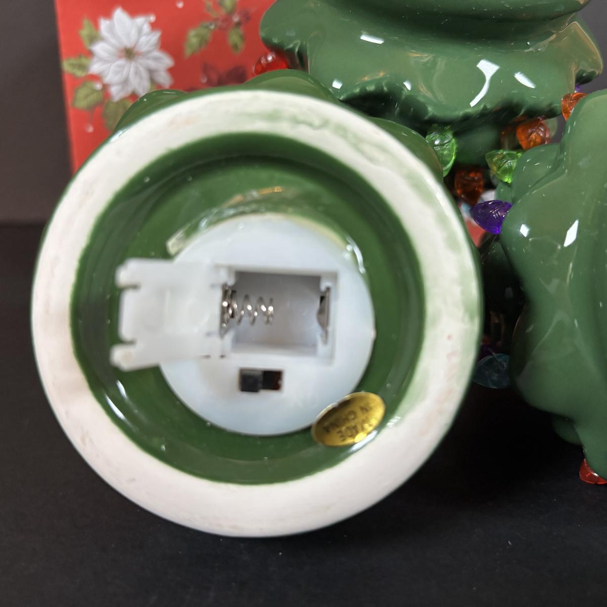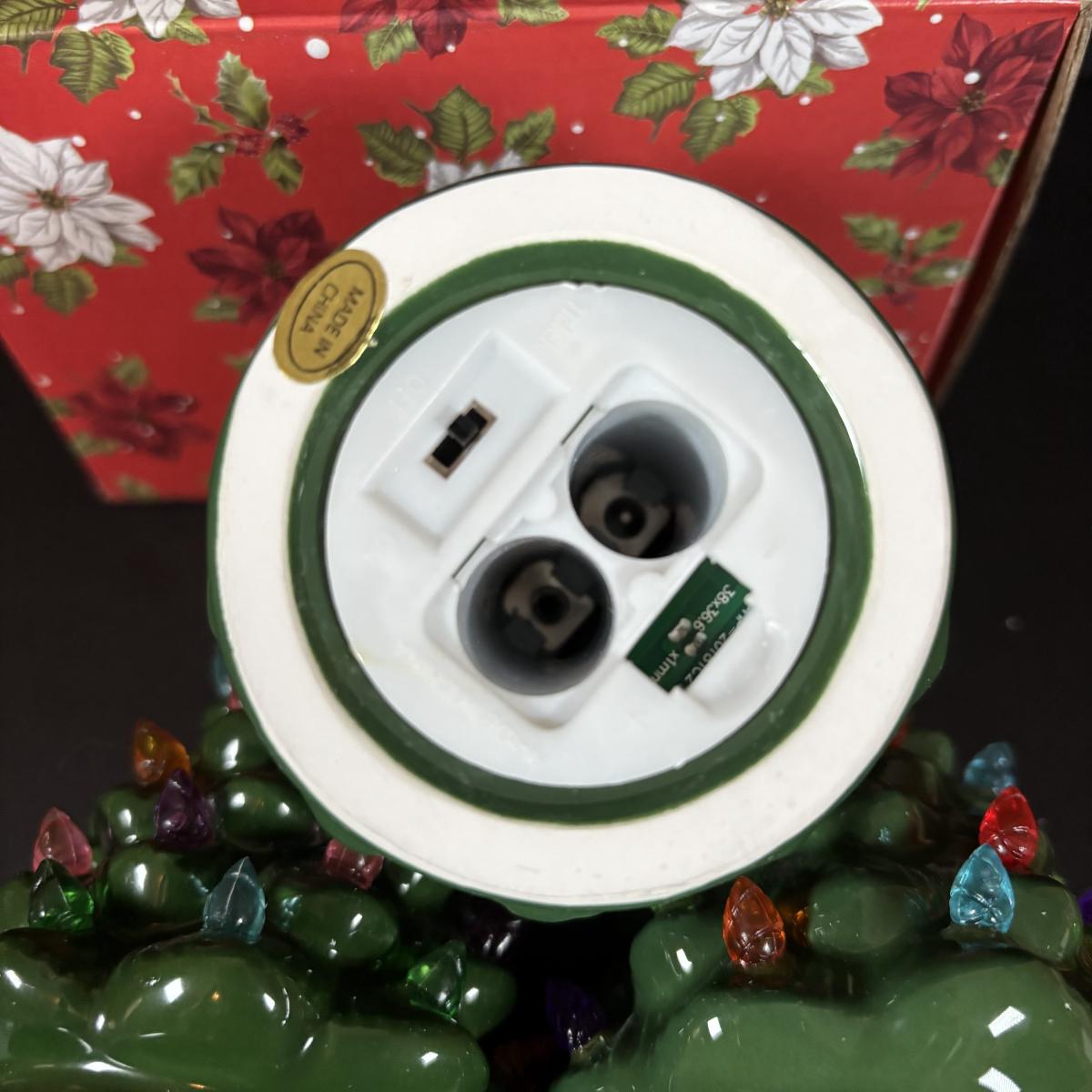LOT 96: Collection of Ceramic Lighted Mini Christmas Trees, Ceramic Christmas Wreath and Holy Leaf Dish