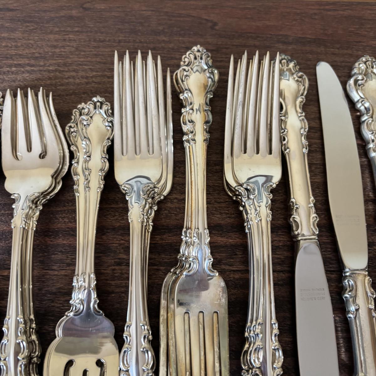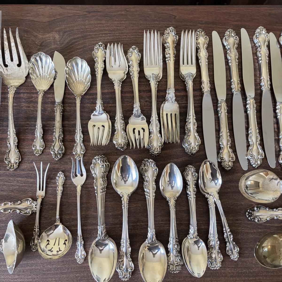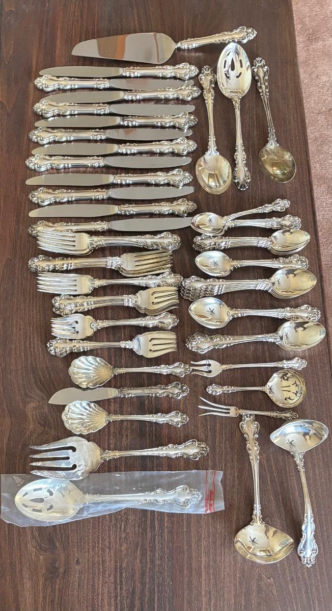 LOT:106: Reed and Barton Sterling Silver Flatware and Serving Set - Service of 12 plus Serving Pieces over 3,0000 Grams!