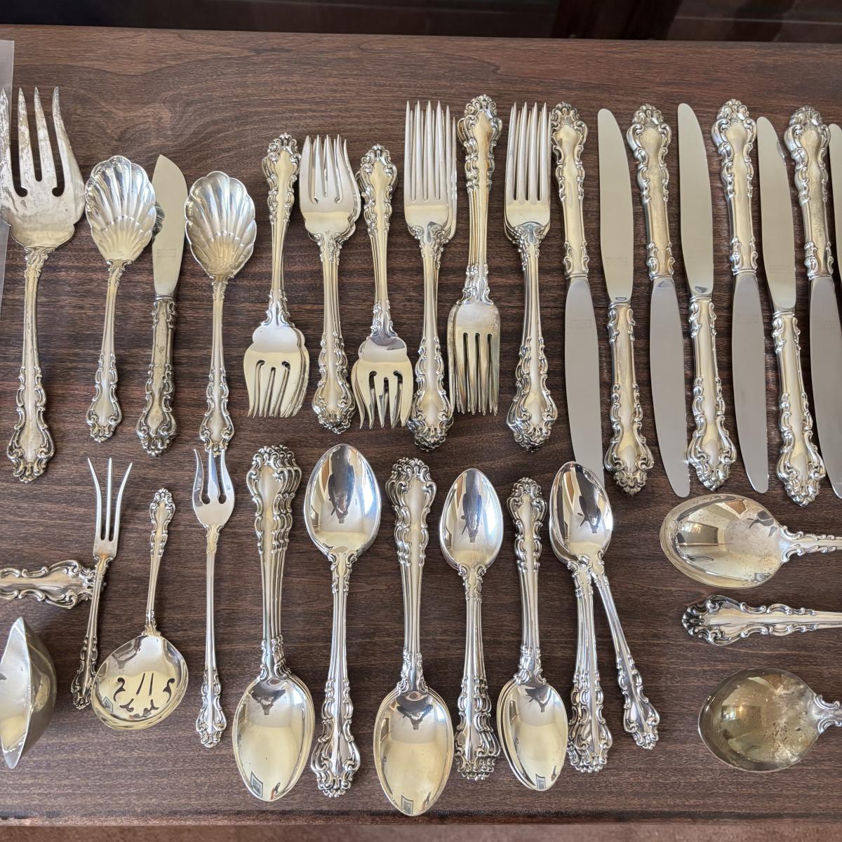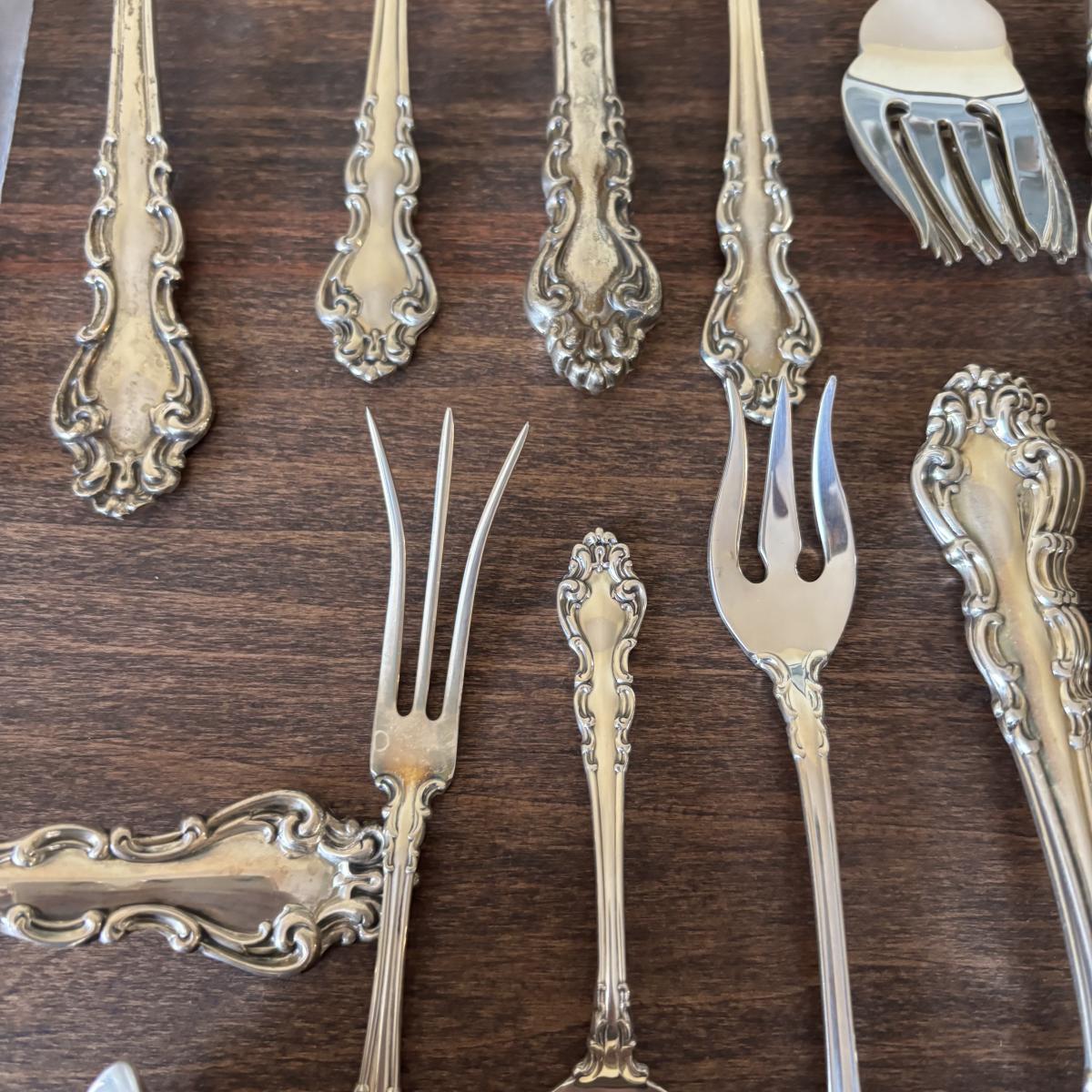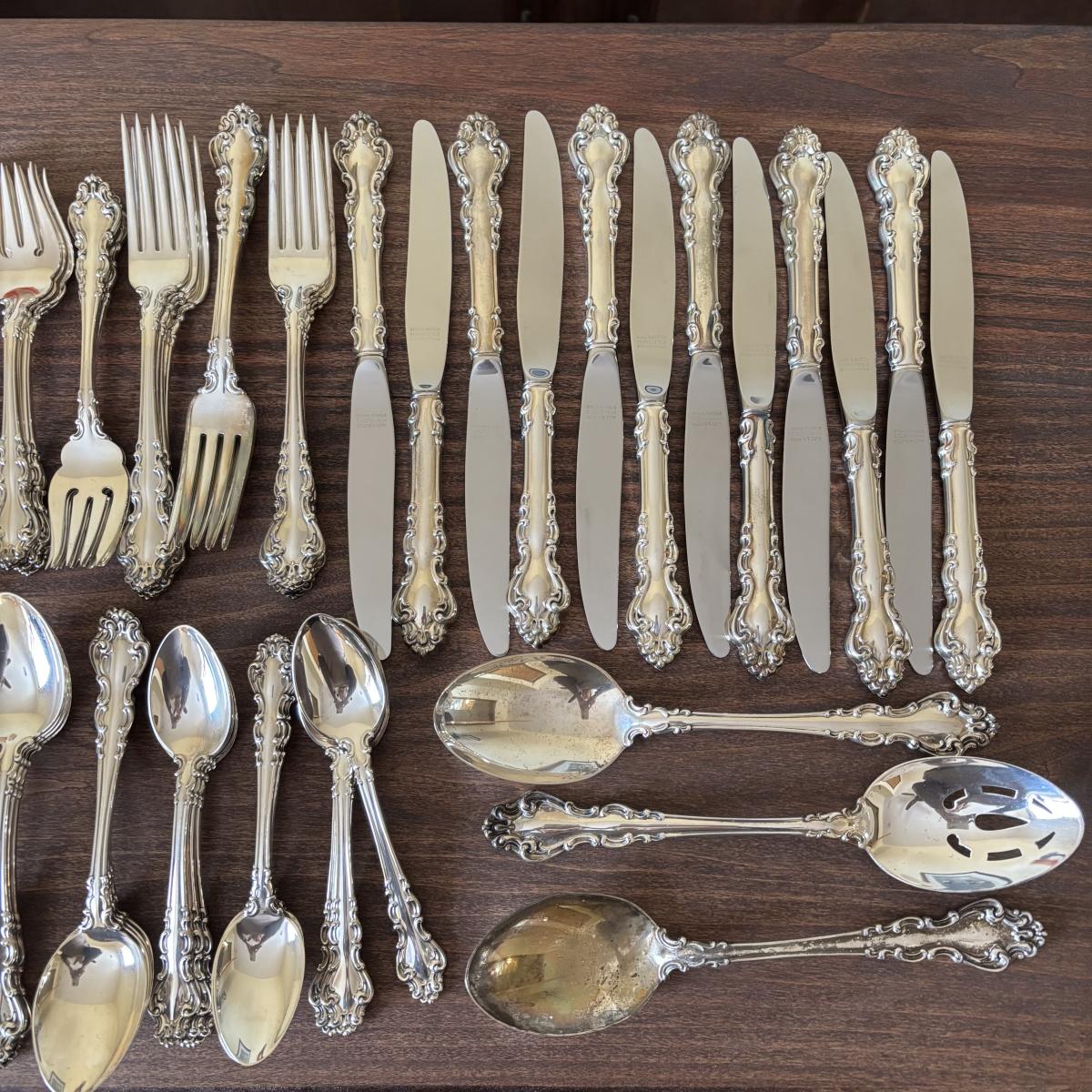 LOT:106: Reed and Barton Sterling Silver Flatware and Serving Set - Service of 12 plus Serving Pieces over 3,0000 Grams!