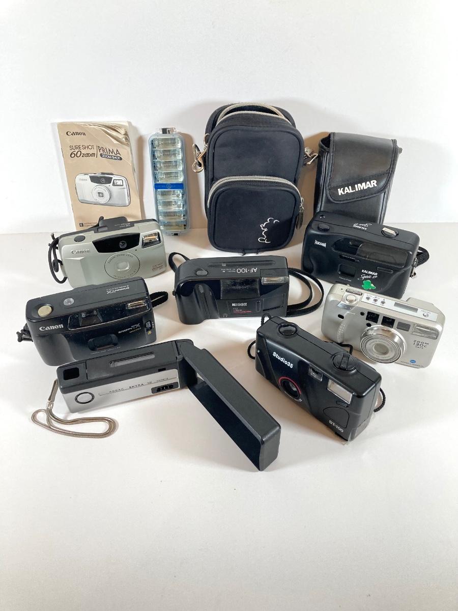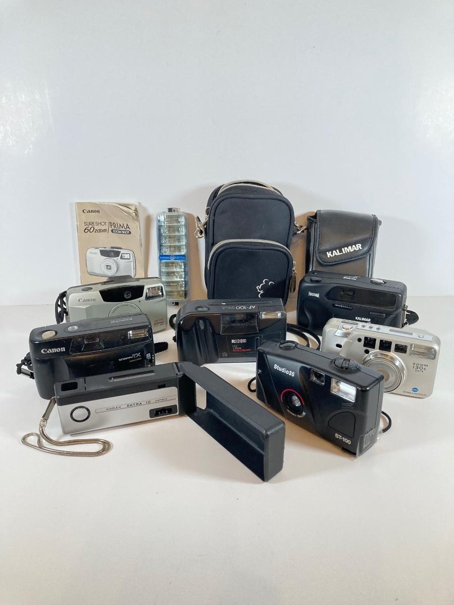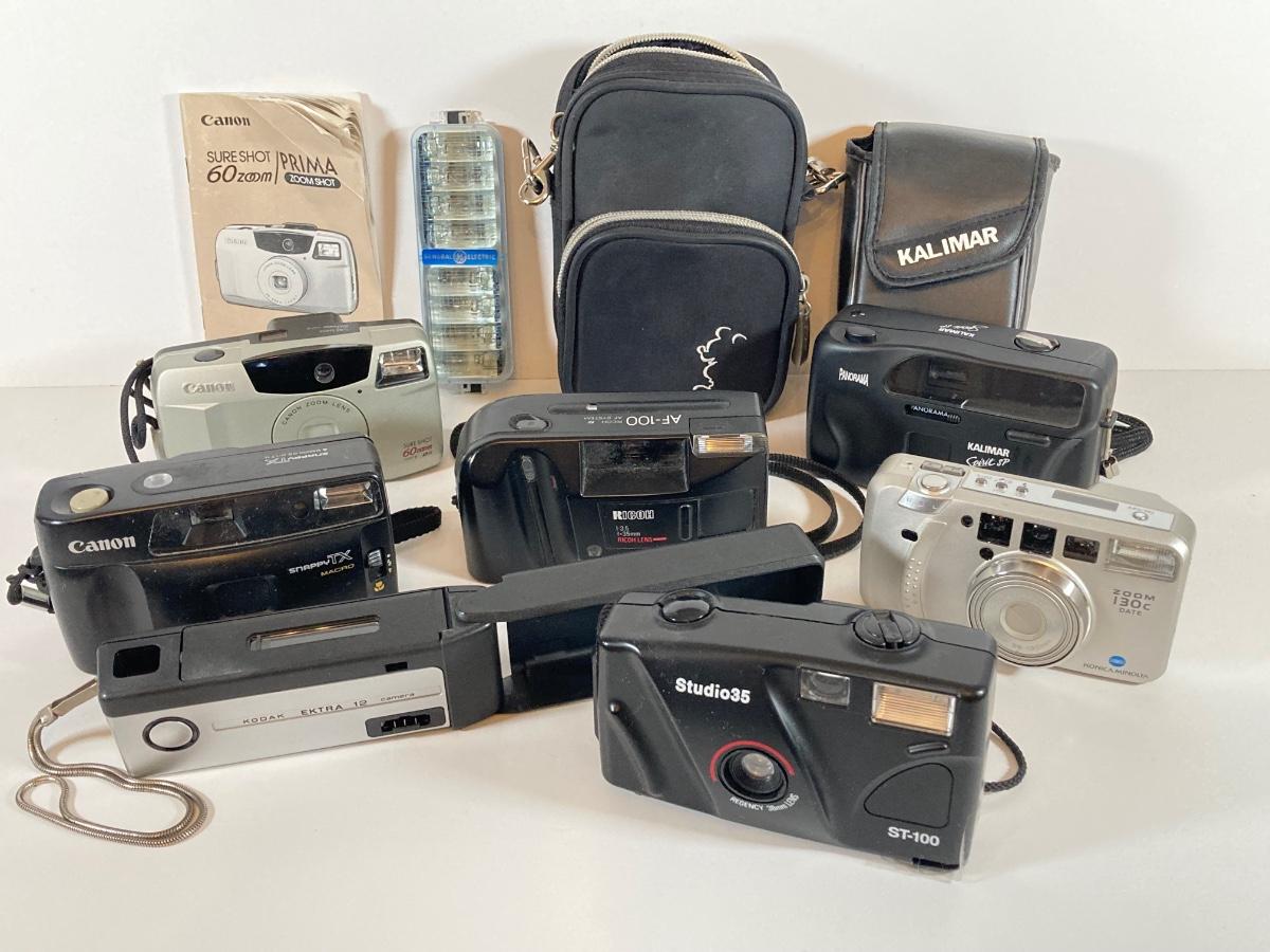 LOT 168: Vintage Camera / Equipment Collection - Canon, Kalimar, Kodak, Konica Minolta, Disney Mickey Mouse Case and More