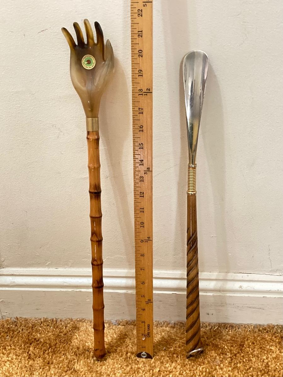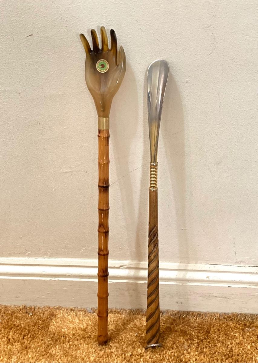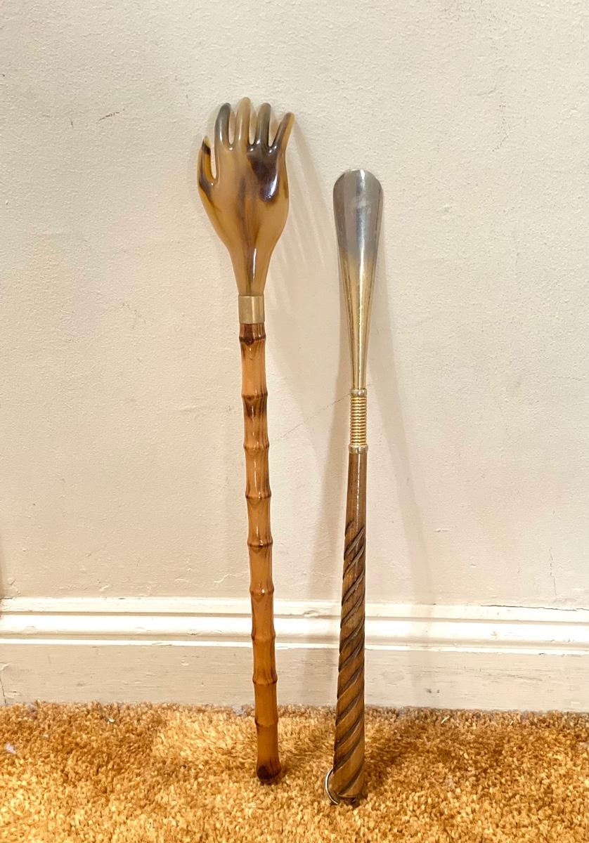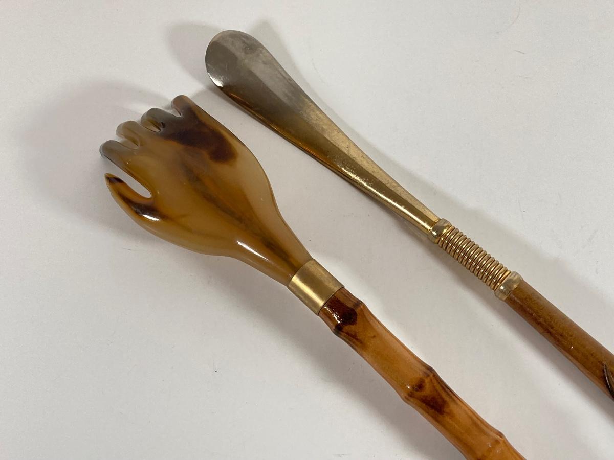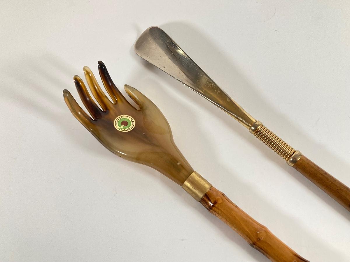 LOT 169: Vintage Collection - J.W Pipe, Cigarette Holder, Ashtray, Back Scratcher (Italy), Shoe Horn, Leather Holders, Brass Bell and Container