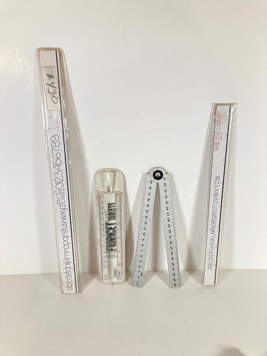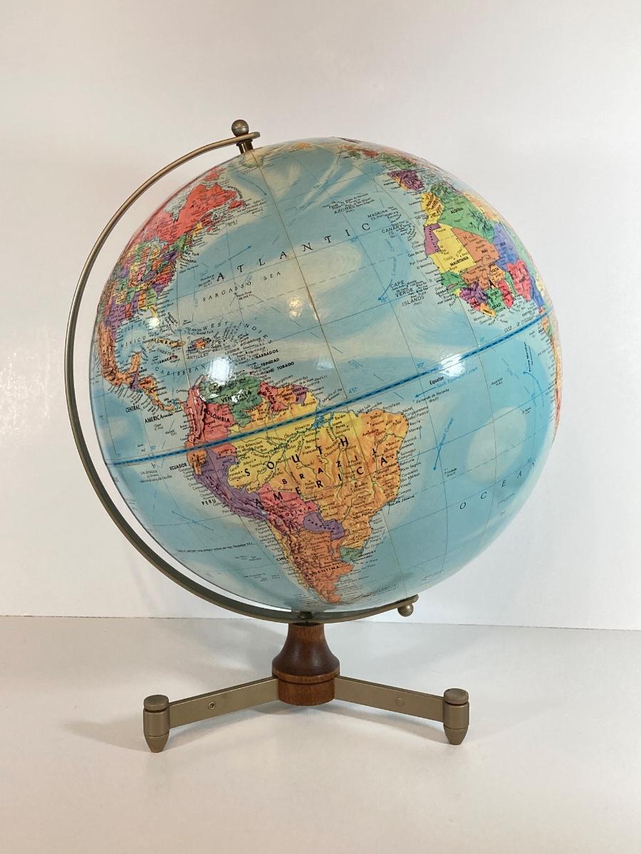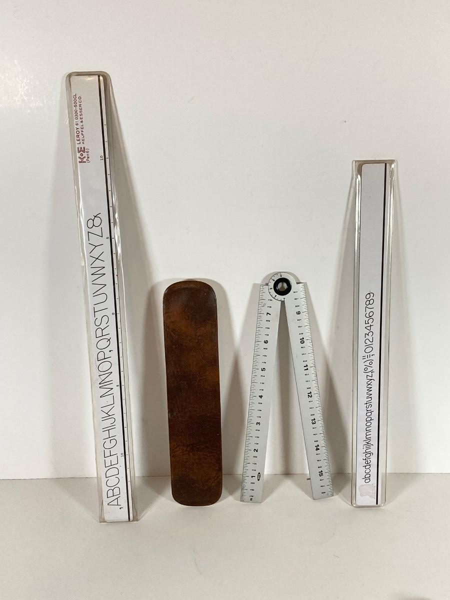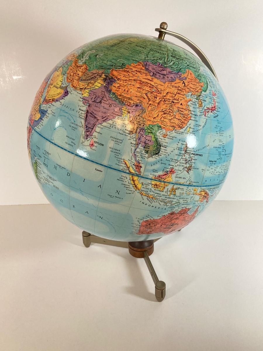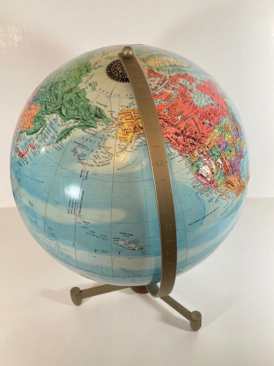 LOT: Bombay Adjustable Wooden Book Ends, Replogle Globe, Binoculars, Vintage Drawing / Measuring Tools and More