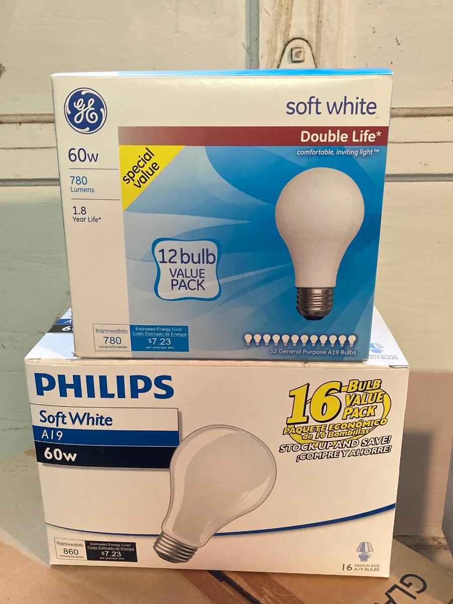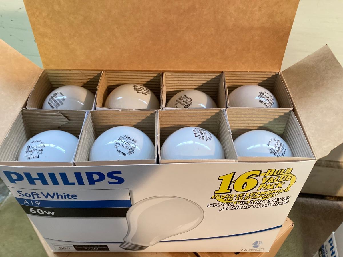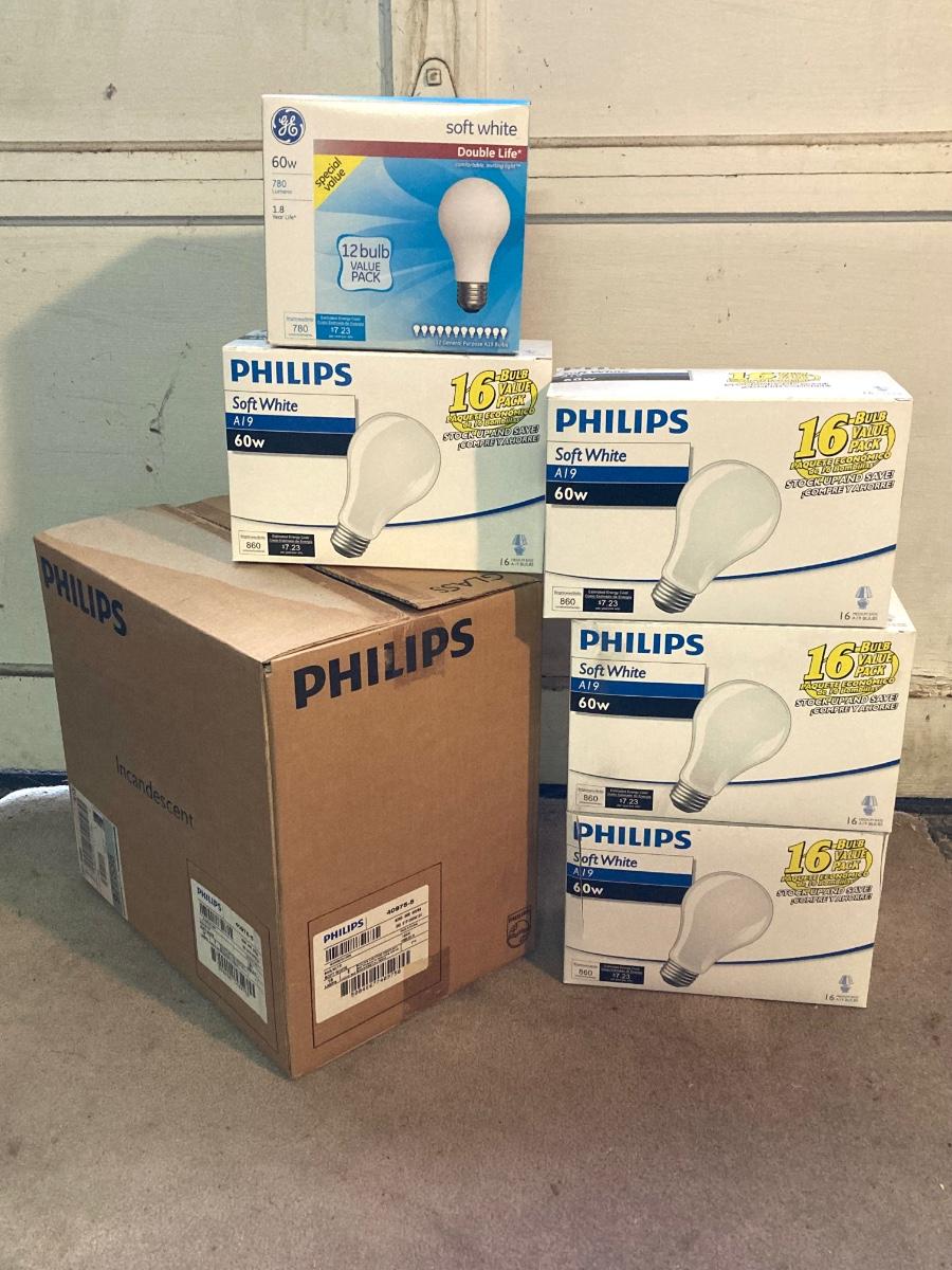LOT 175: Large Lot of Light Bulbs - Phillips Soft White 60w and GE Soft White 60w
