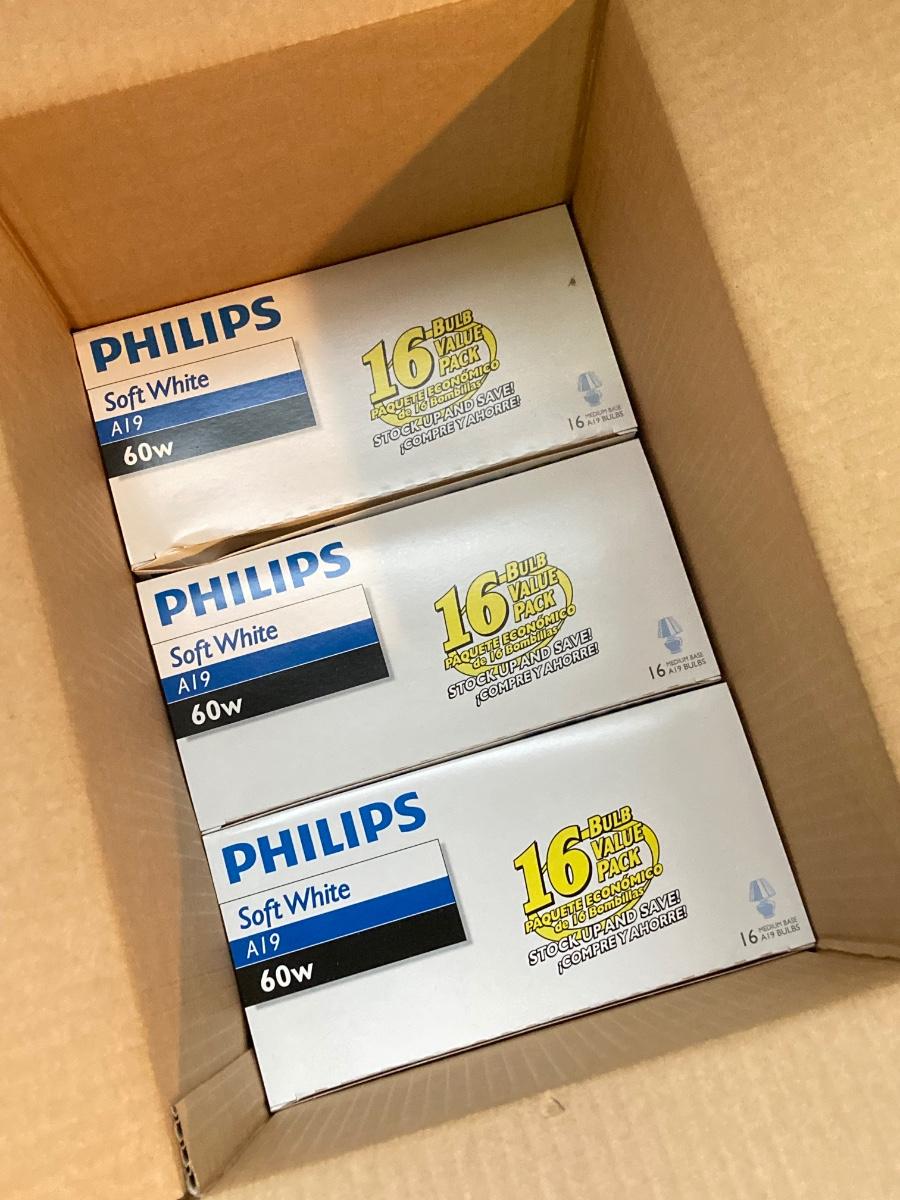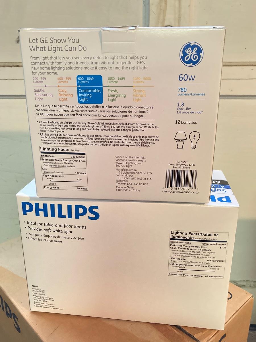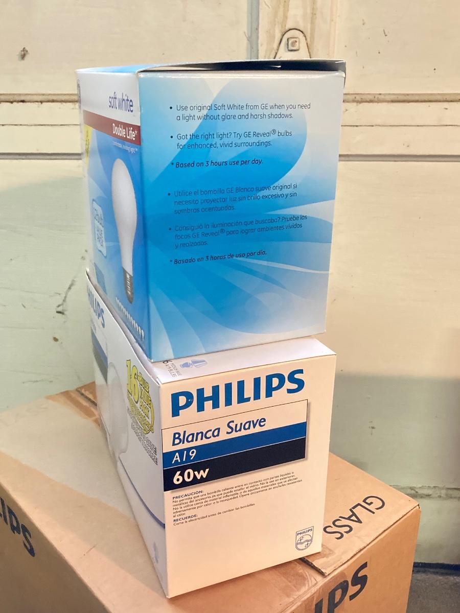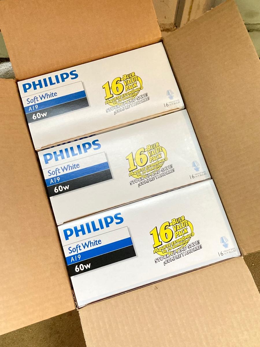 LOT 175: Large Lot of Light Bulbs - Phillips Soft White 60w and GE Soft White 60w