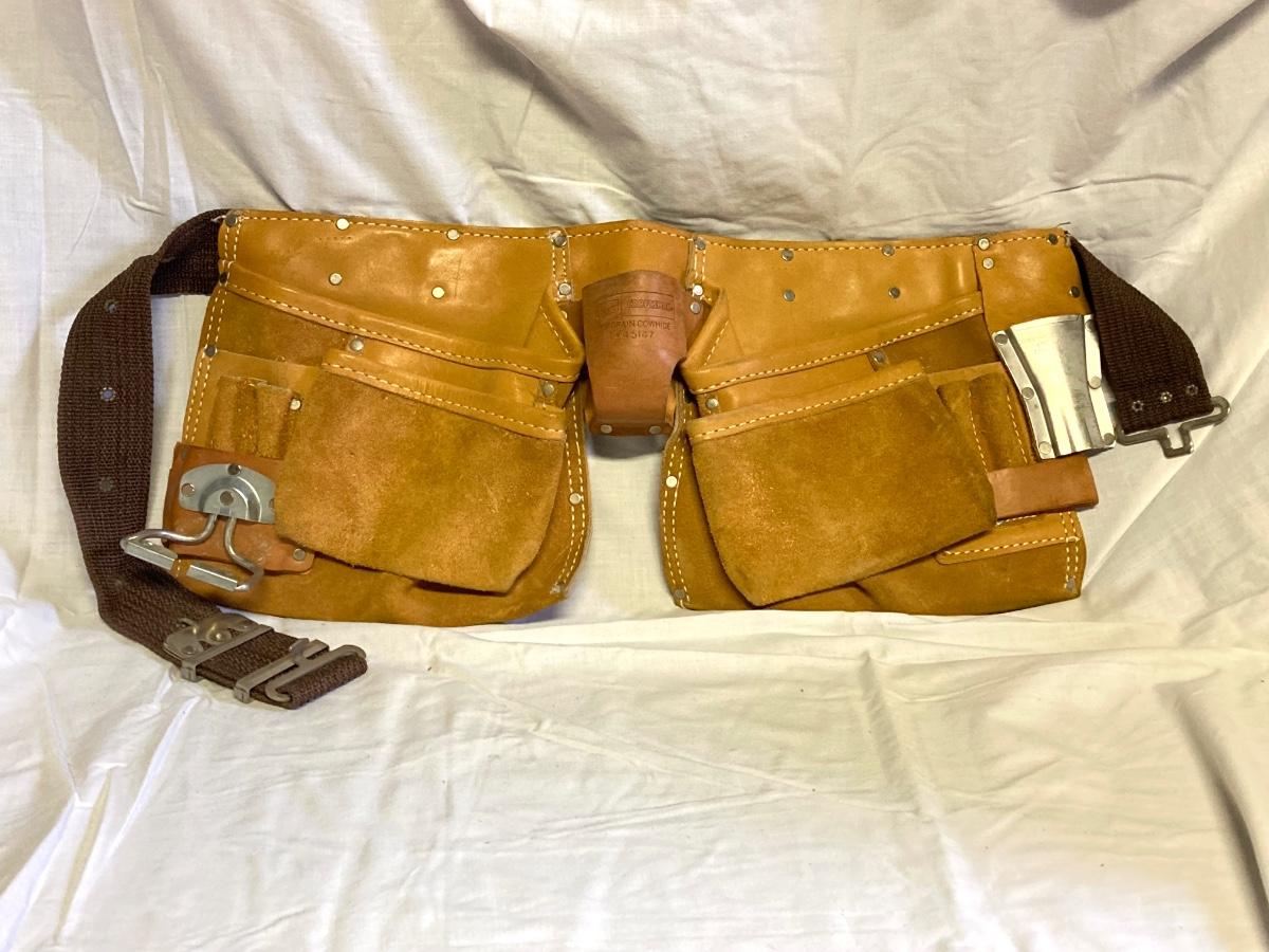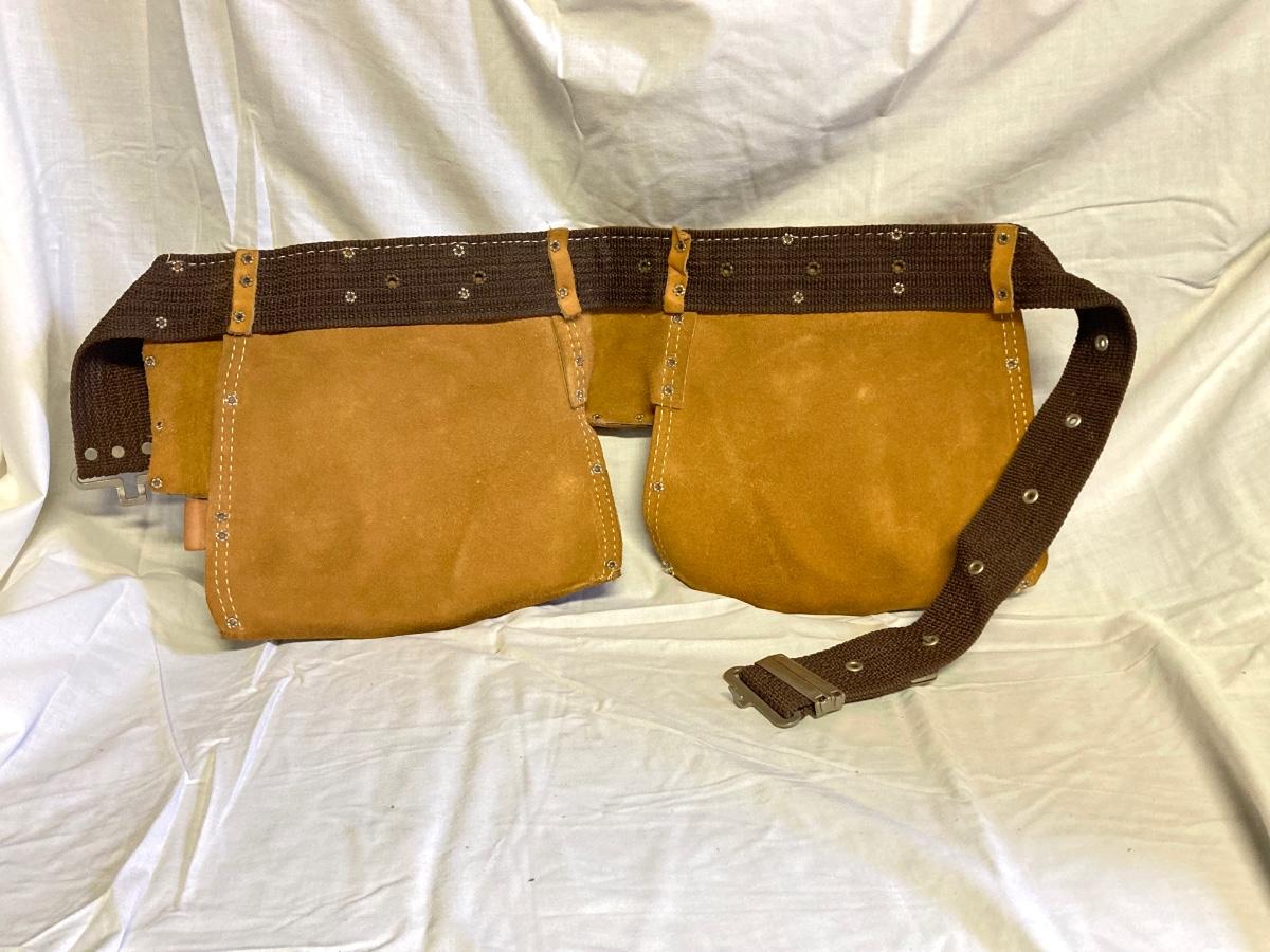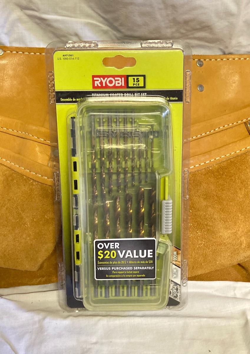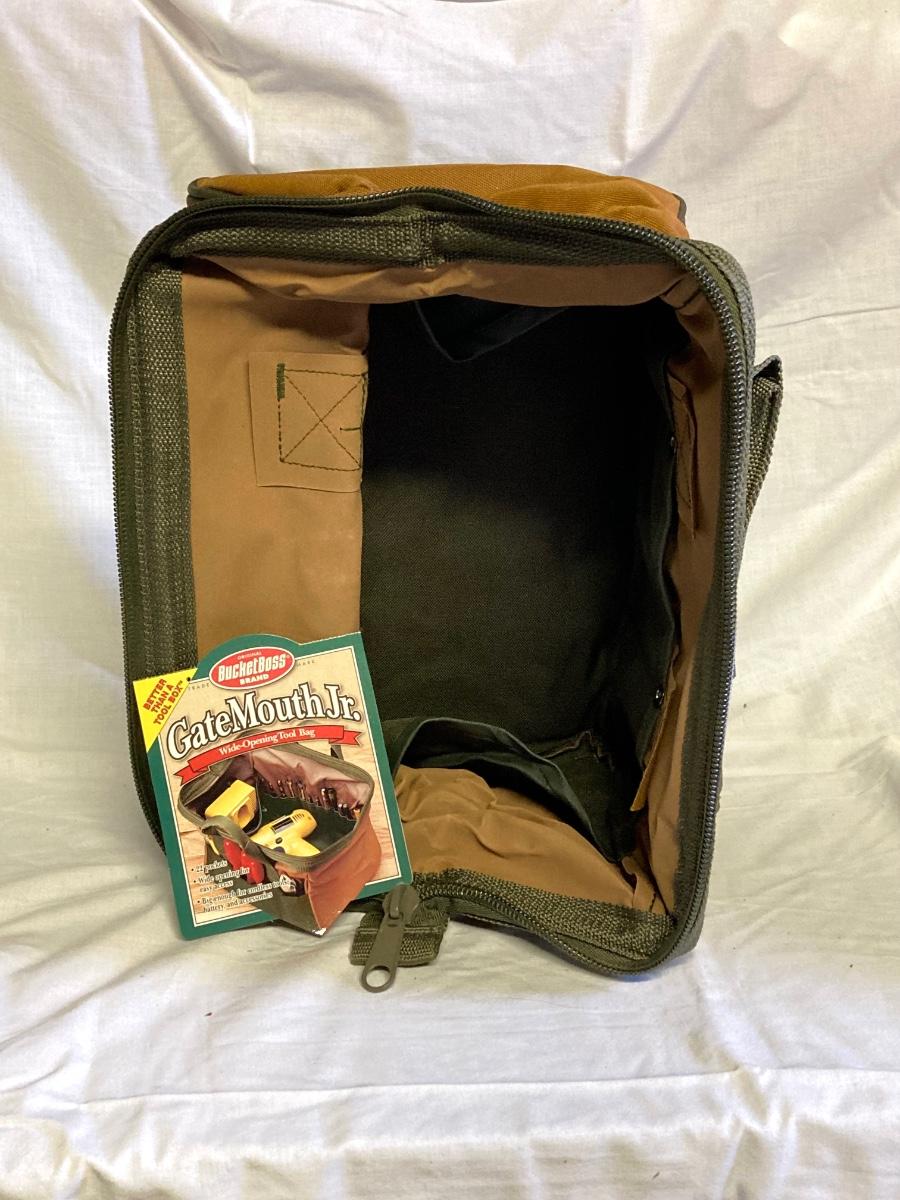 LOT 179: Bucket Boss Brand Gatemouth Jr Tool Bag, Craftsman Tool Belt, Pencil Holder, Ryobi Drill Bits