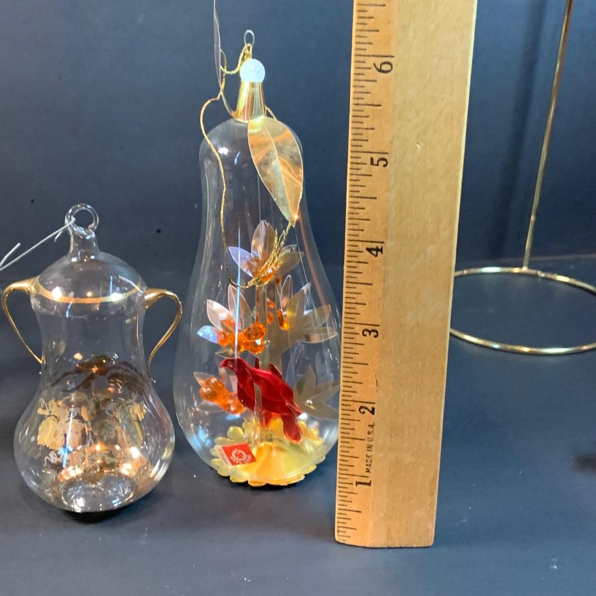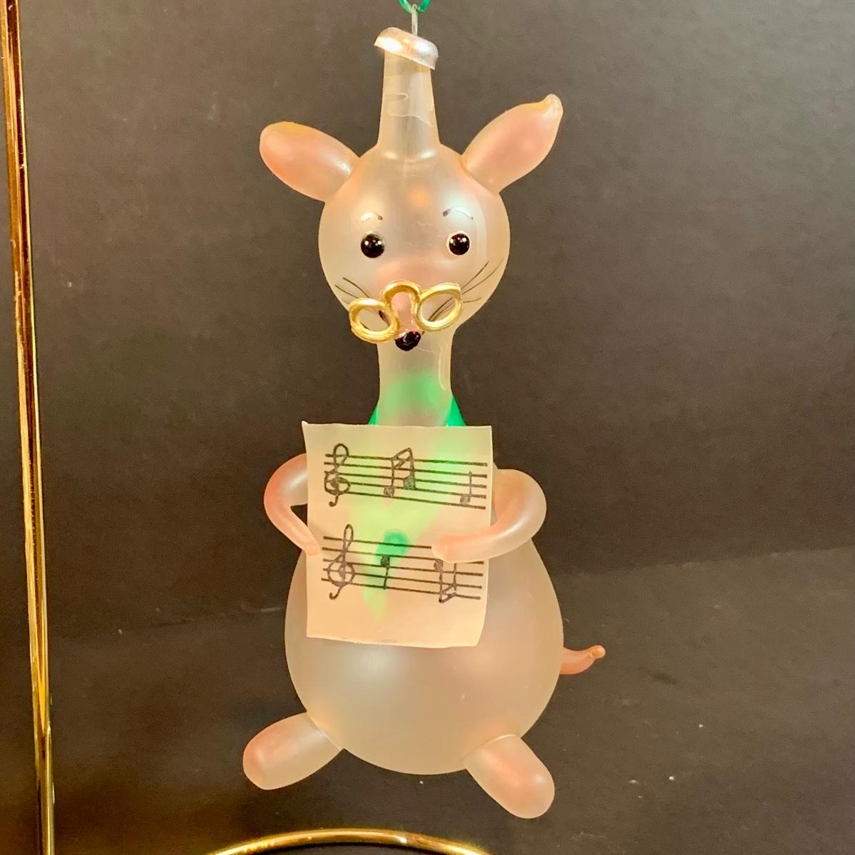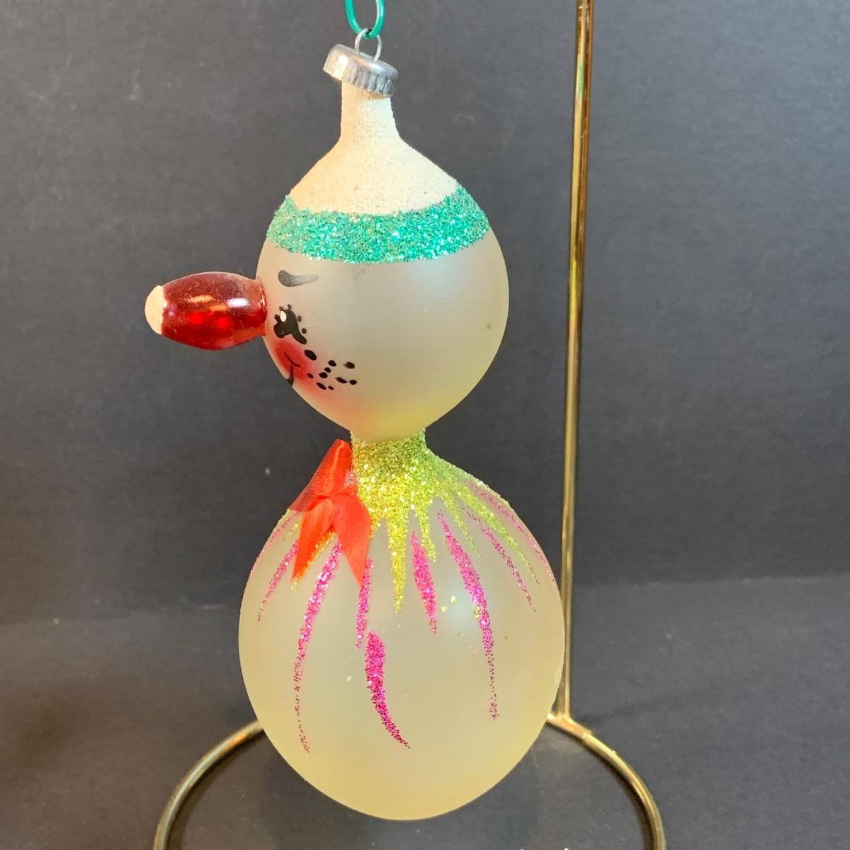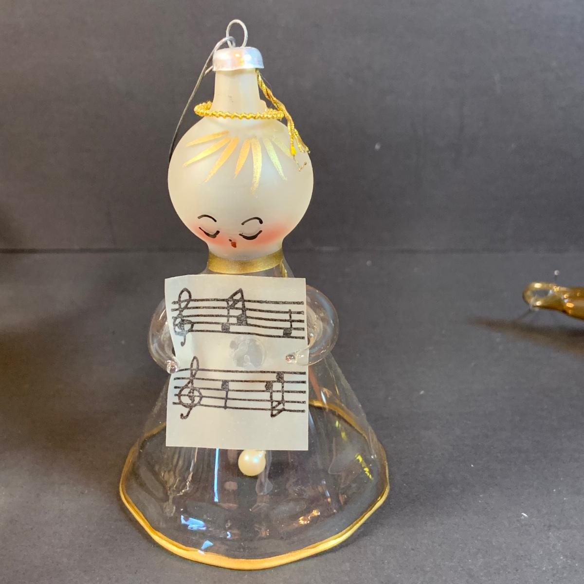 LOT:191: Vintage Ornaments Including De Carlini Angel, Clown and Mouse. Art Glass Teadrop Ornament, Resl Lenz Pear Shaped Ornament and More