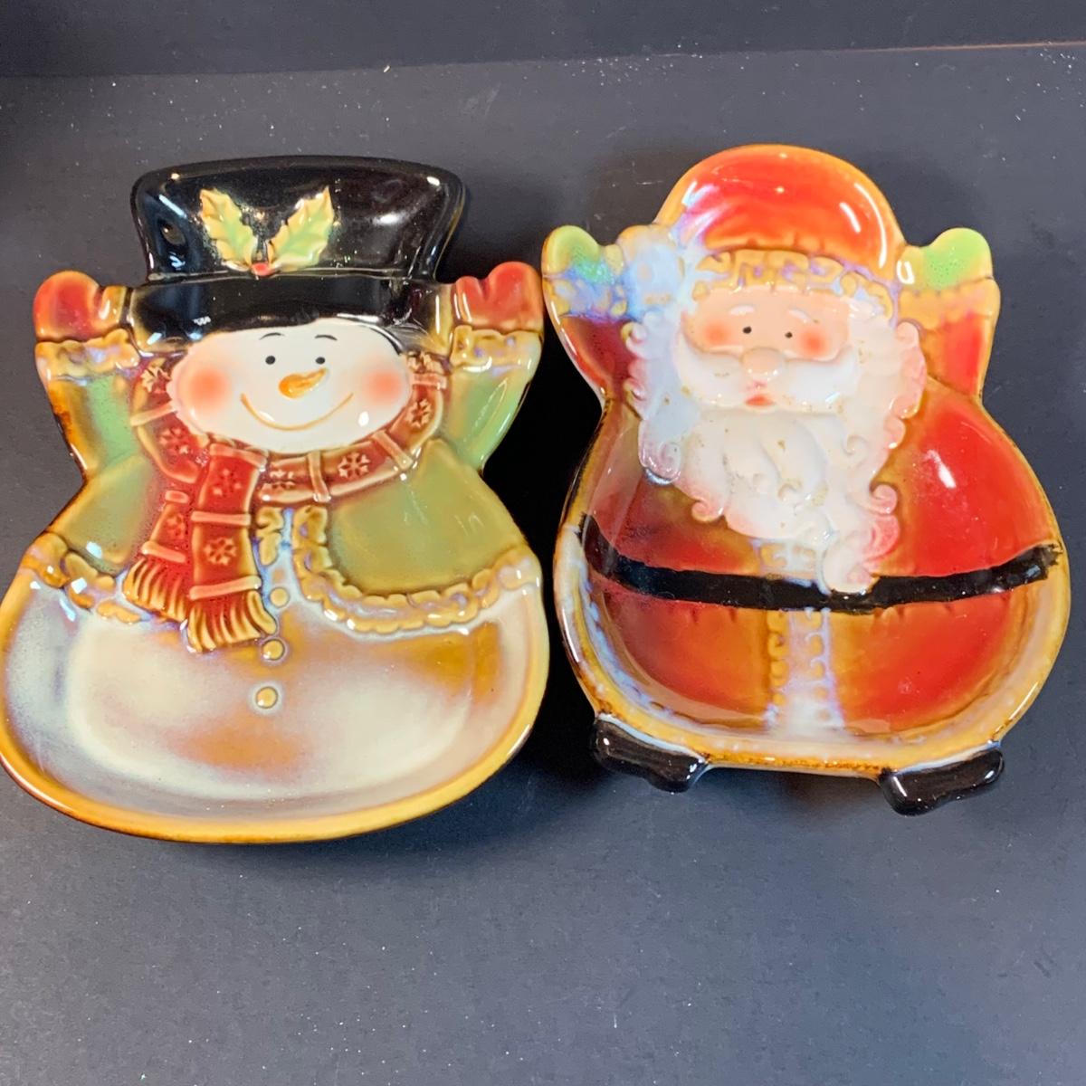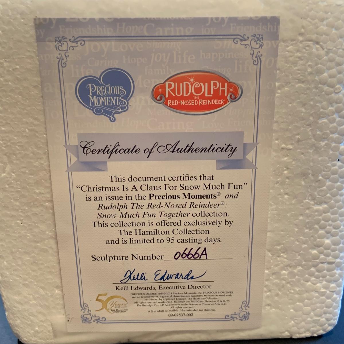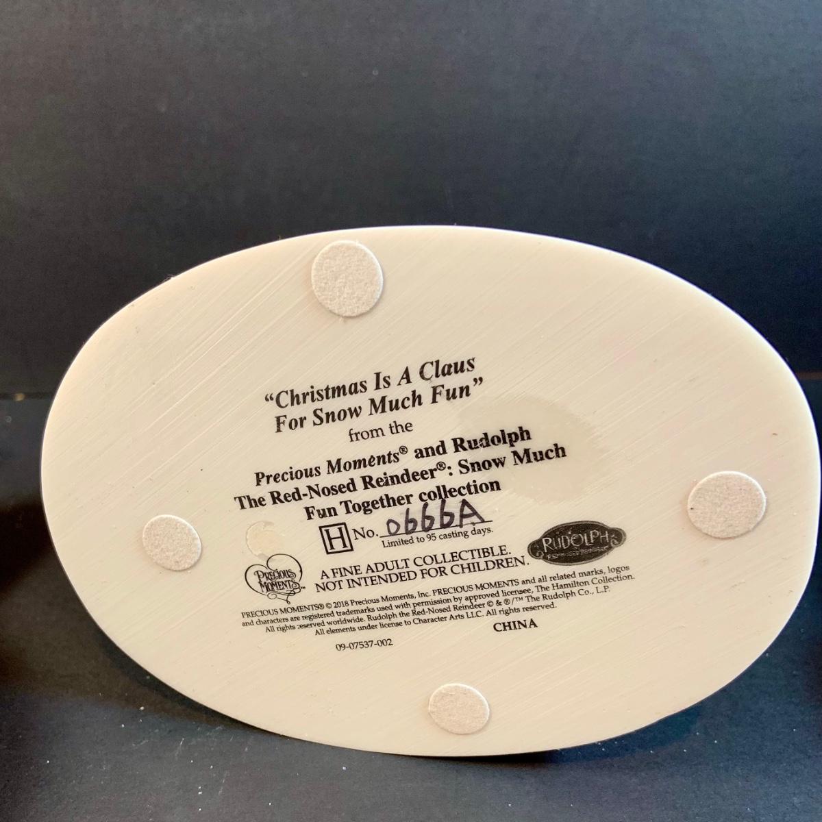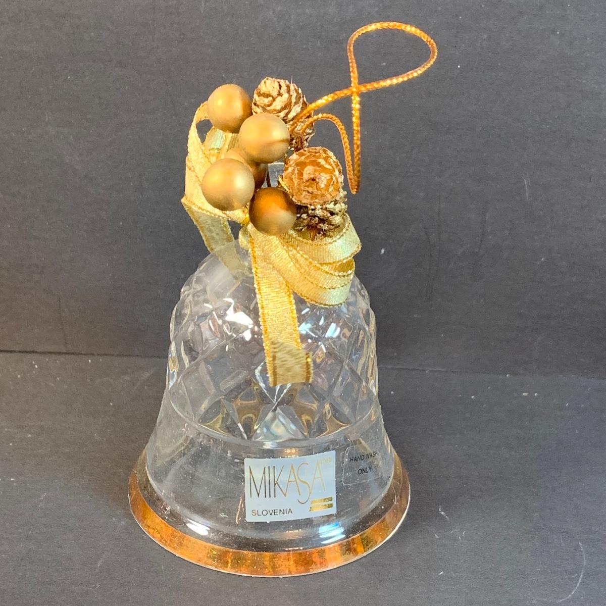 LOT:195: Adorable Christmas Decor Including Precious Moments Rudolph the Red-Nosed Reindeer Santa Figurine, Mikasa Bell, Glass Ornaments, Gibbon Ceramic Dishes and More