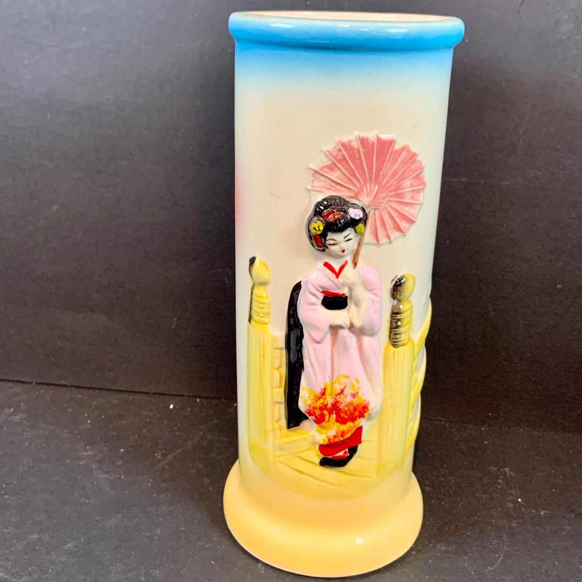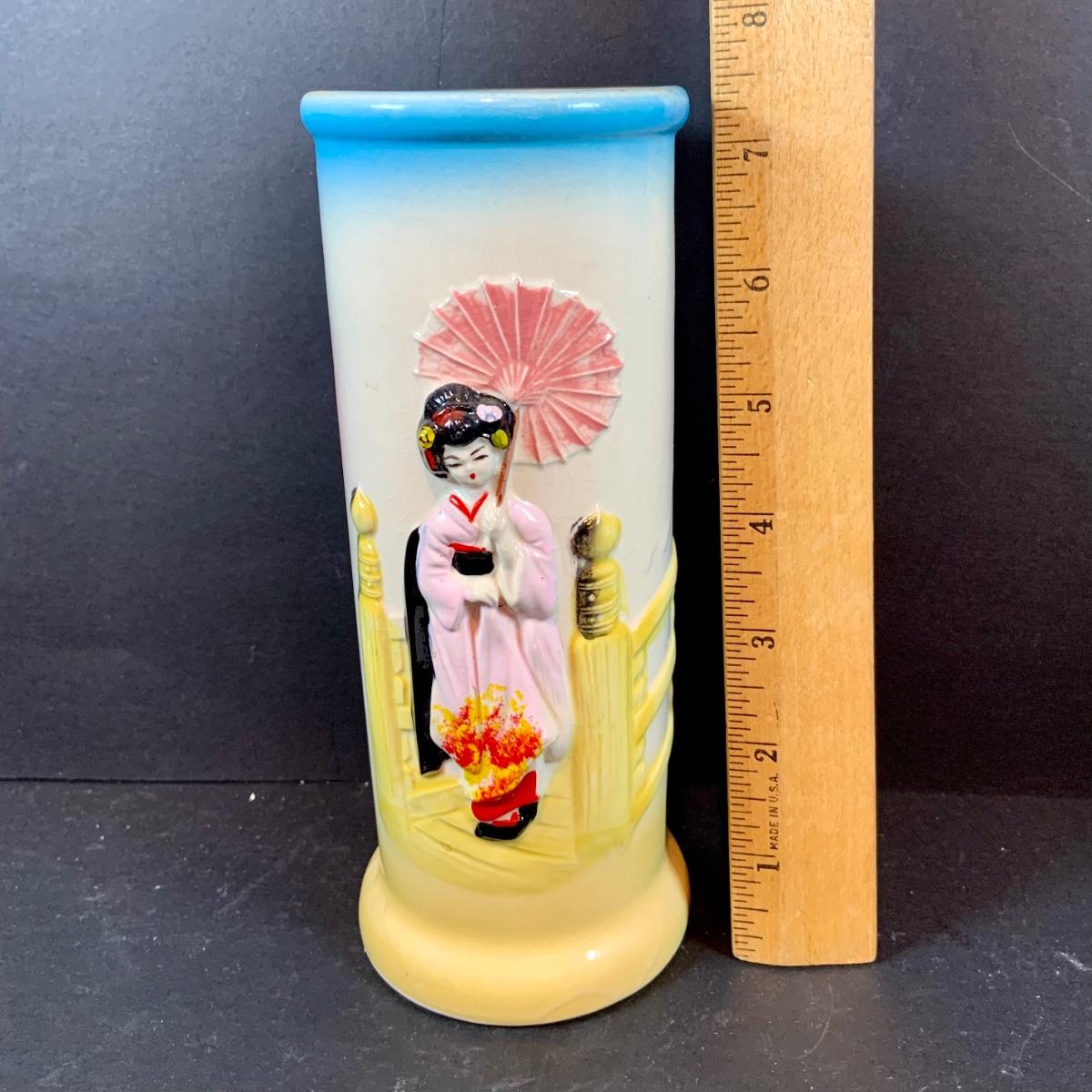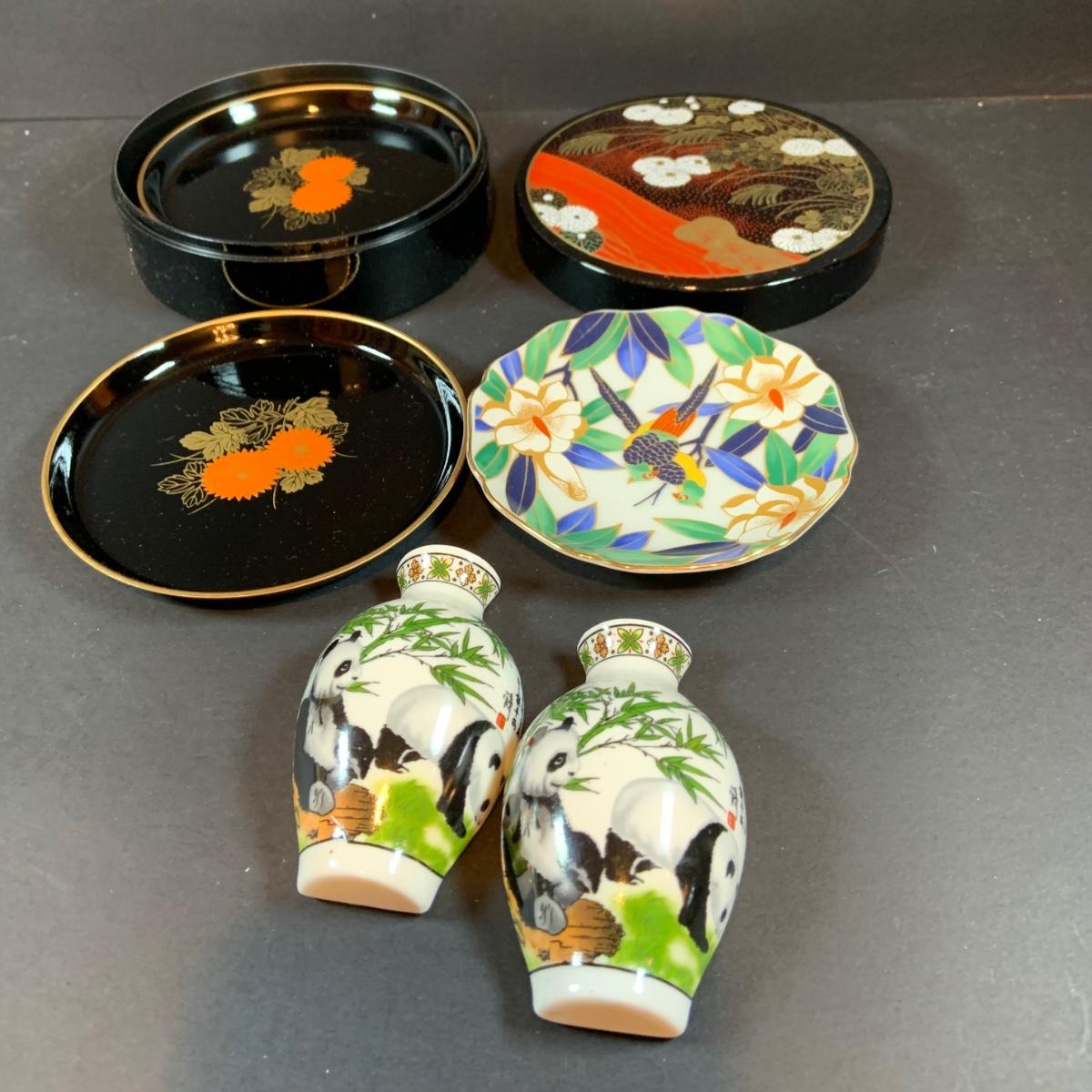 LOT 205: Academy Arts Chinese Bird Panels with Dull Gold Foil Background and Scrub-out Mirror, Japanese Tiki Mug, and Other Asian Inspired Items