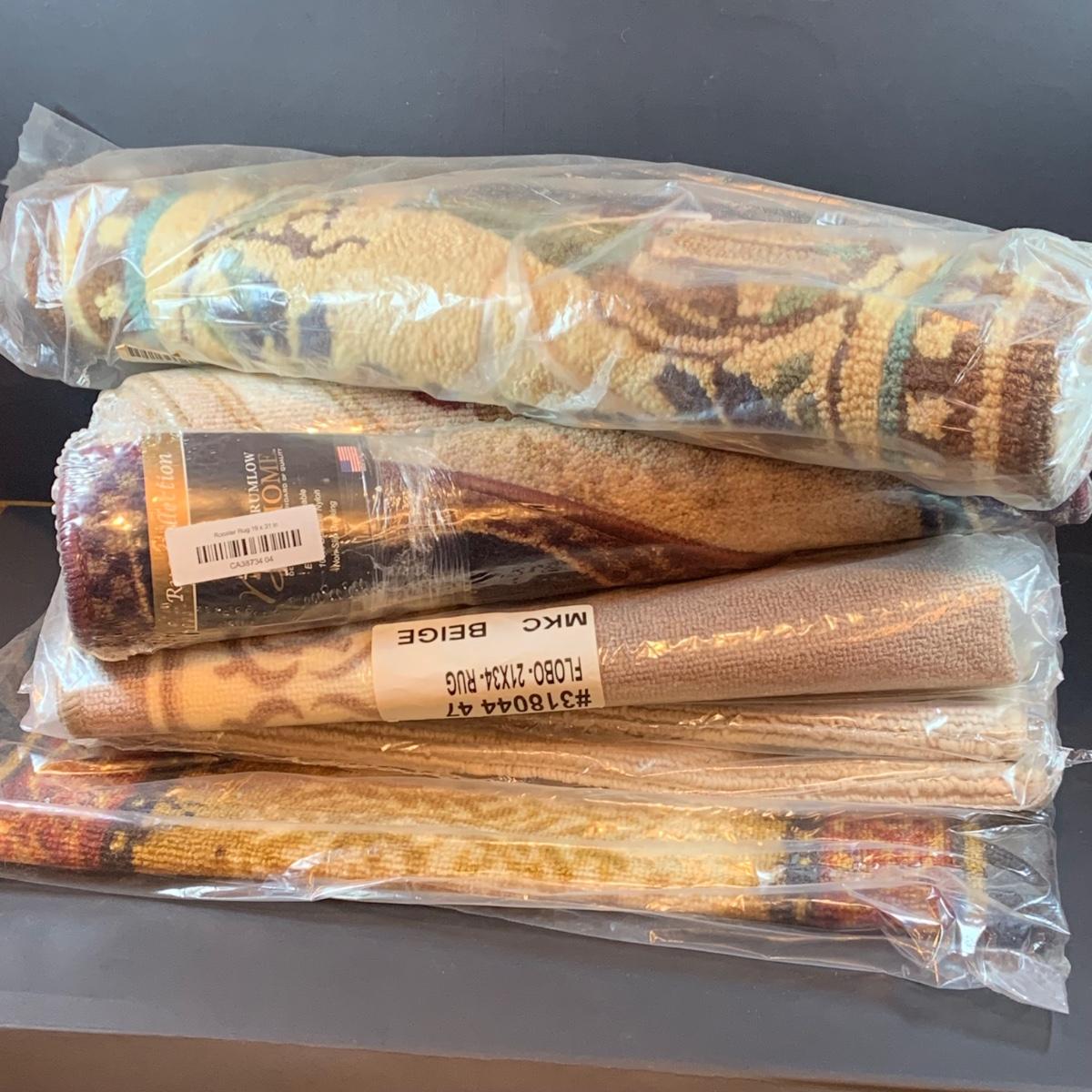 LOT 206: Large Assortment of Unopened Area Rugs In Various Sizes and Shapes.