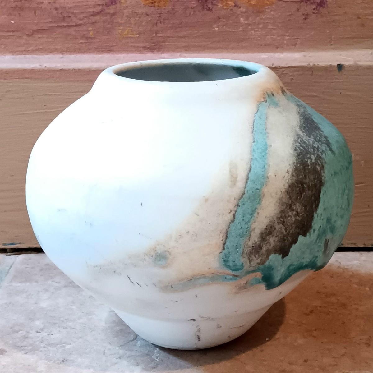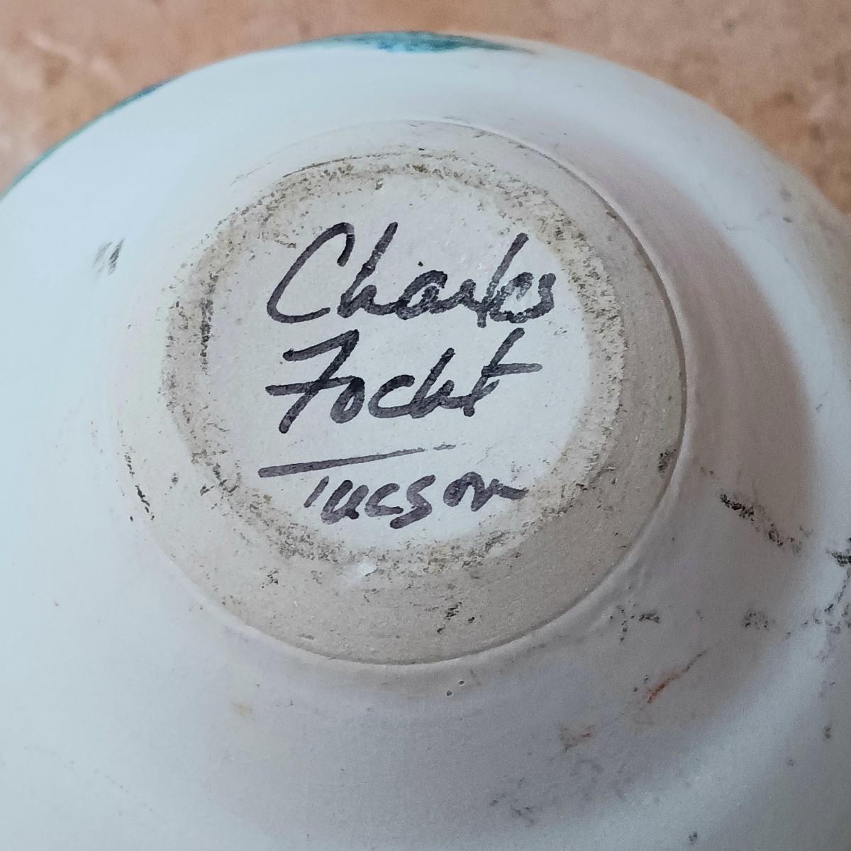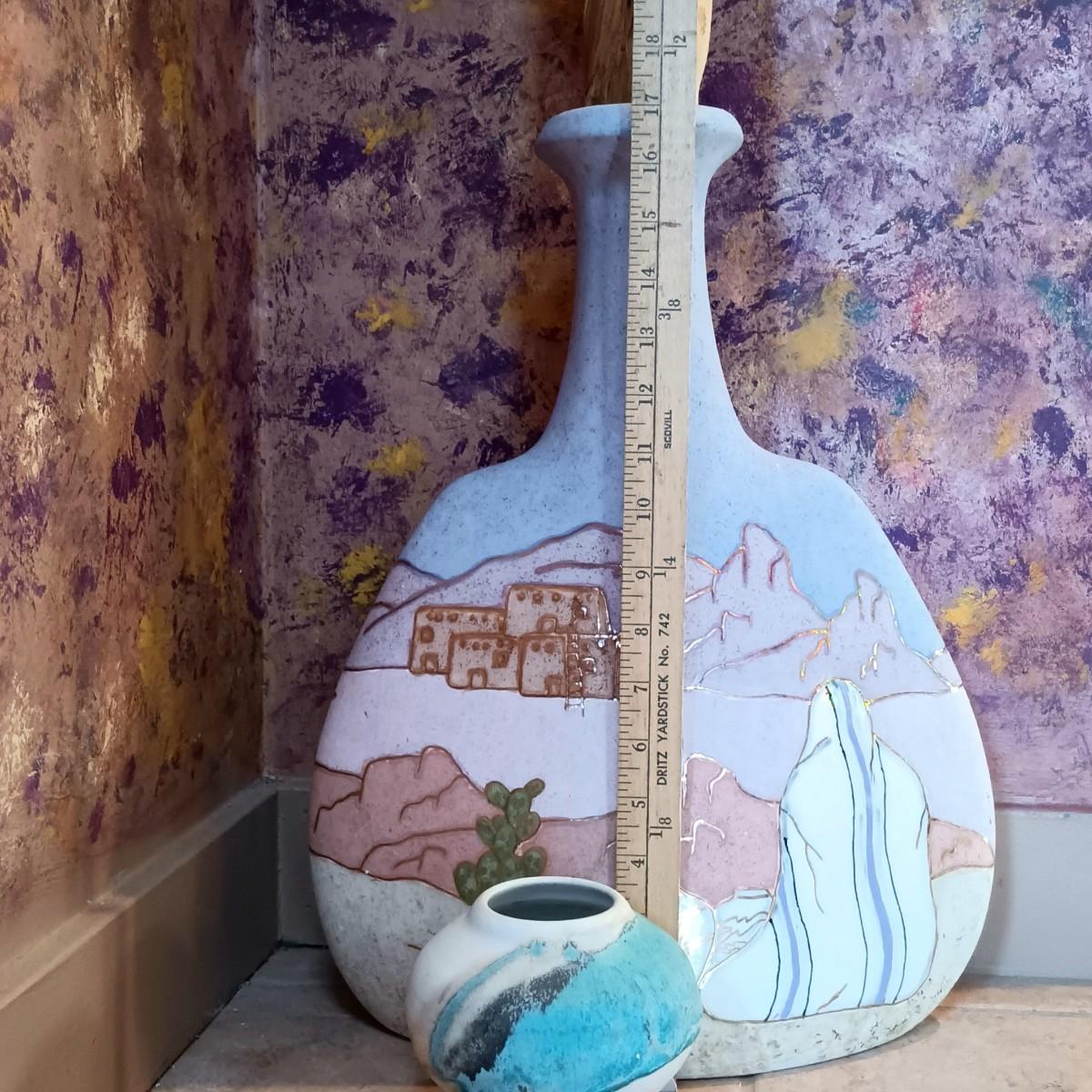 LOT 11B: Signed Gina Arrighetti Gold Inlay Southwestern Vase w/ Charles Fotch Signed Vase