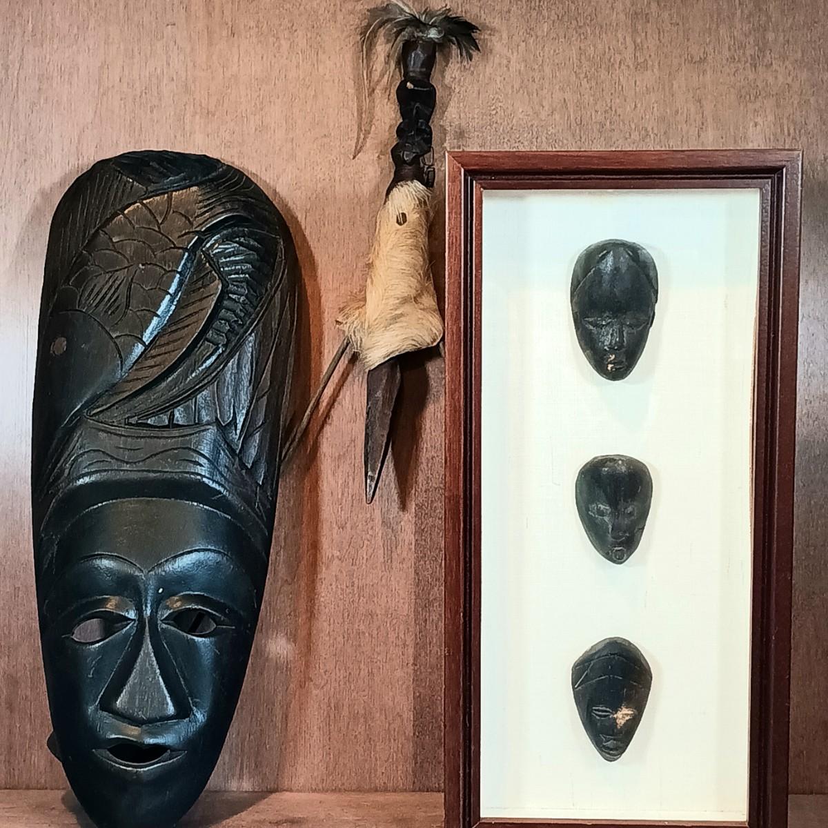 LOT 26A: Miniature Dan-Style Masks, African Art Balancing Statue &Hand-Carved Wood Mask