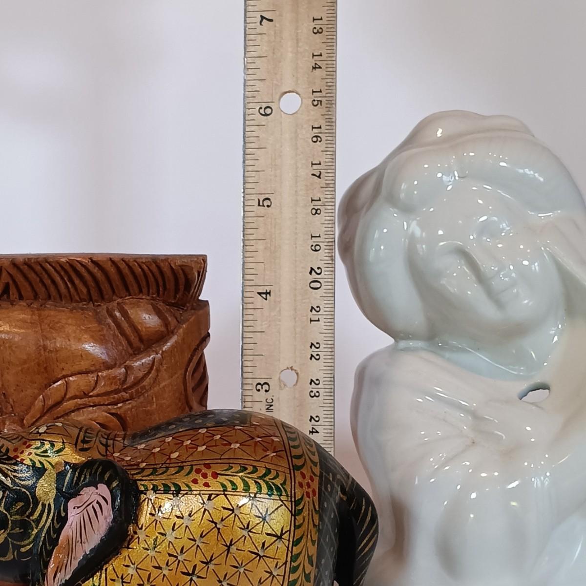 LOT 29A: Decorative Dinner Gong, Small Brass Turtle, Lacquered Elephant & More