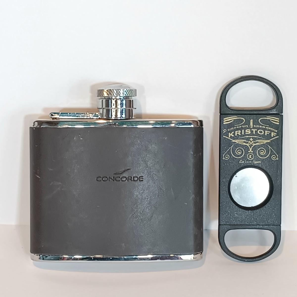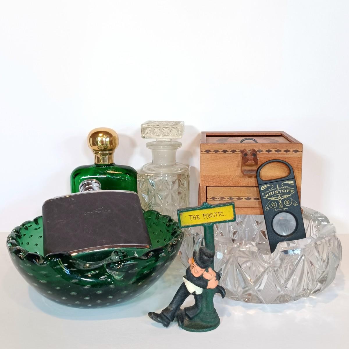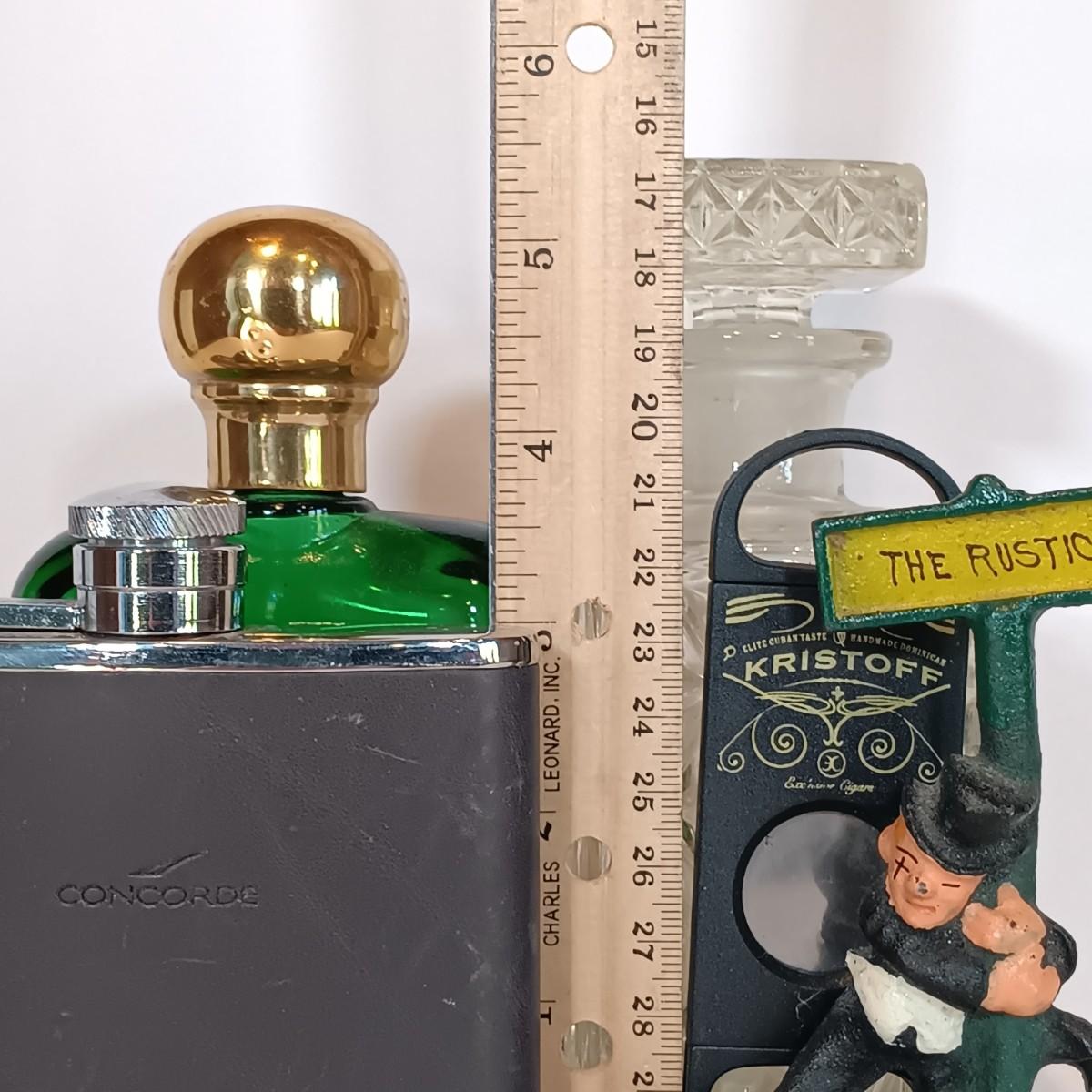 LOT 30A: Wood Cigarette Box, Cast Iron 'Drunk Man' Bottle Opener, Concorde Hip Flask & More