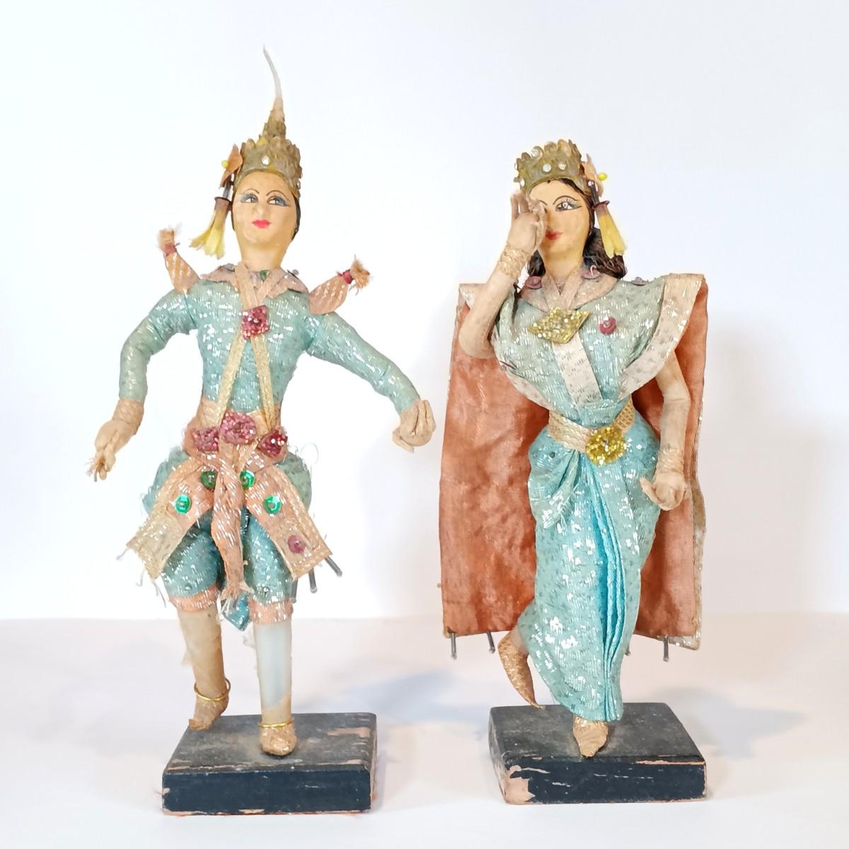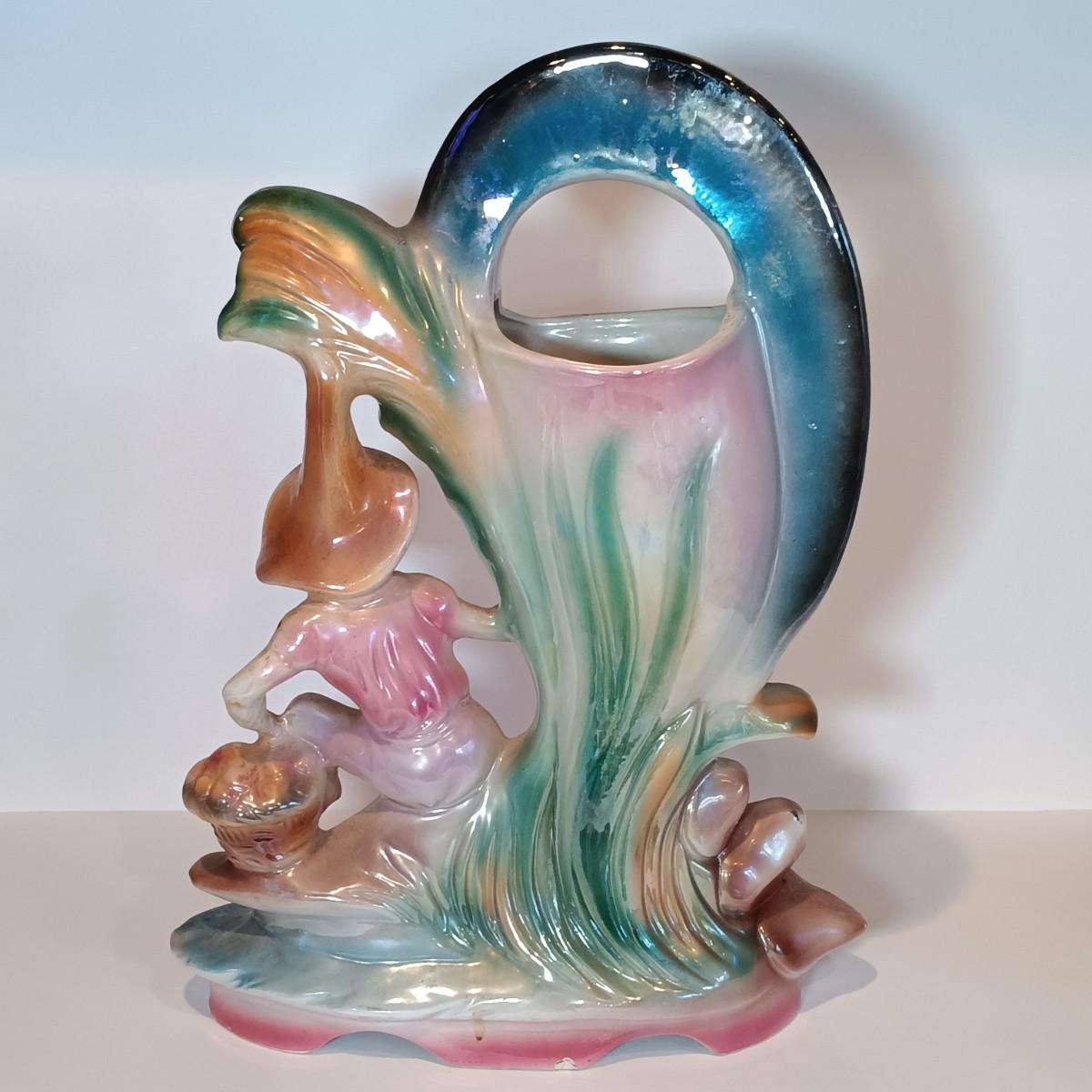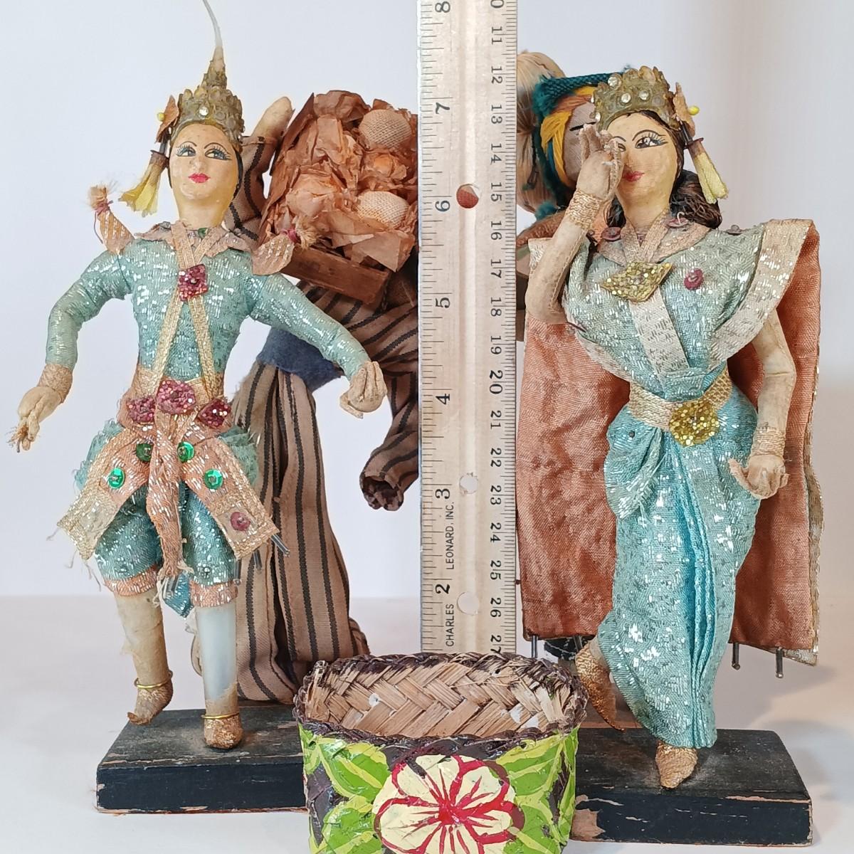 LOT 31A: Lustre Ware Fisherman Vase, Persian Miniatures Book, Vintage Tourist Dolls & Mini Basket