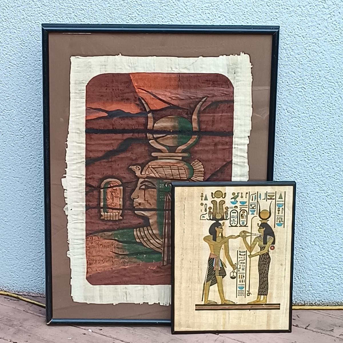 LOT 36A: Set of (2) Contemporary Hand-Painted Papyrus Art