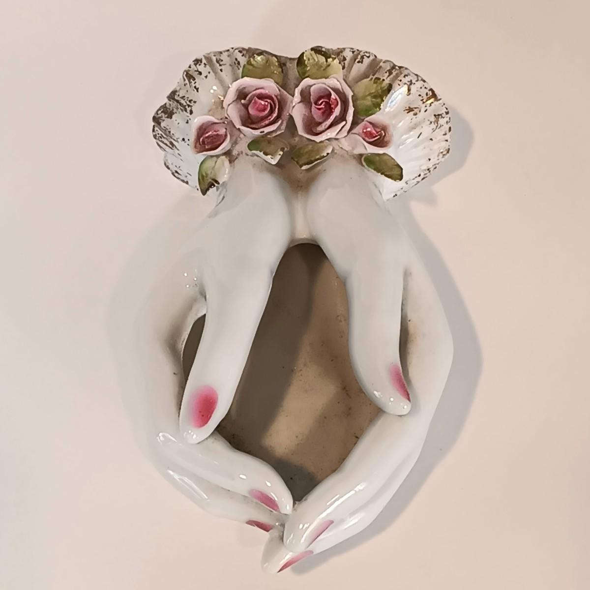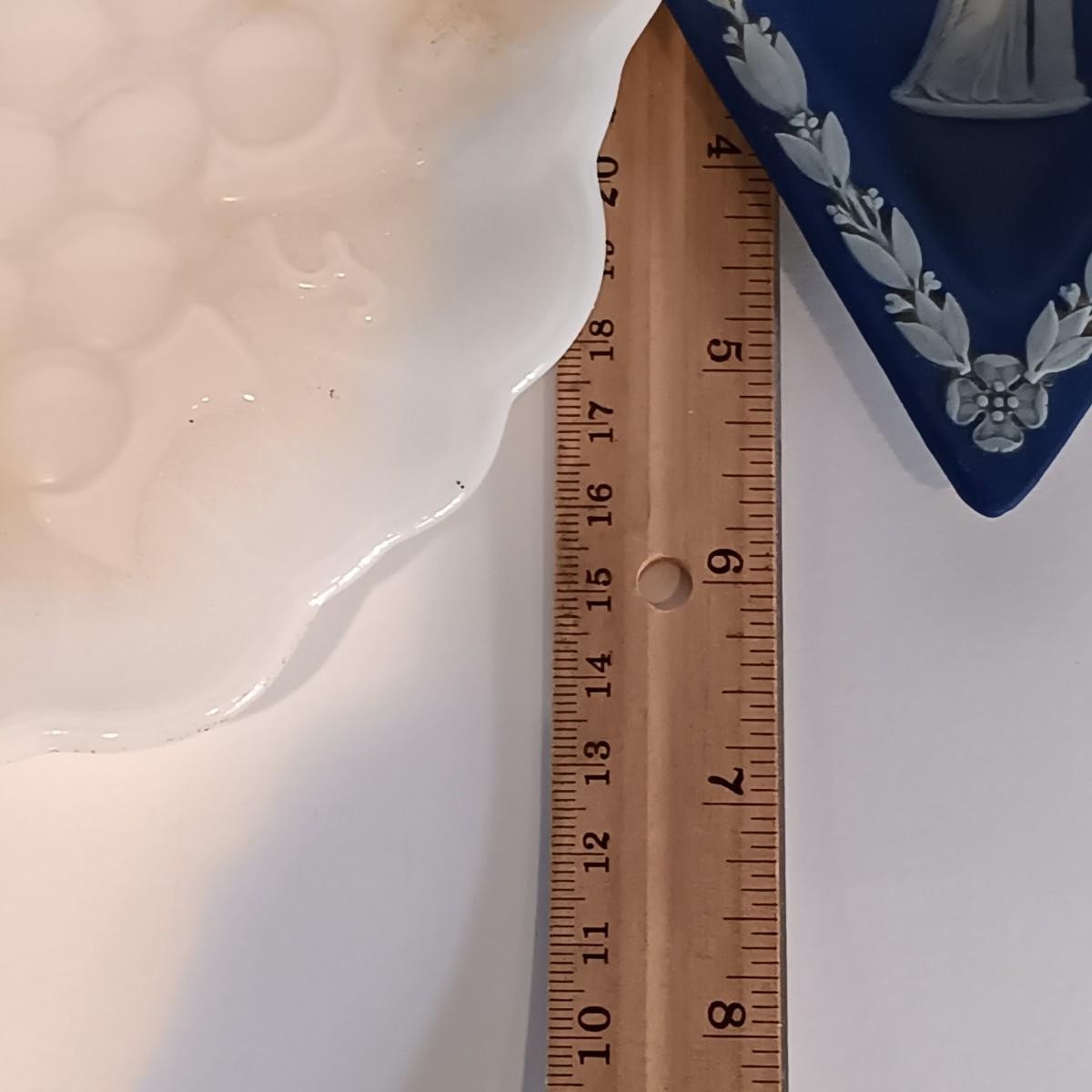 LOT 37A: Wedgewood Blue Jasperware Pin Dish, Lefton Hand Vase, Crystal Sandwich Tray & More