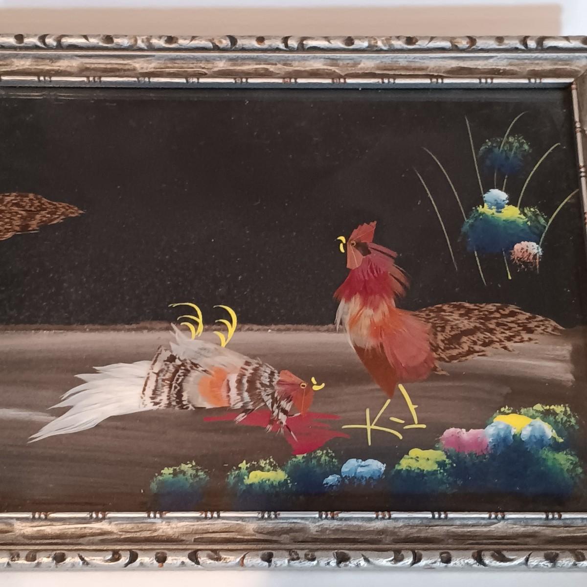 LOT 39A: Vintage Spanish Rooster Fight Folk Art