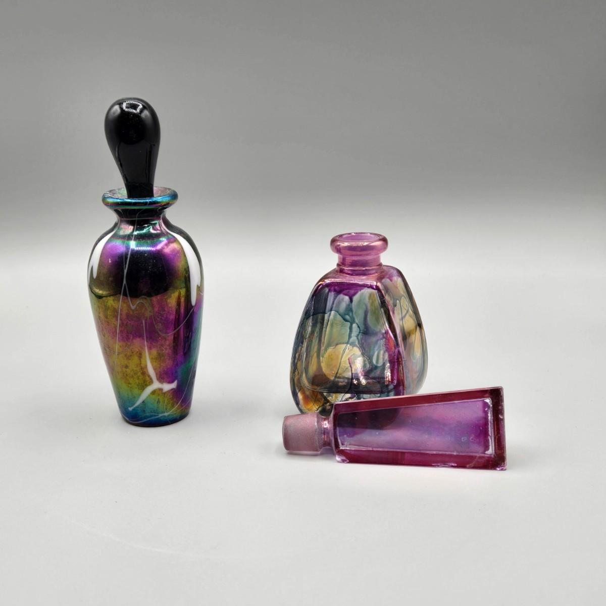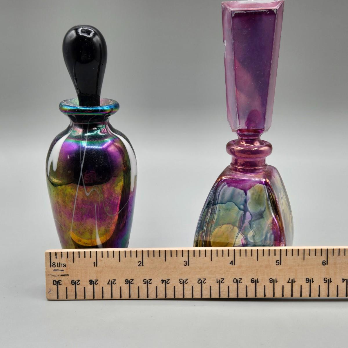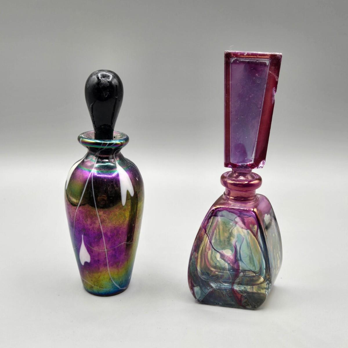 LOT 69A: Vintage and Antique Perfume Bottles featuring Beautiful Hanging Hearts And Vine Iridescent Art Glass Perfume Bottle