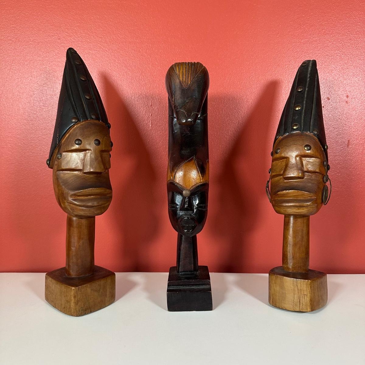 LOT 86C: Three Vintage Hand Carved Wooden African Heads