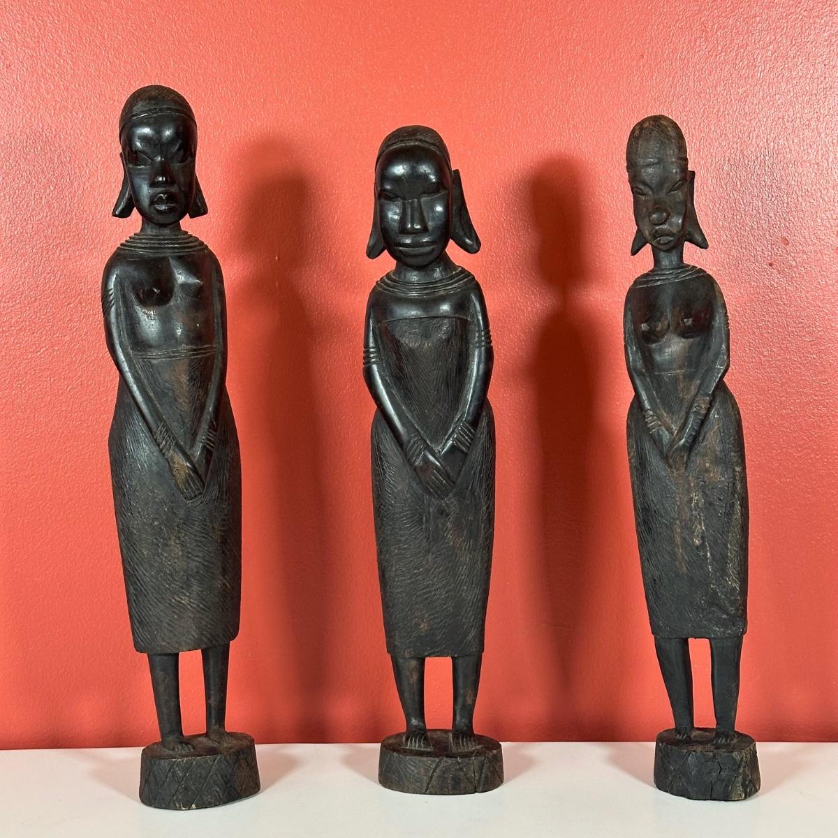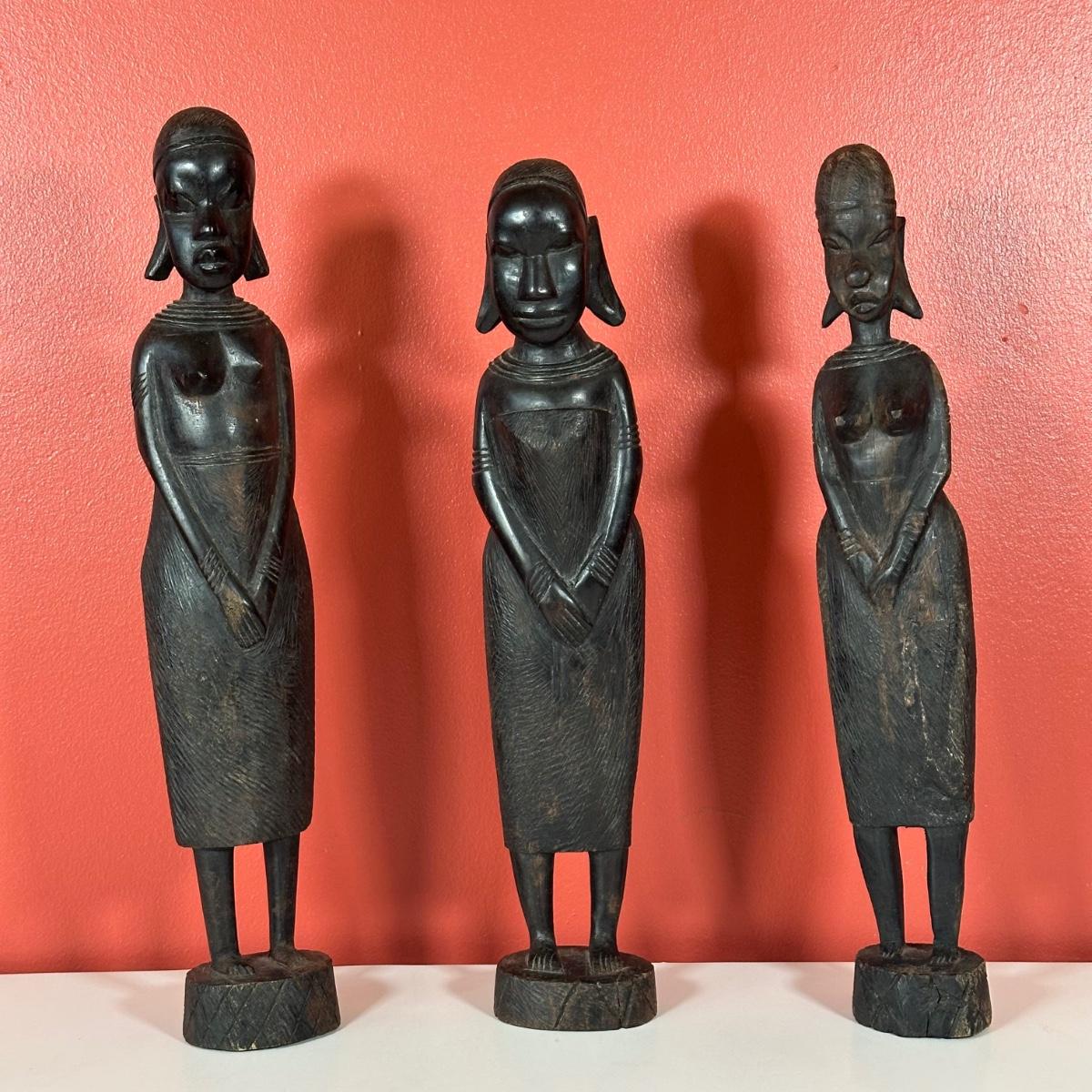LOT 90C: Three Vintage Hand Carved African Women Figurines