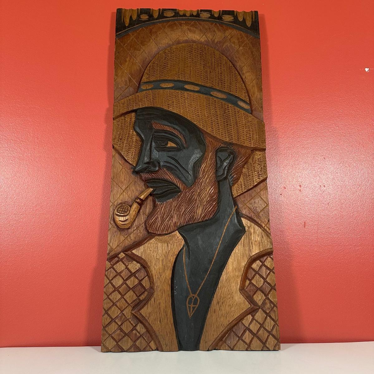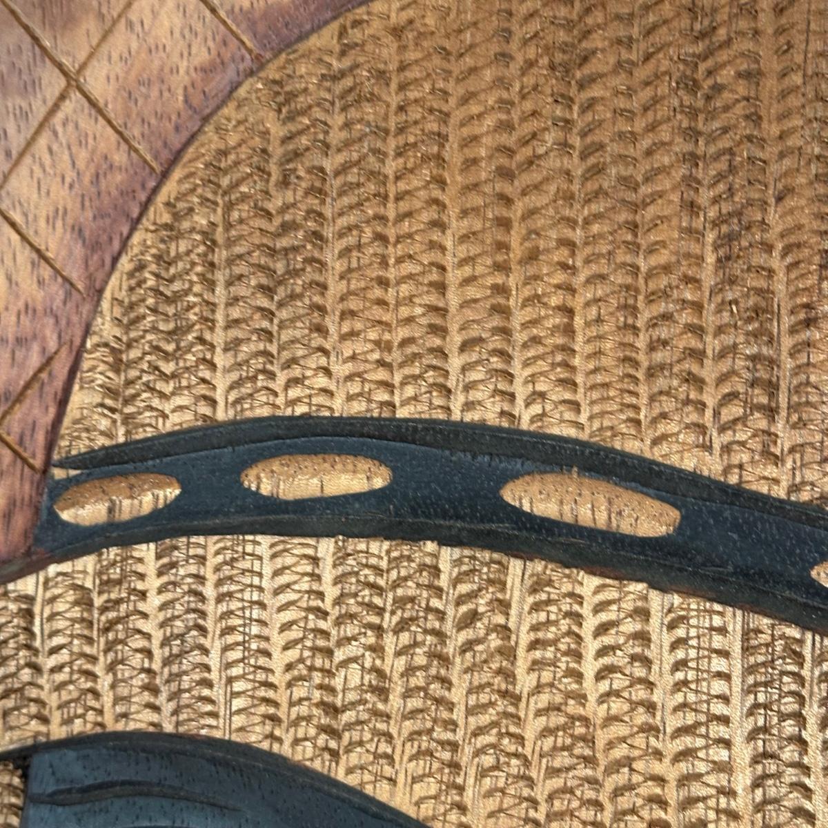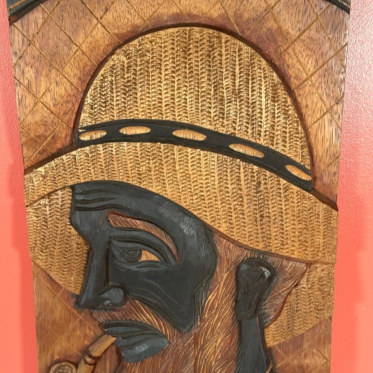 LOT 94C: Hand Carved Wooden Panel Of a Pareto Velho Signed “Duda”