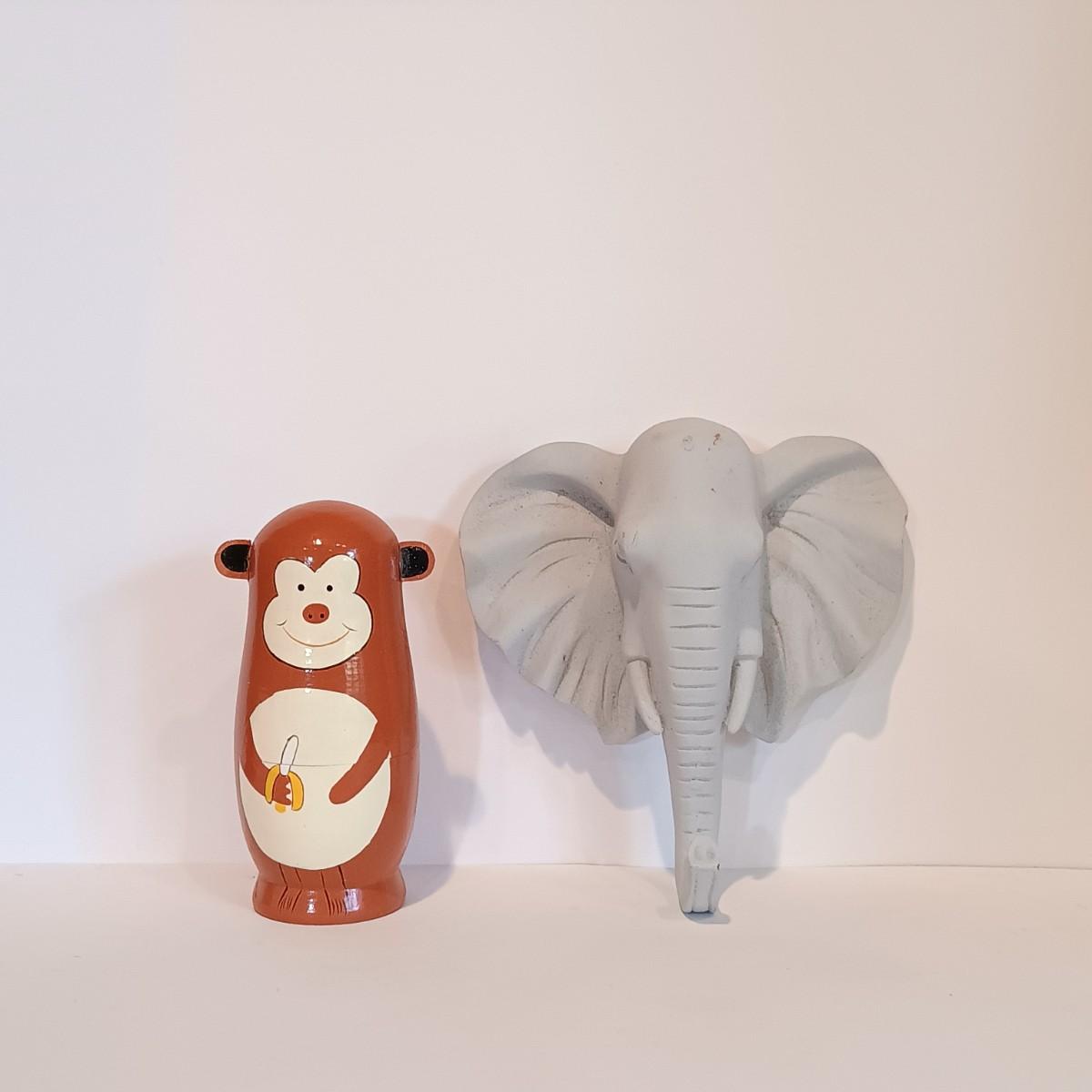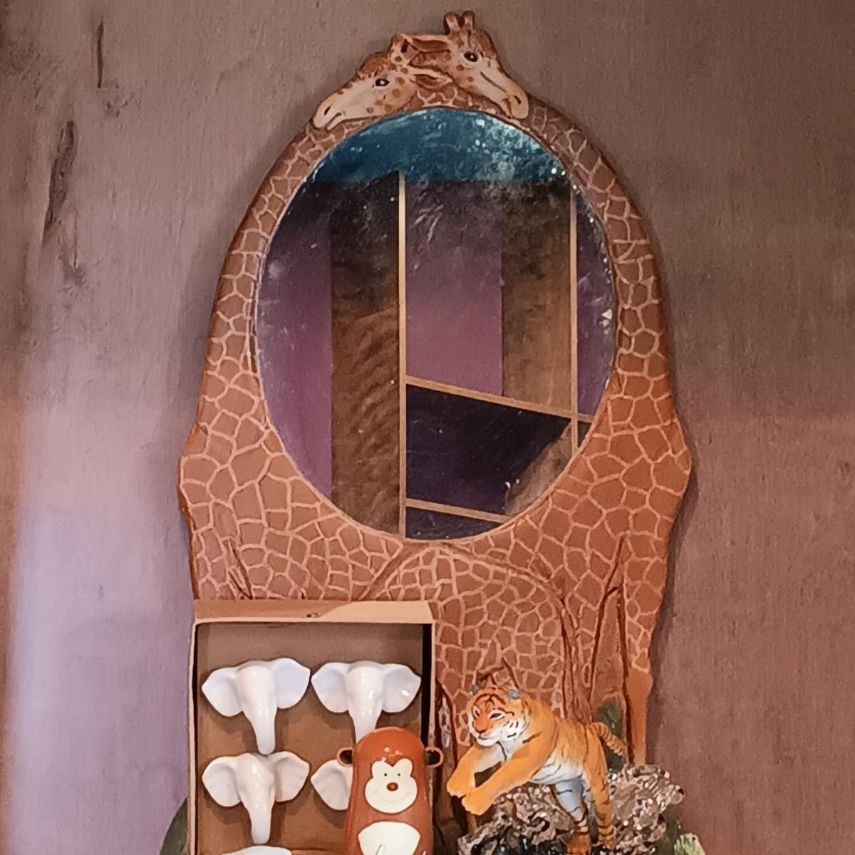 LOT 122A: Al Pisano Giraffe Mirror with Lenox River of the Tiger, Ceramic Elephant Door Knobs & More