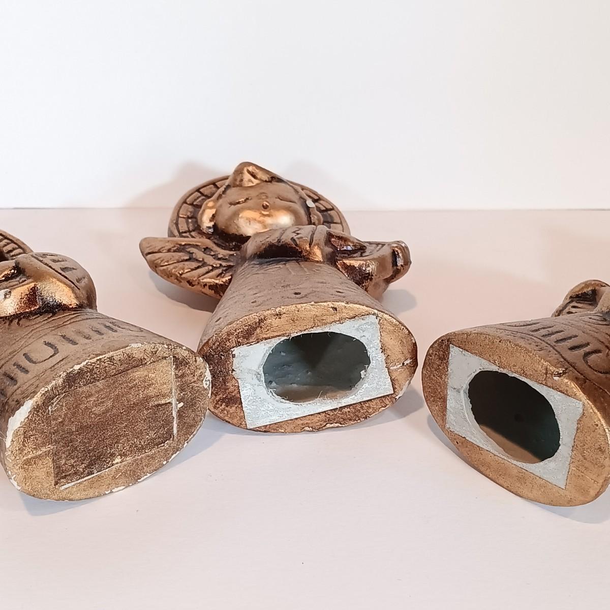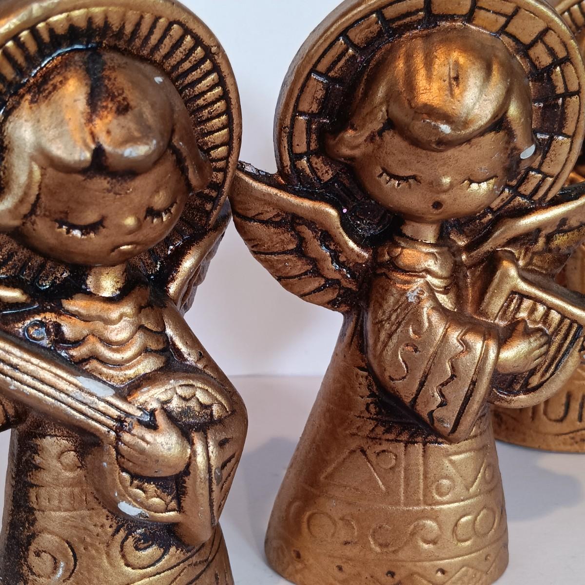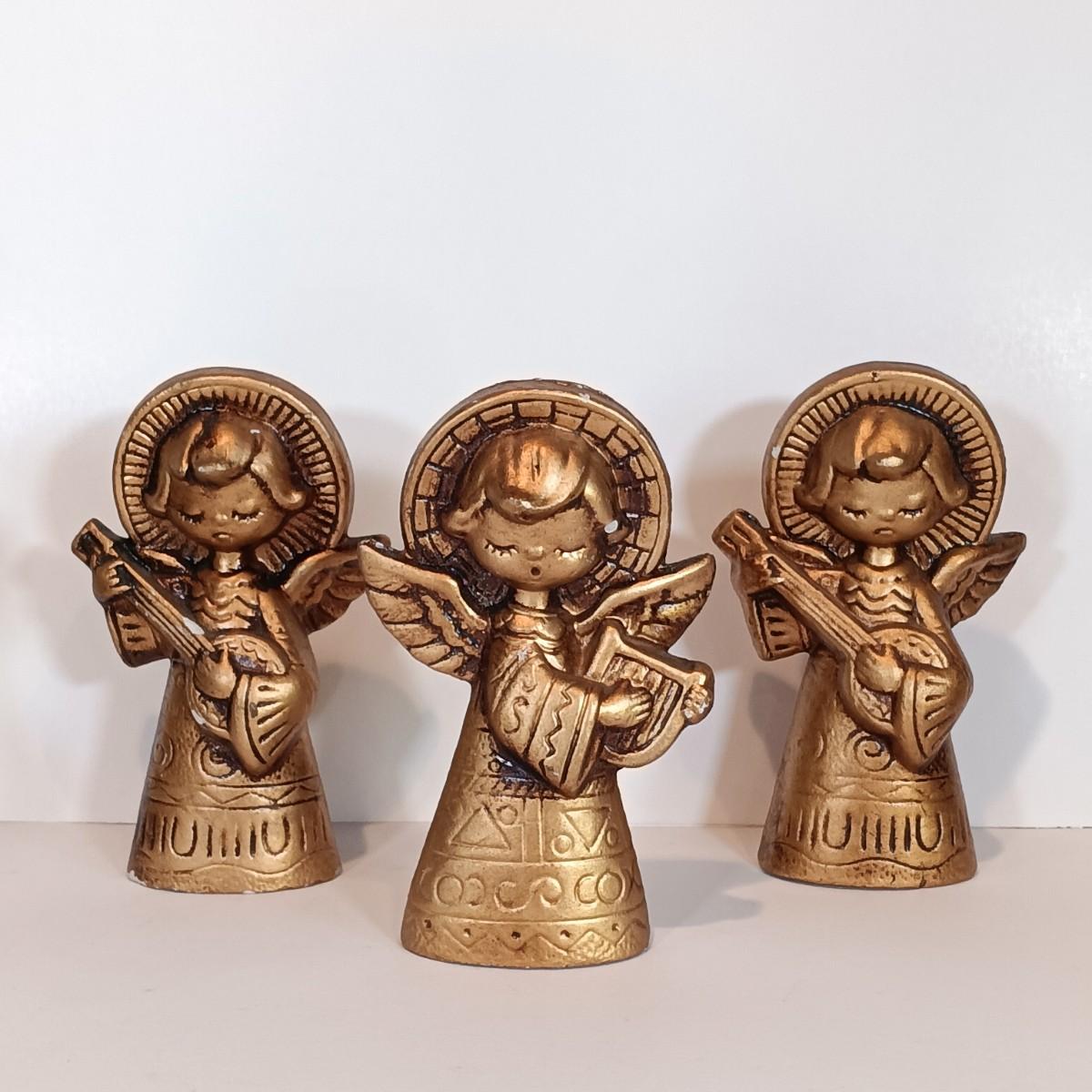 The three gold angels are chalkware and have some minor scuffs from age and storage.